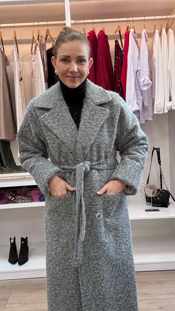 Stylowy minimalizm – klasyczny, prosty krój tego wełnianego płaszcza sprawia, że idealnie wpisuje się on w najnowsze jesienne trendy. Szarość to kolor wszechstronny i ponadczasowy, który pasuje do każdej stylizacji, dodając jej elegancji i szyku.