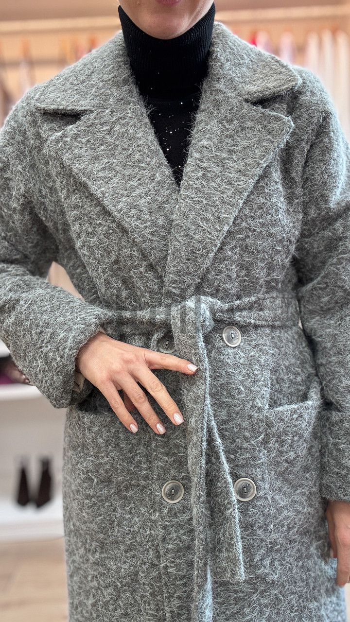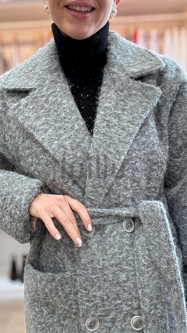 PŁASZCZ DAMSKI SZARY MELANŻ Z WEŁNĄ Z MERYNOSA