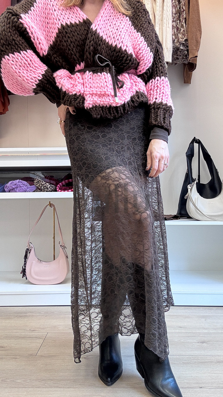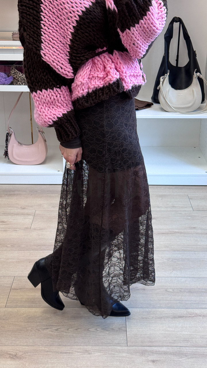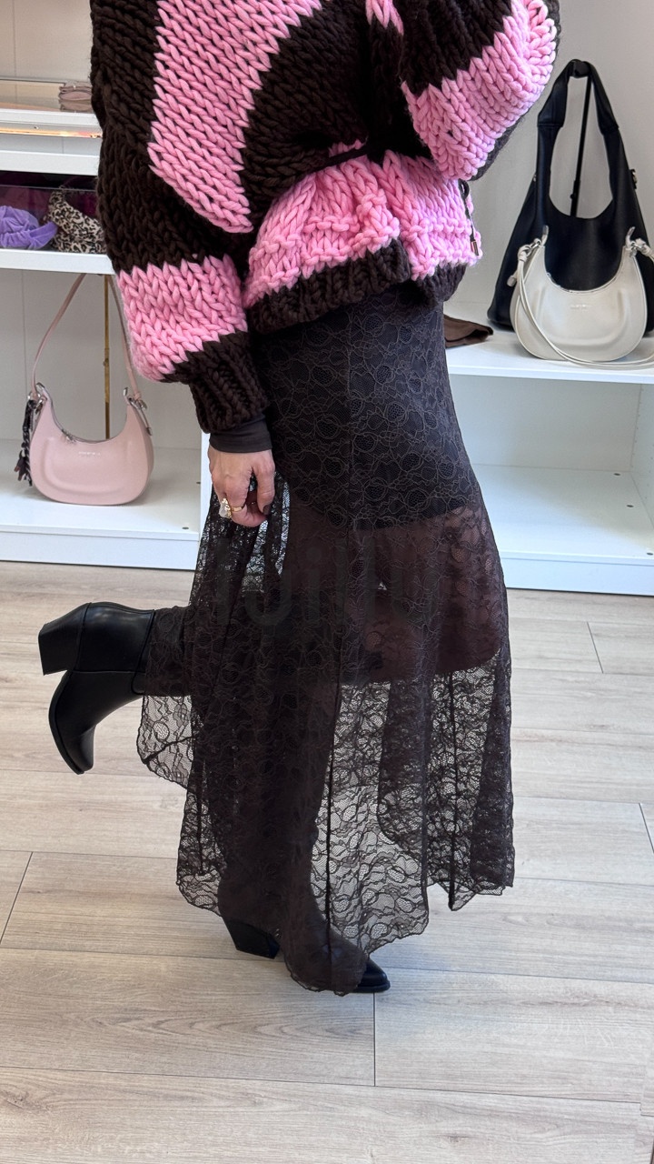 SPÓDNICA KORONKOWA CZEKOLADOWA MAXI