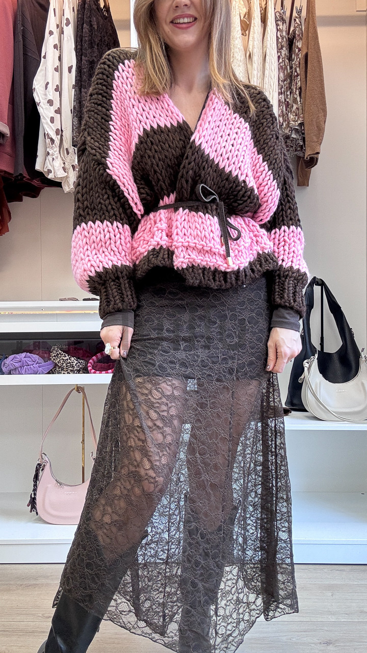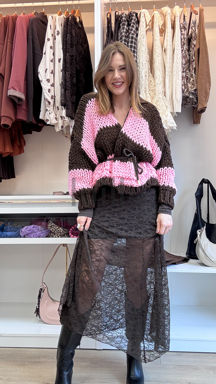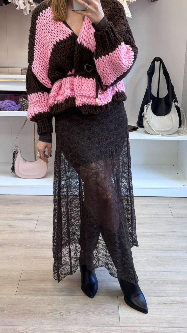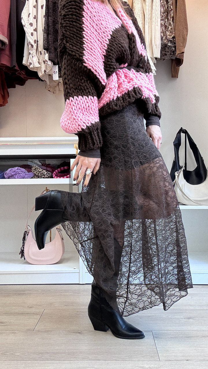 SPÓDNICA KORONKOWA CZEKOLADOWA MAXI