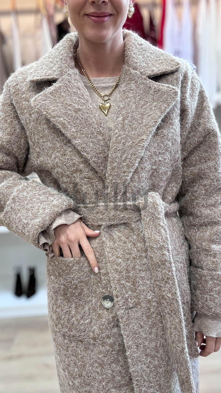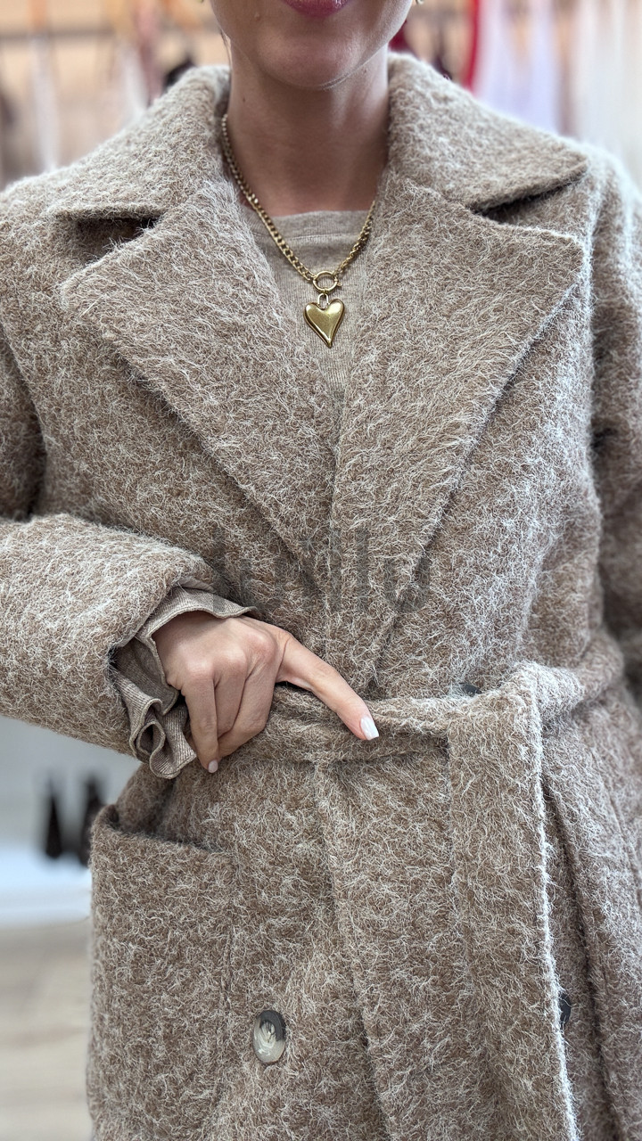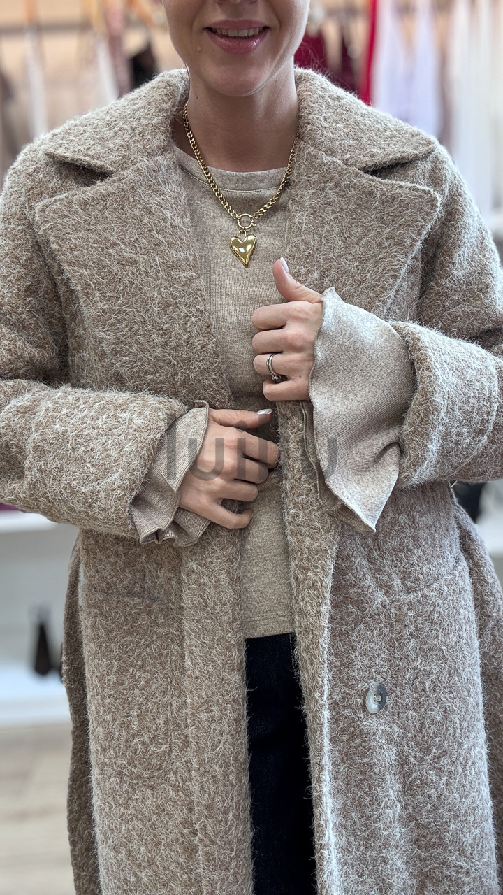PŁASZCZ DAMSKI BEŻOWY Z WEŁNĄ Z MERYNOSA