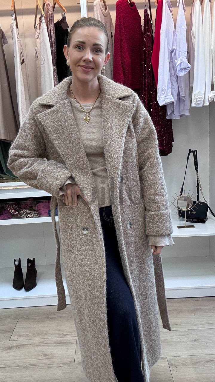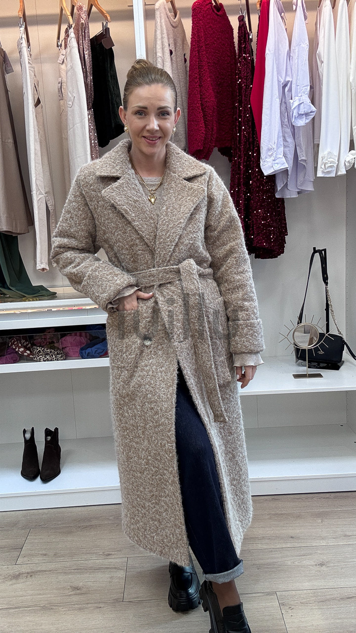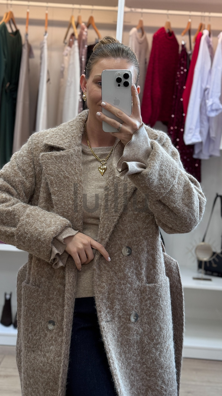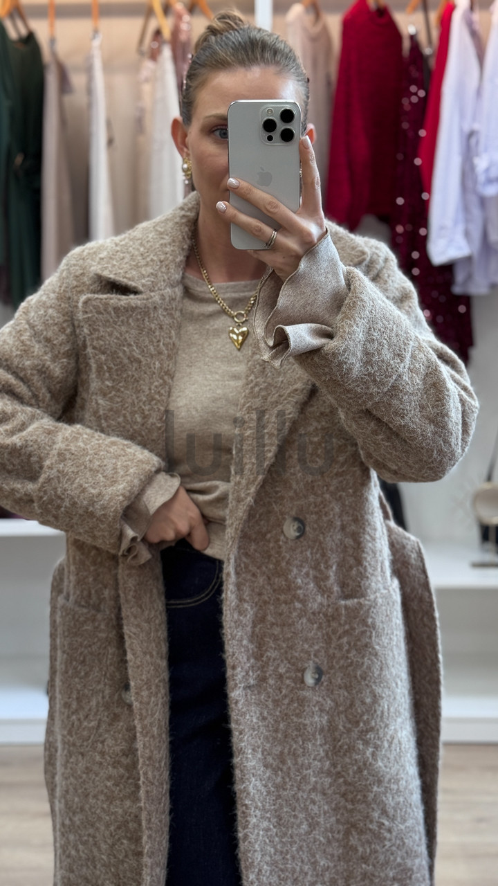 PŁASZCZ DAMSKI BEŻOWY Z WEŁNĄ Z MERYNOSA