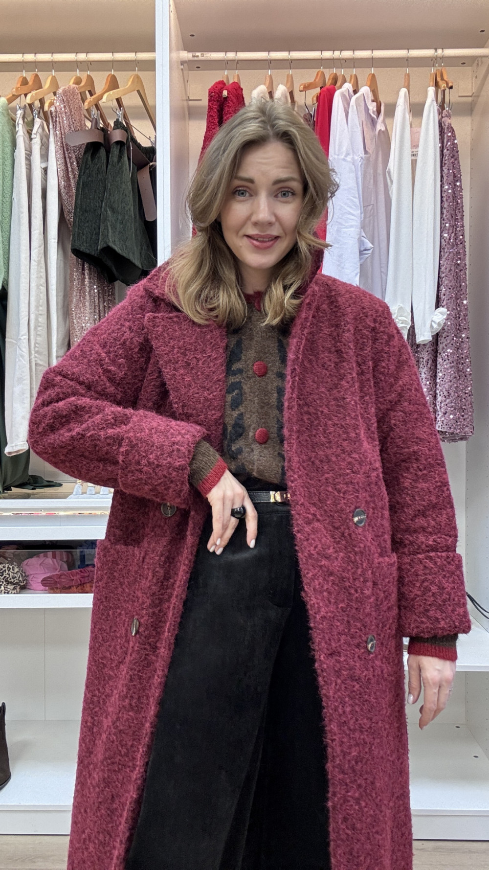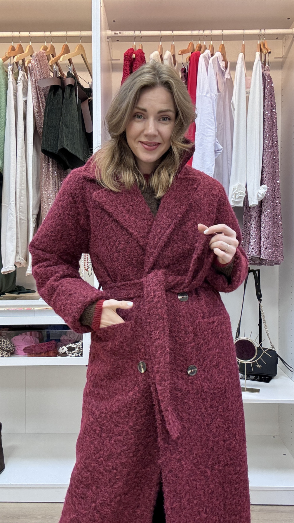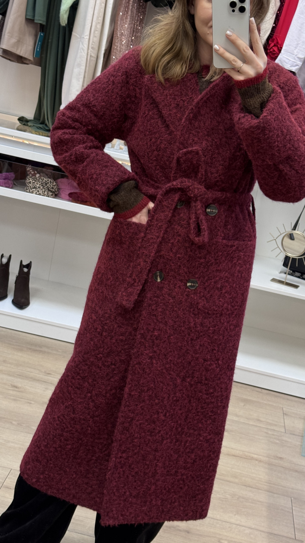 PŁASZCZ Z WEŁNY MERYNOSA W KOLORZE BORDOWYM