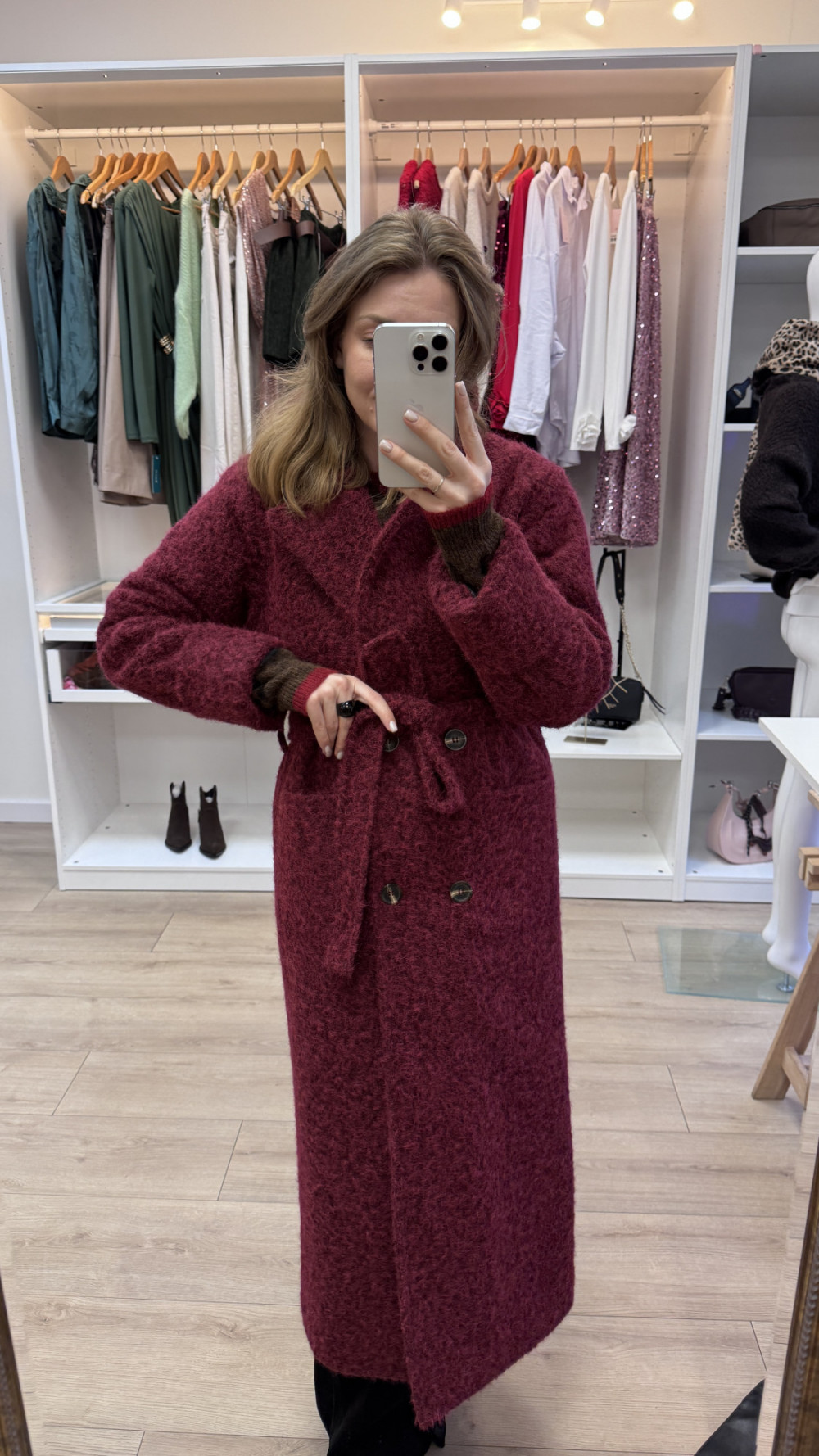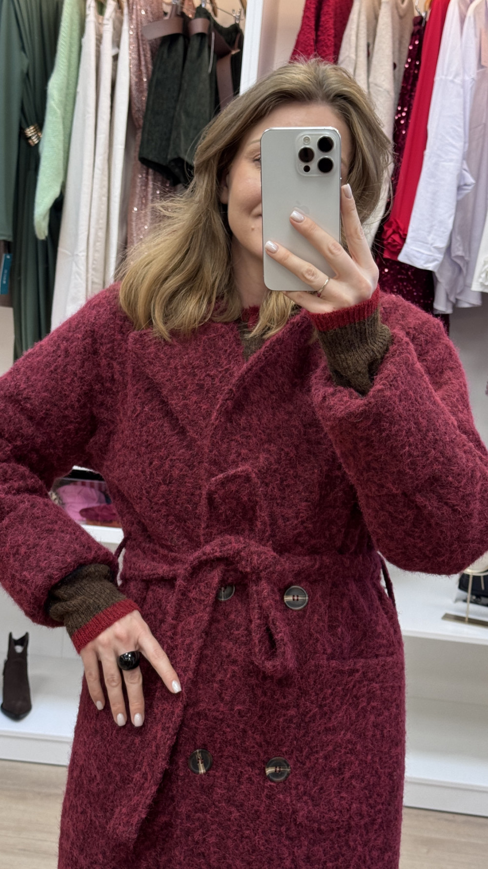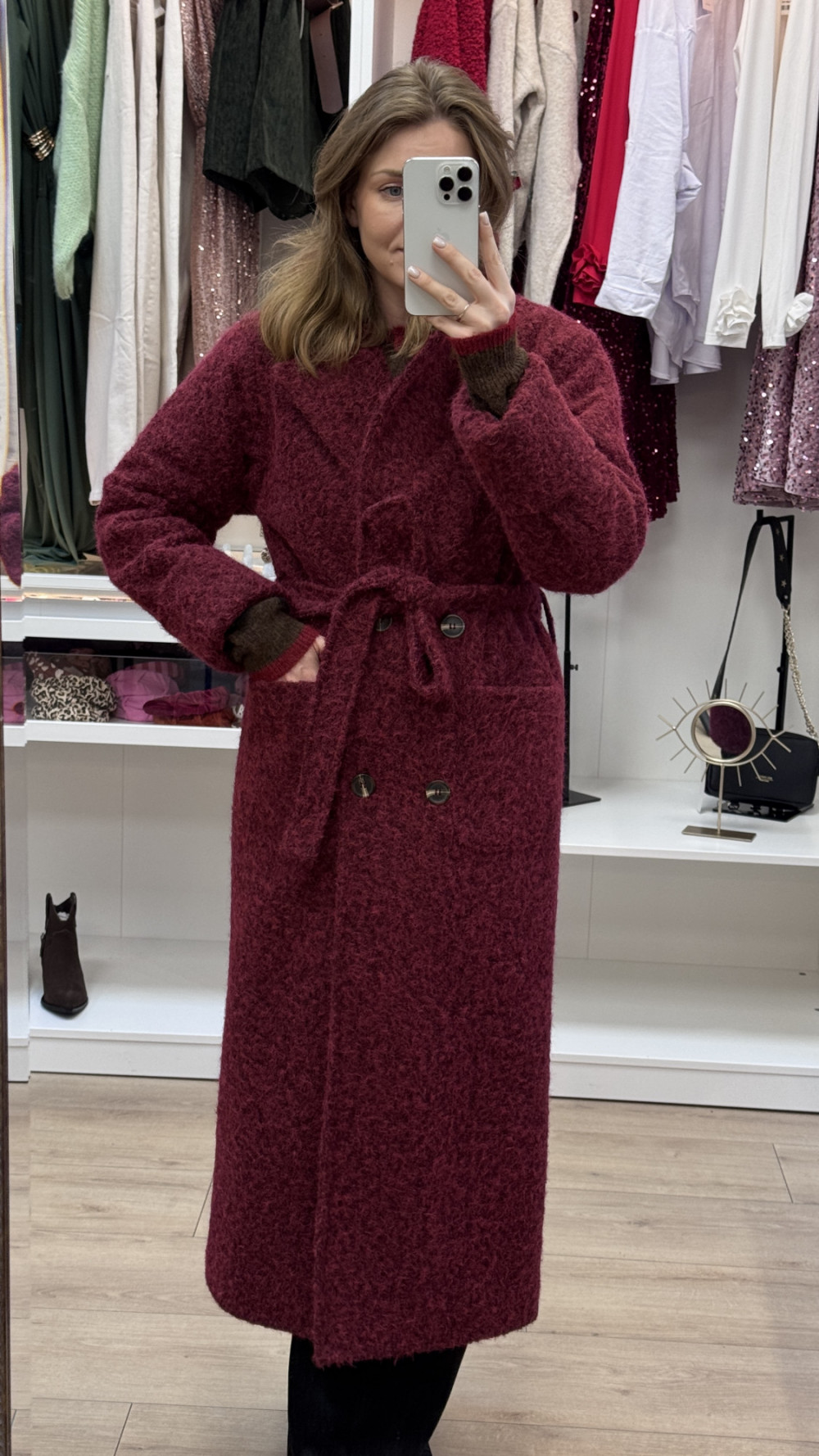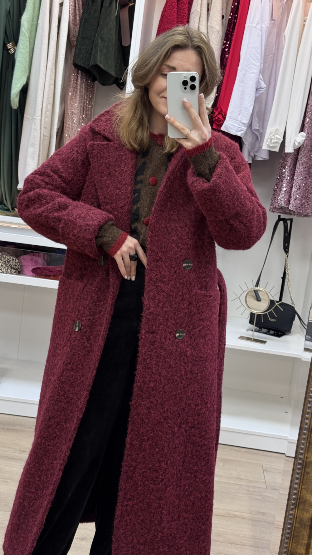 PŁASZCZ Z WEŁNY MERYNOSA W KOLORZE BORDOWYM