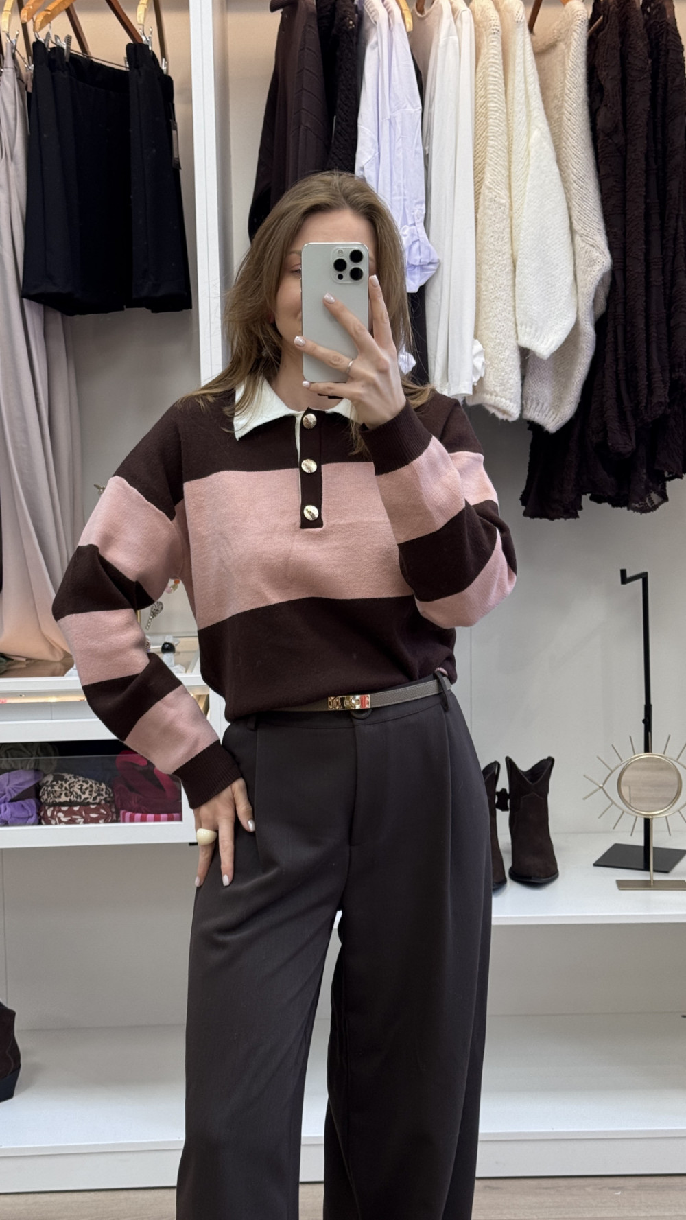 SPODNIE Z ELEGANCKIEJ TKANINY CZEKOLADOWE SAMANTA