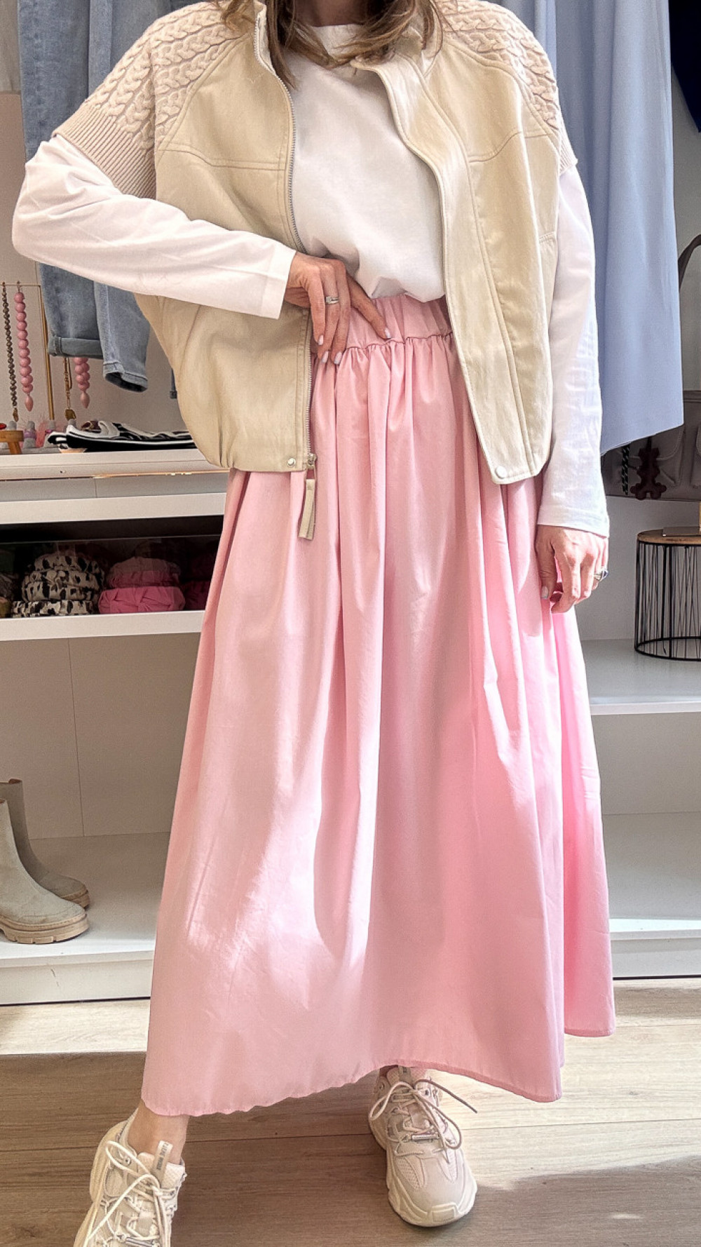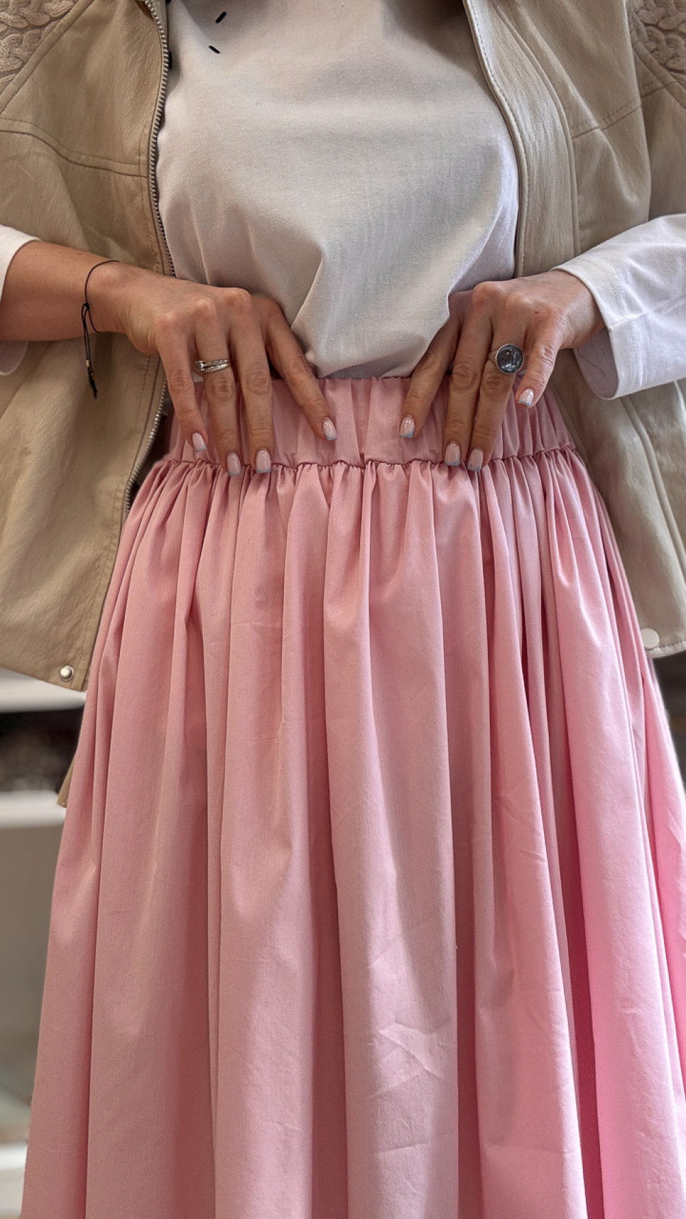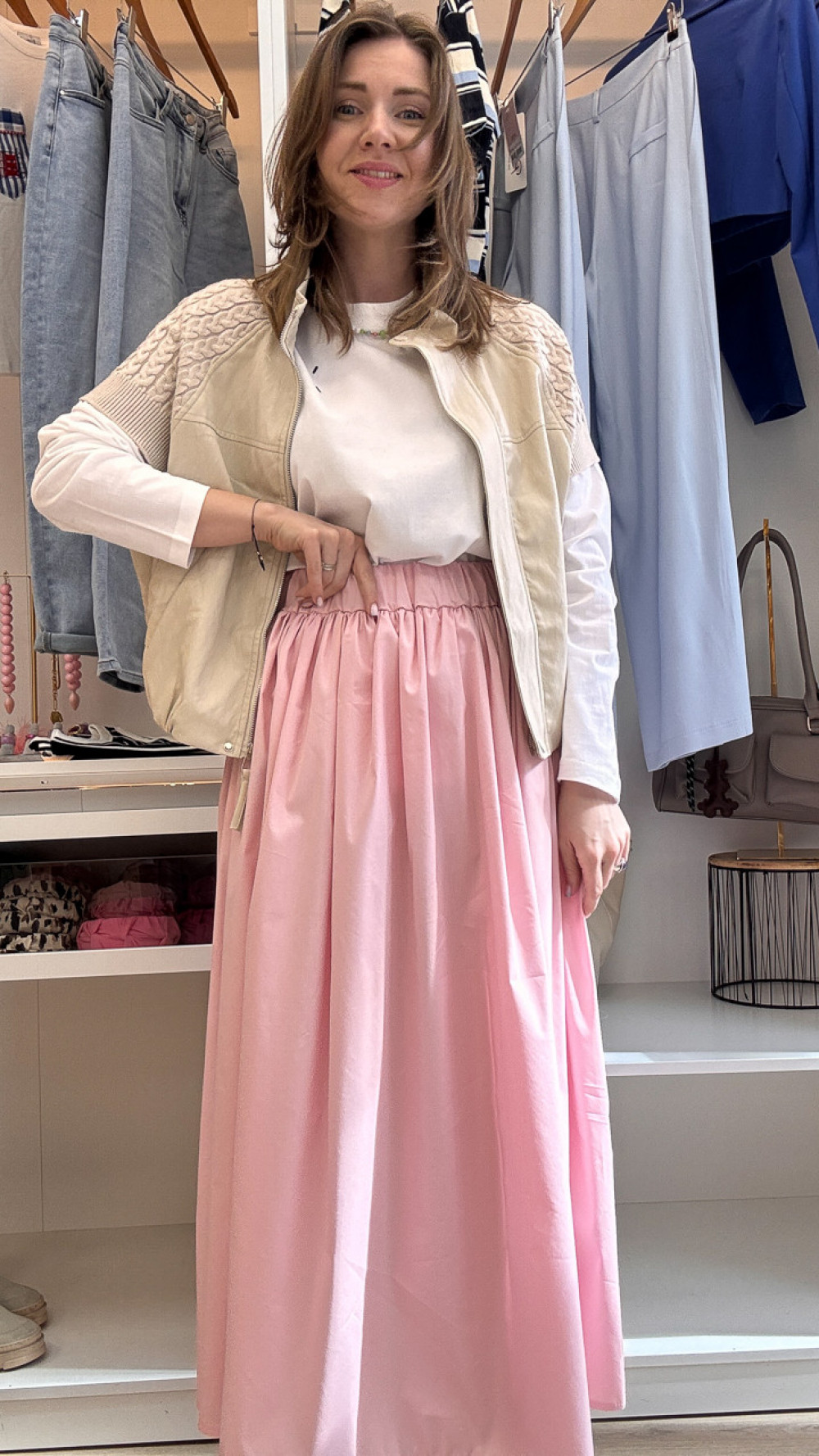 SPÓDNICA Z DELIKATNEJ TKANINY JASNY RÓŻ CHARLOTTA MAXI