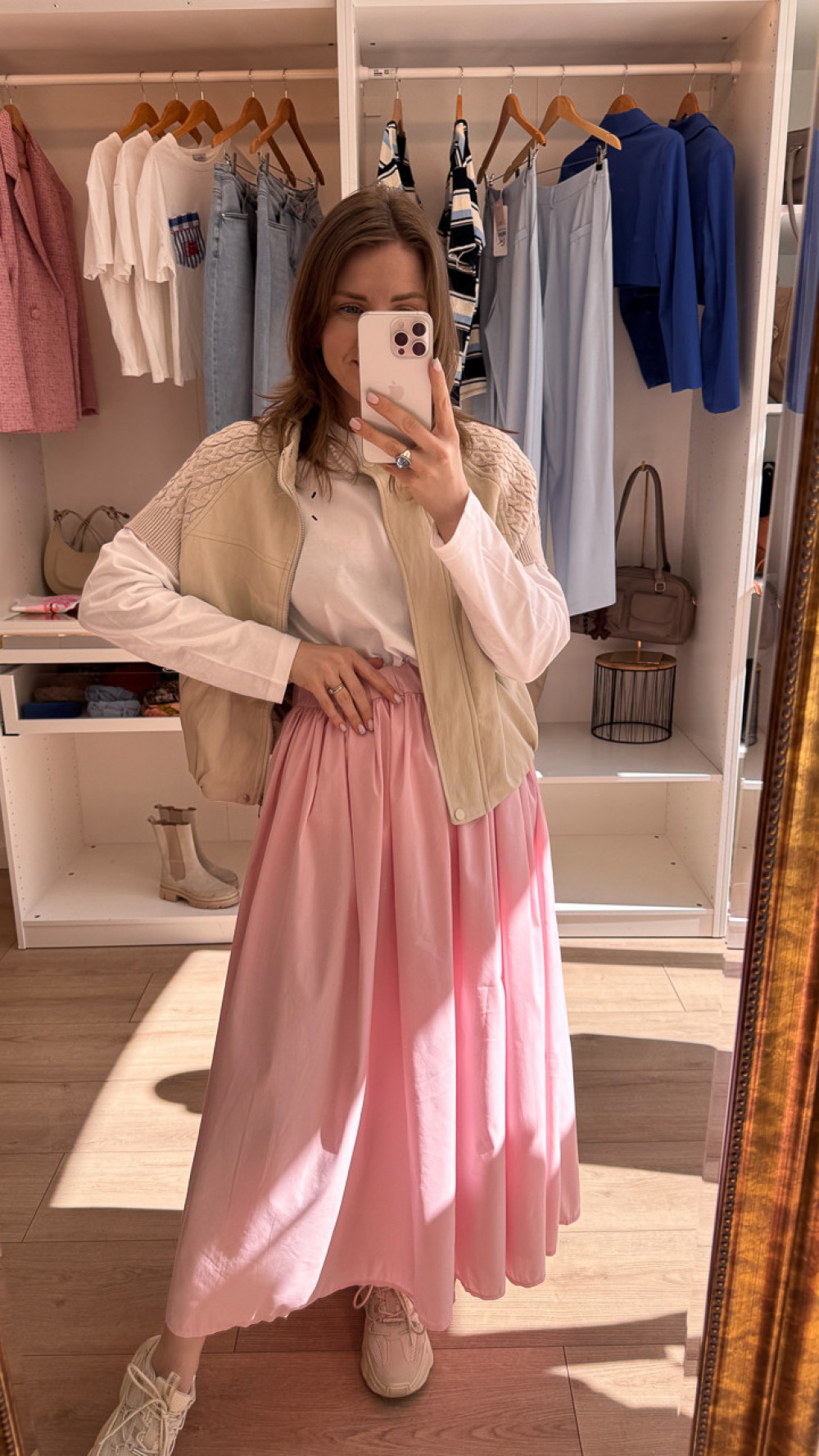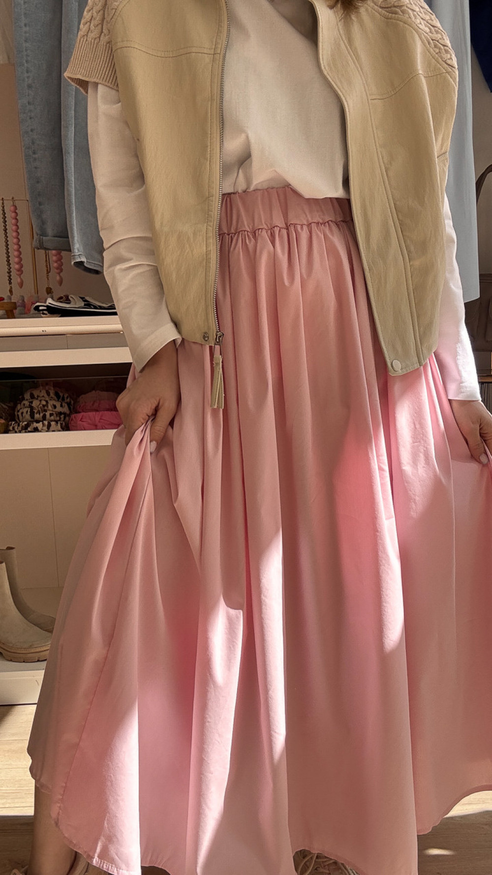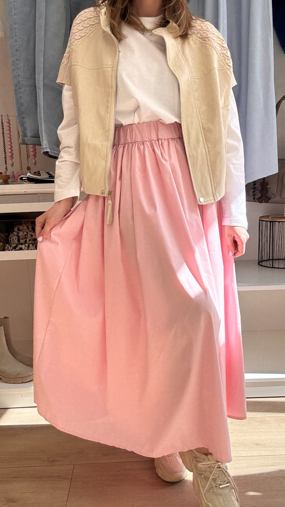 SPÓDNICA Z DELIKATNEJ TKANINY JASNY RÓŻ CHARLOTTA MAXI