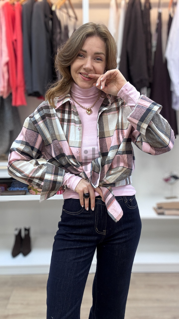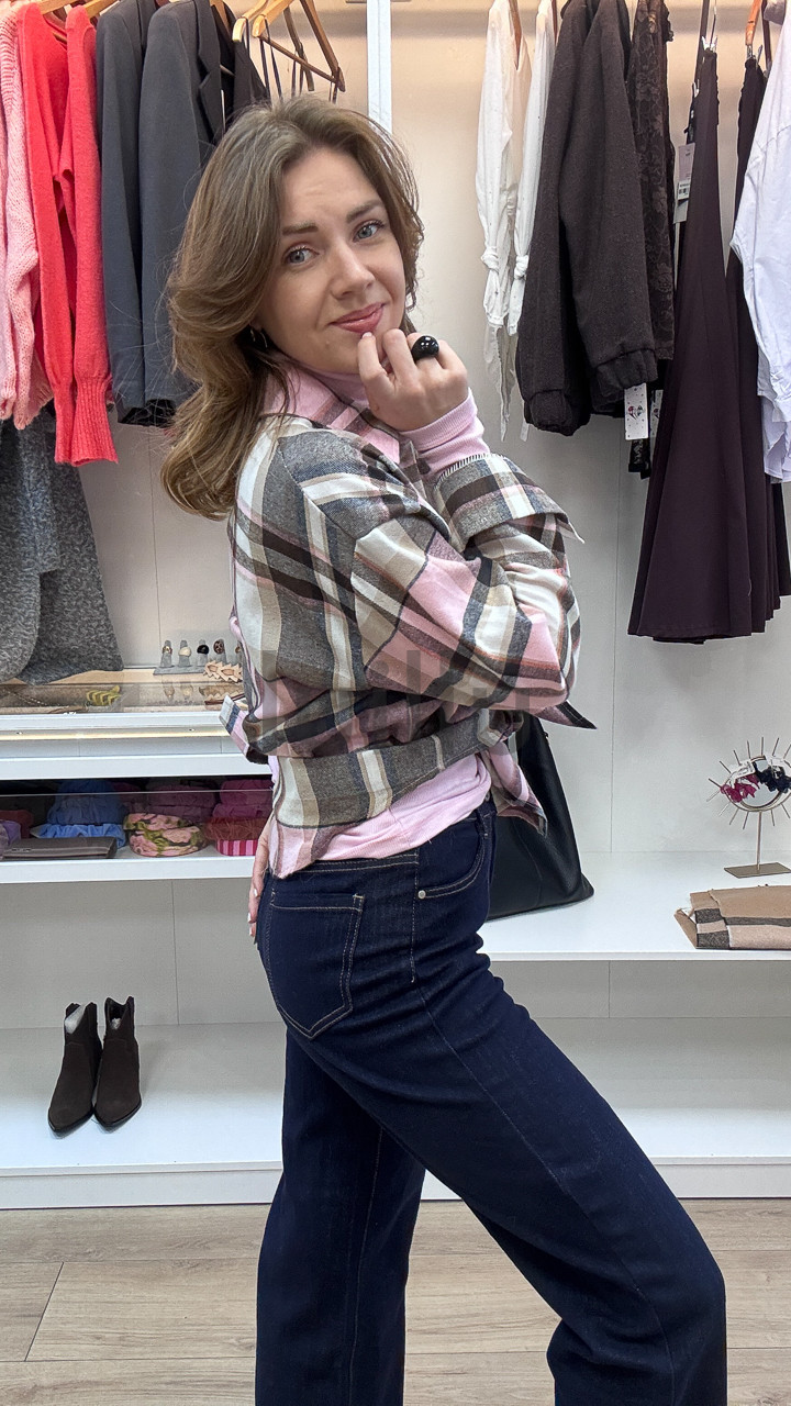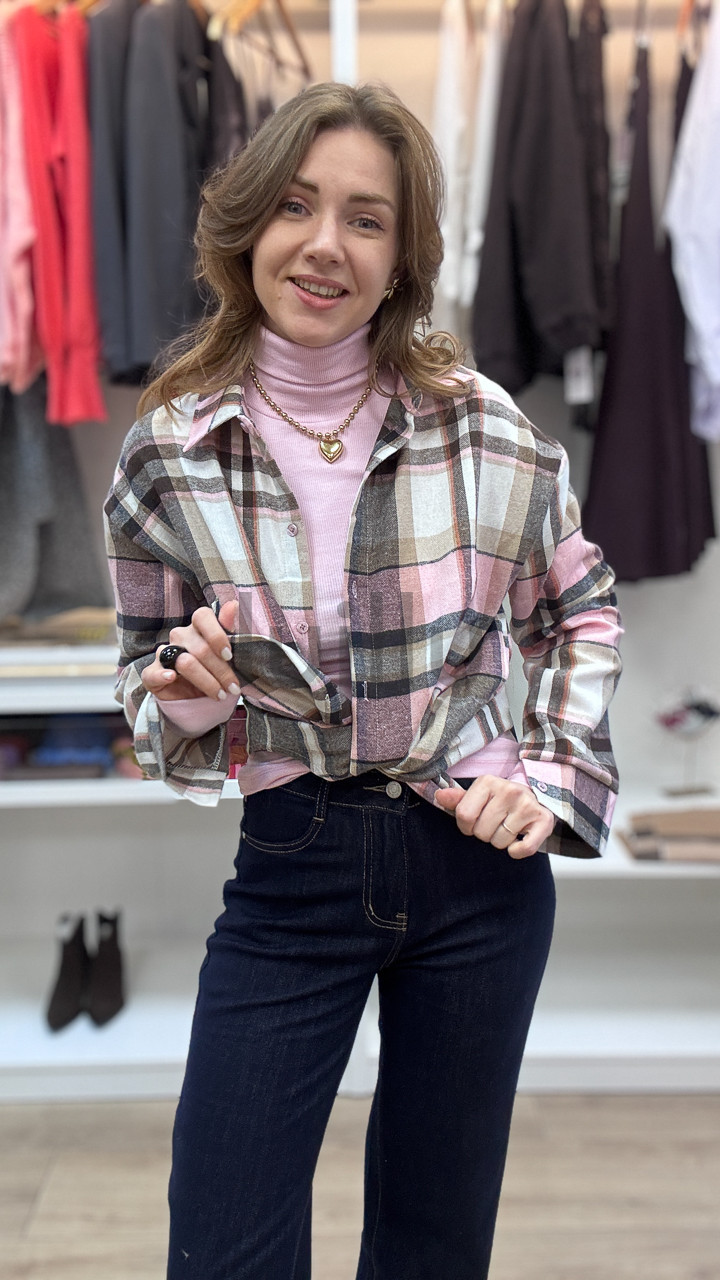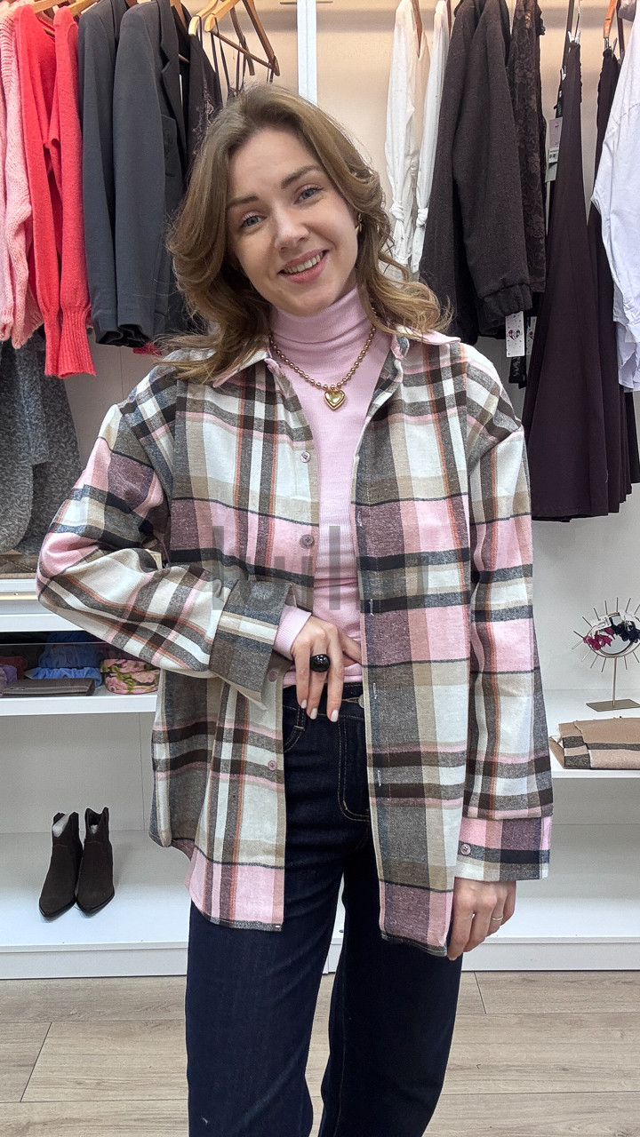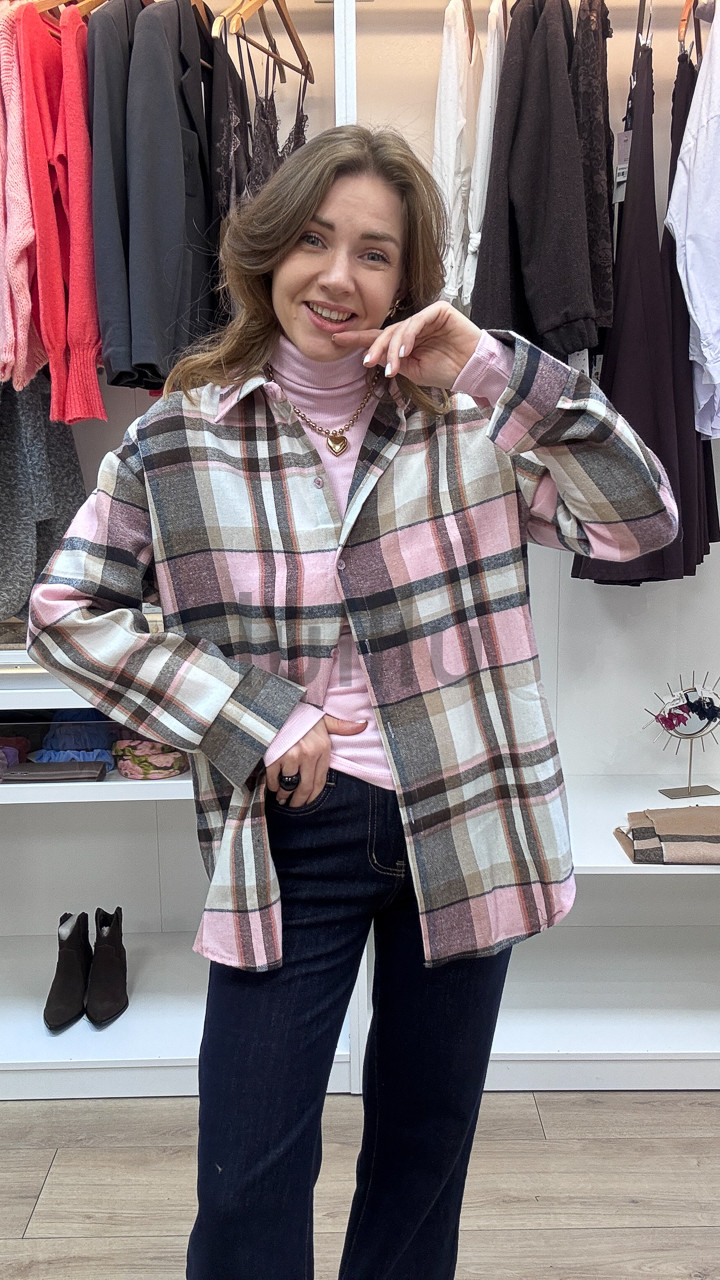 KOSZULA BAWEŁNIANA W KRATKĘ RÓŻOWO CZEKOLADOWĄ