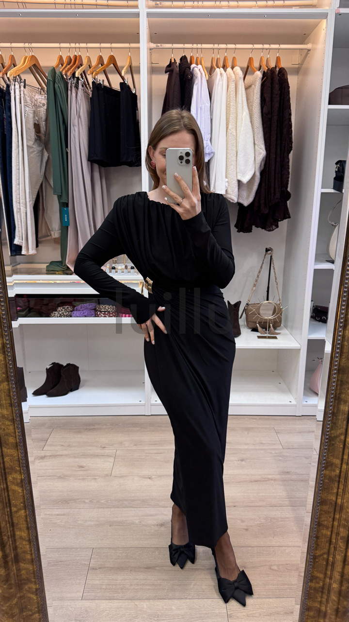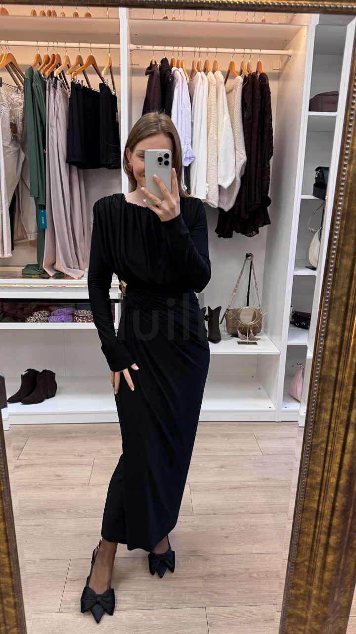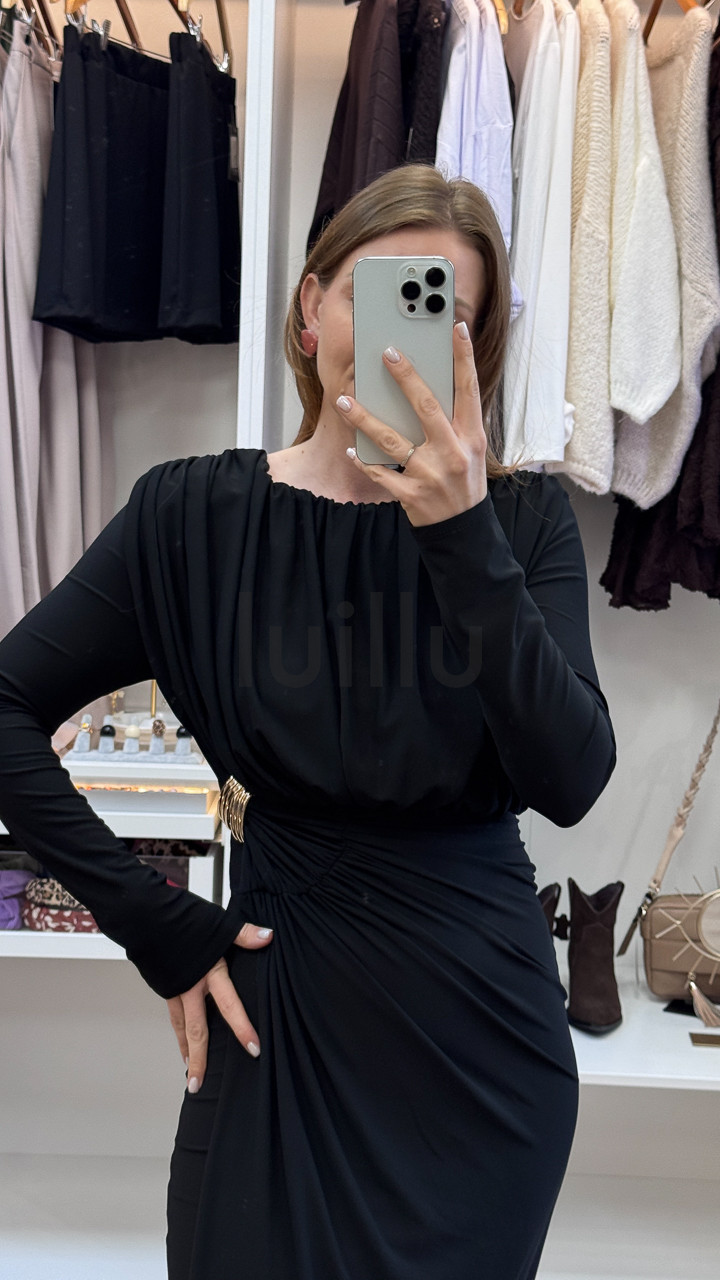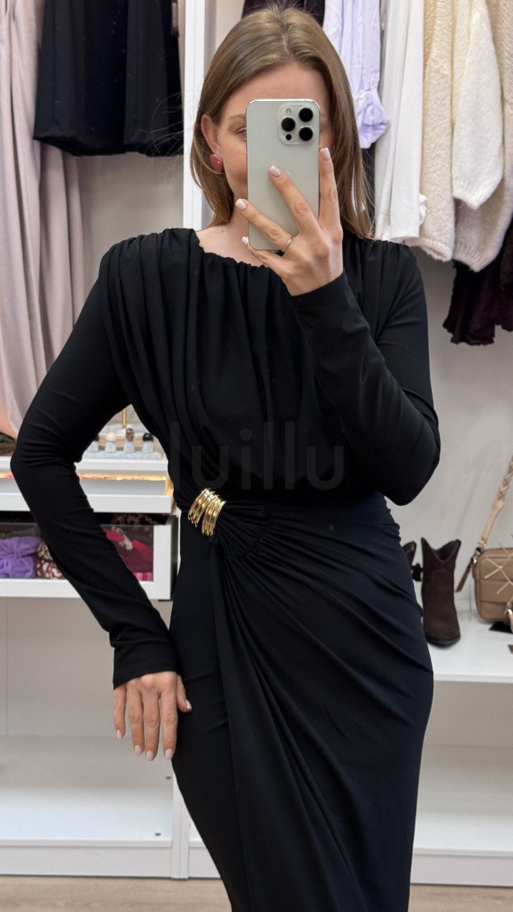 SUKIENKA Z MARSZCZENIEM I KLAMRA CZARNA MARFA