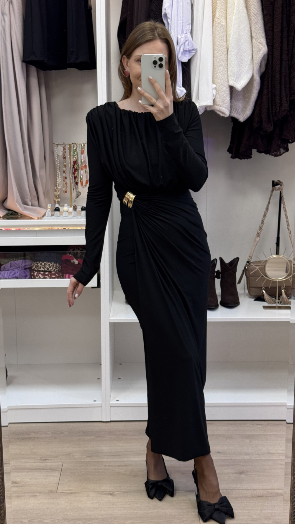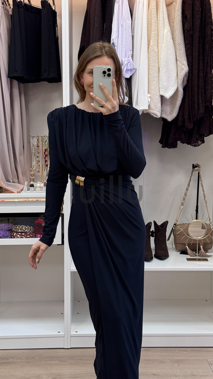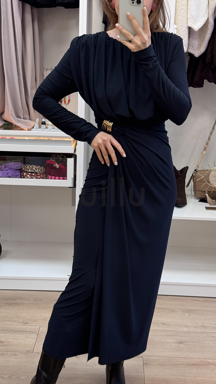 SUKIENKA Z MARSZCZENIEM I KLAMRA CZARNA MARFA