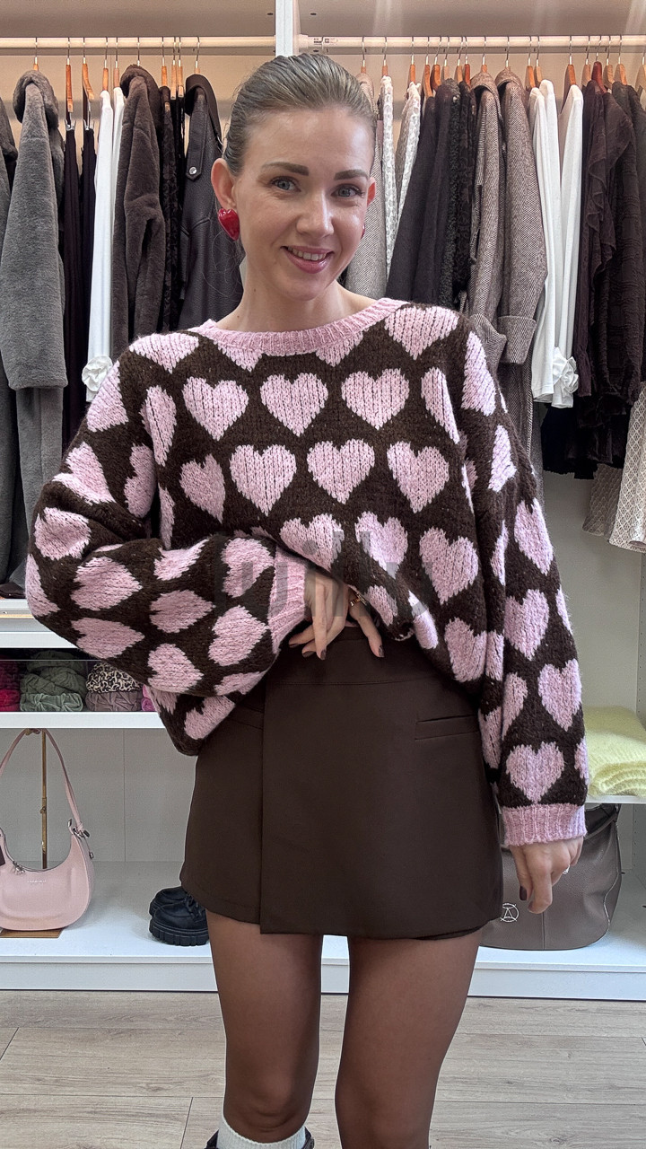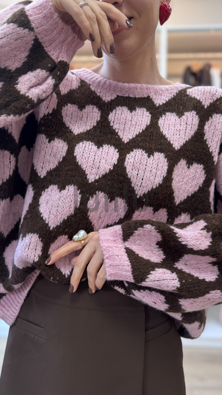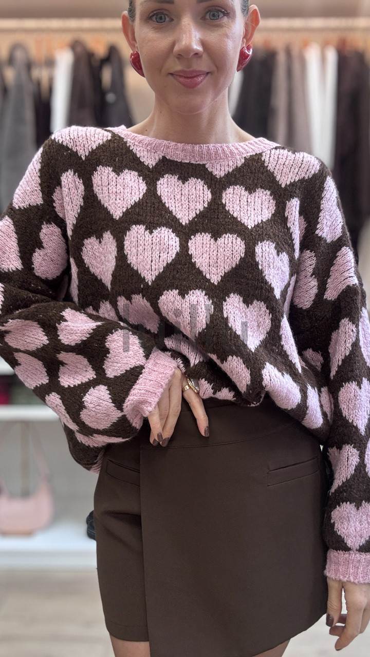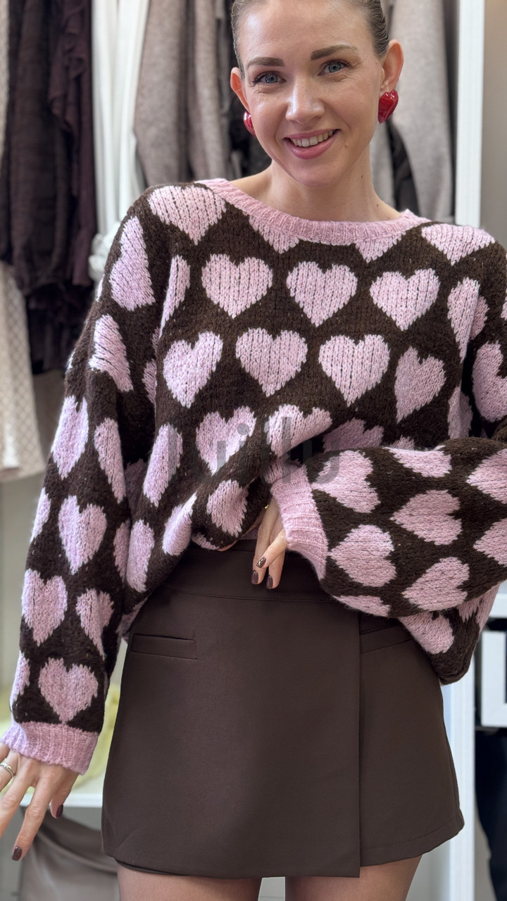 SWETER CZEKOLADOWY W PUDROWE SERDUSZKA AMELIA