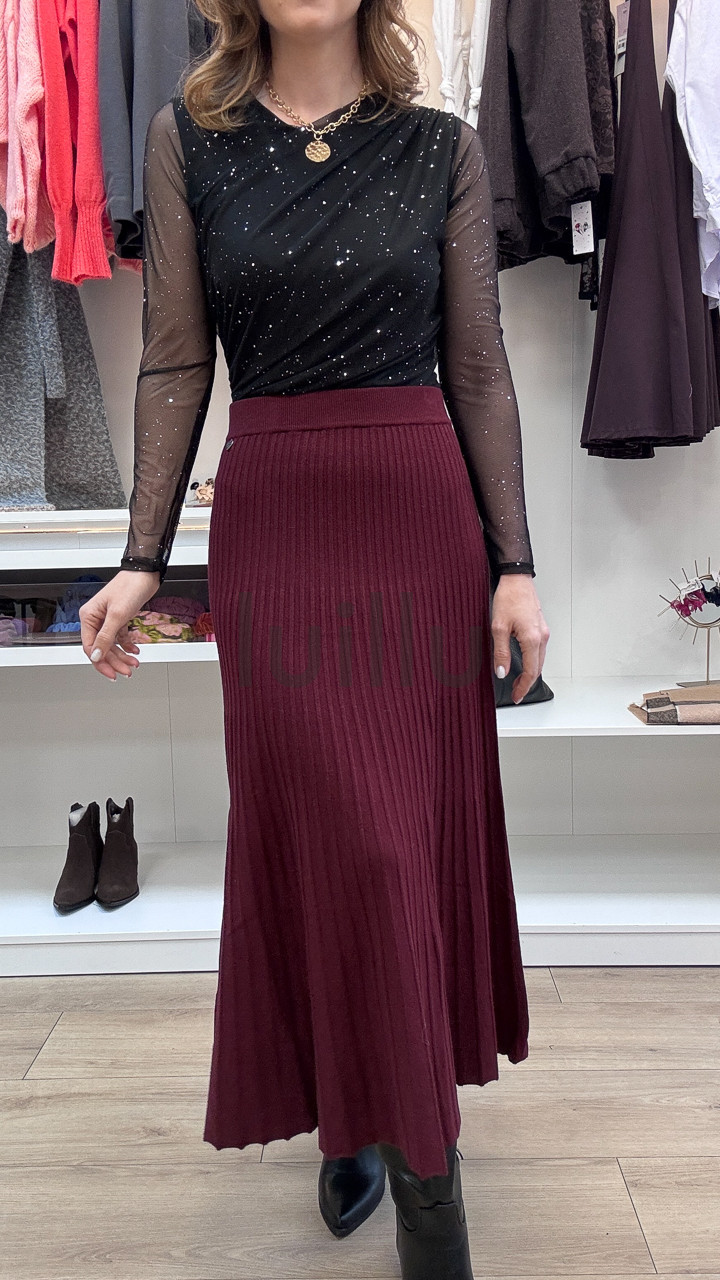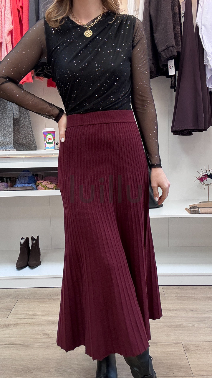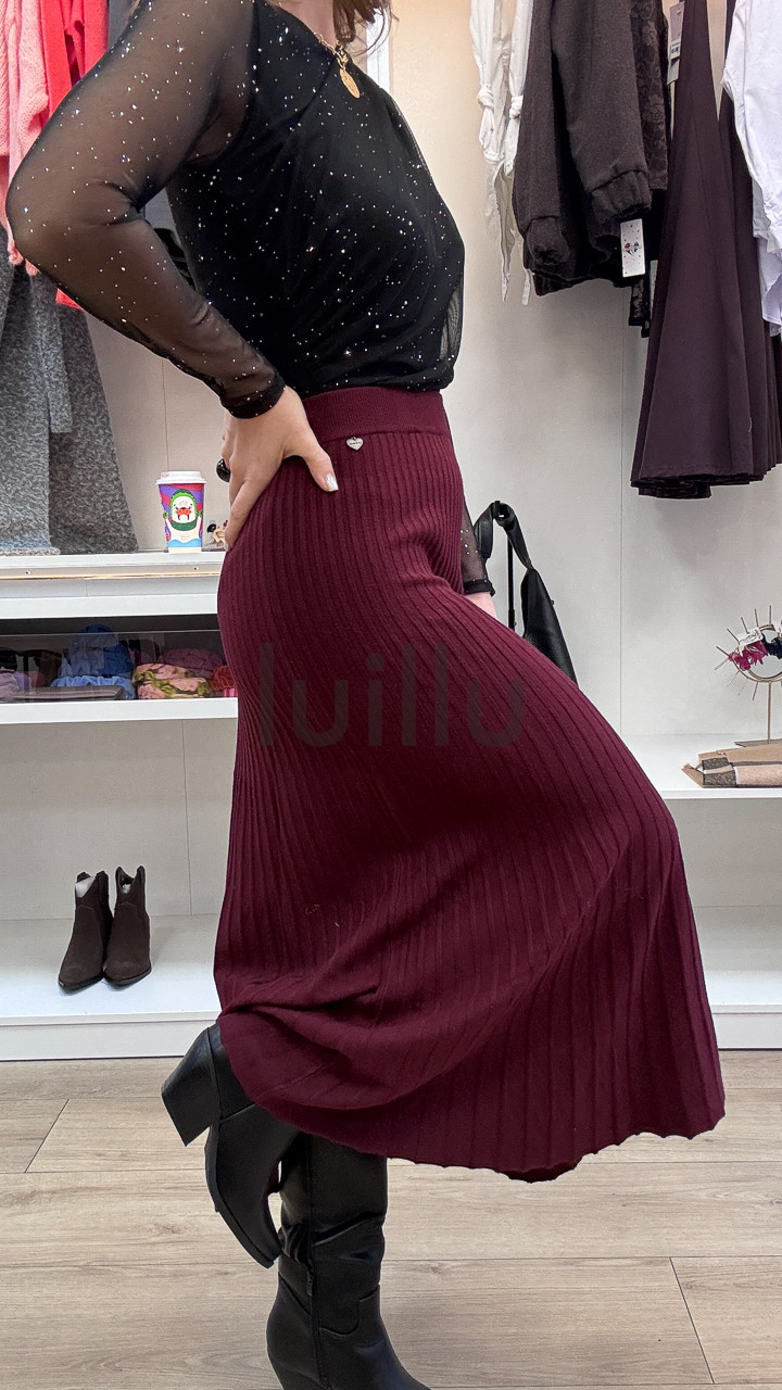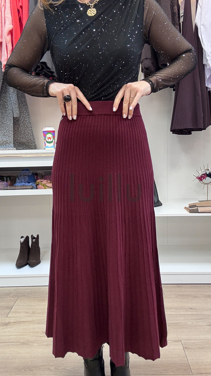 SPÓDNICA Z MIEKKIEJ. RIBOWANEJ DZIANINY BORDOWA