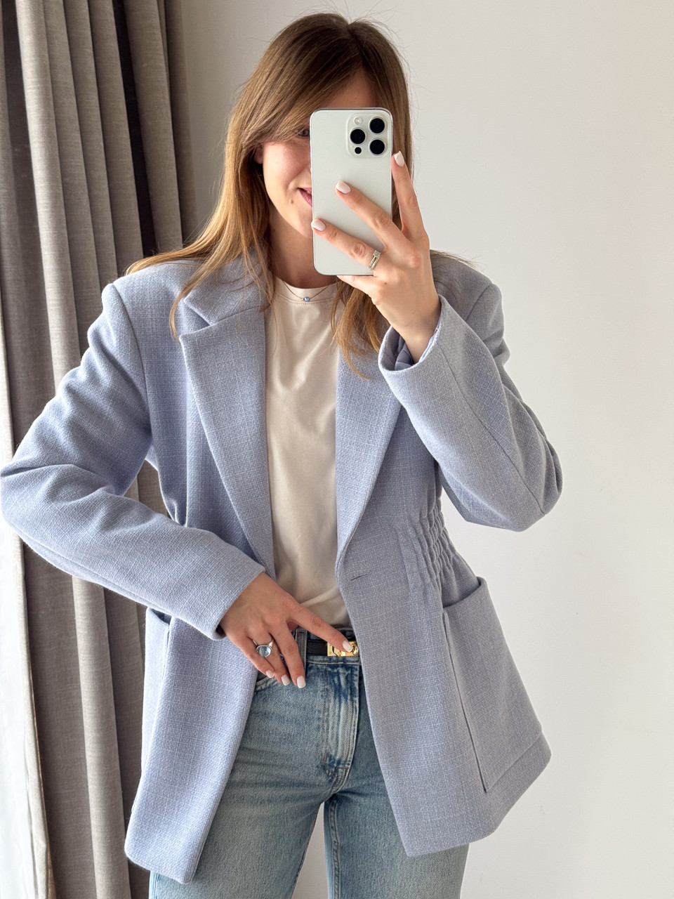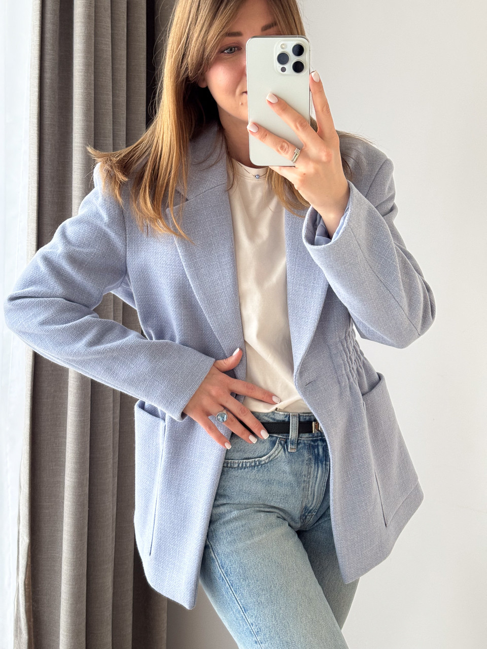 Stylowa i elegancka marynarka! Cudownie można ją wykorzystać na casualowe wyjścia, ale również w eleganckich zestawach. Kolor zachwyca klasyczną nutą! Noś z koszulkami i dzinsami lub dołóż cygaretki.