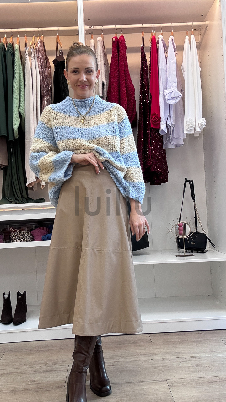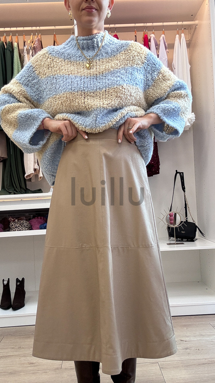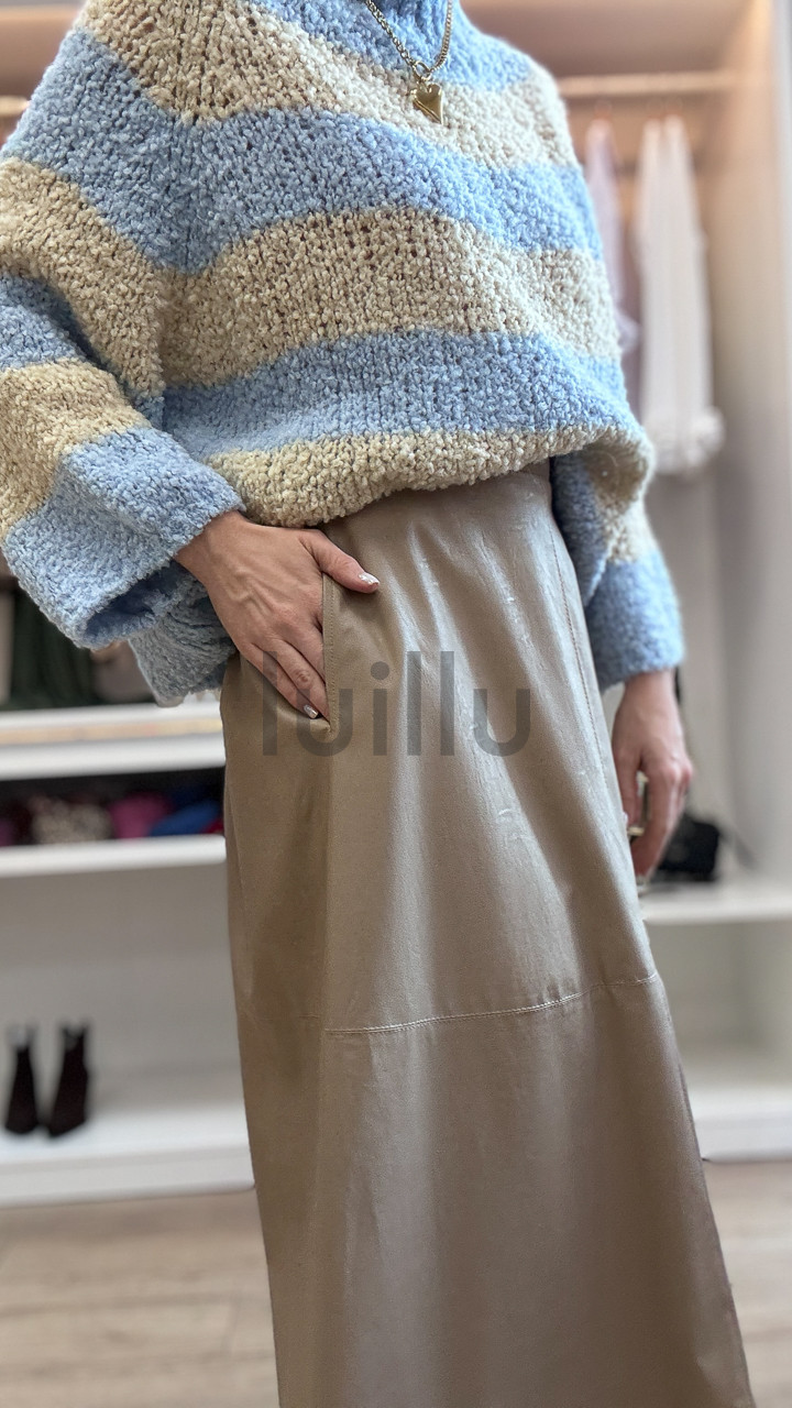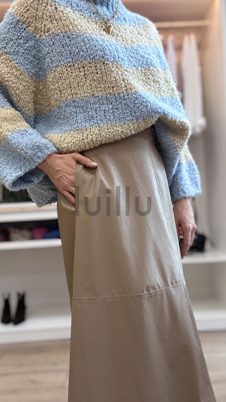 SPÓDNICA Z KIESZENIAMI Z EKO SKÓRY BEŻOWA