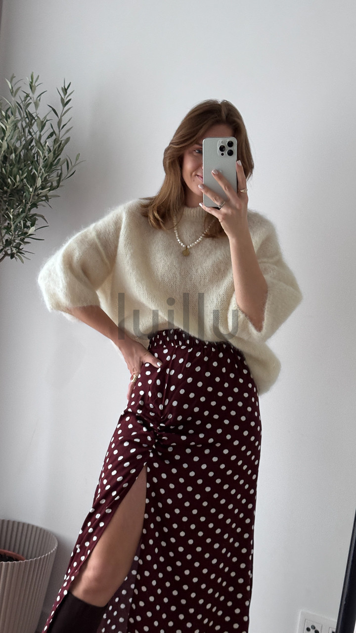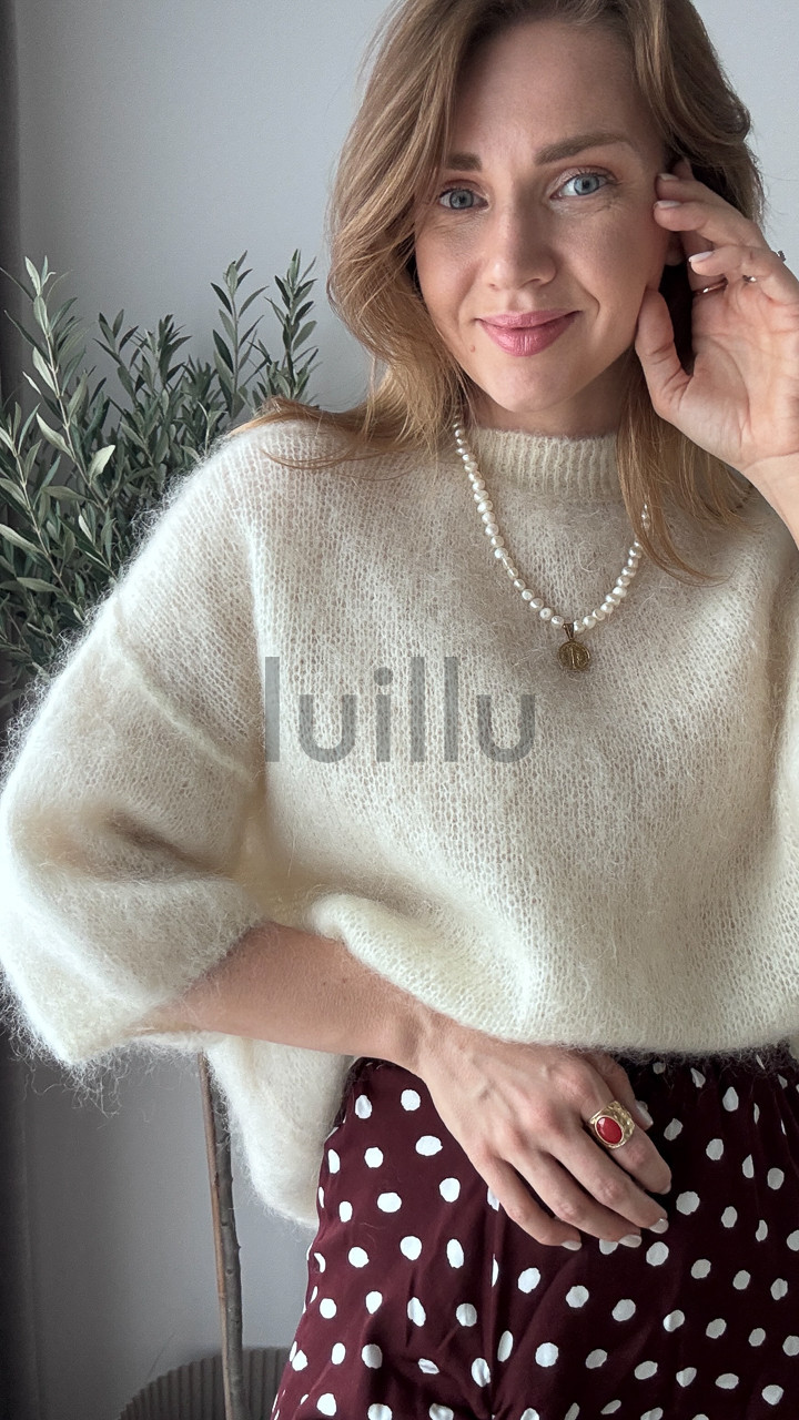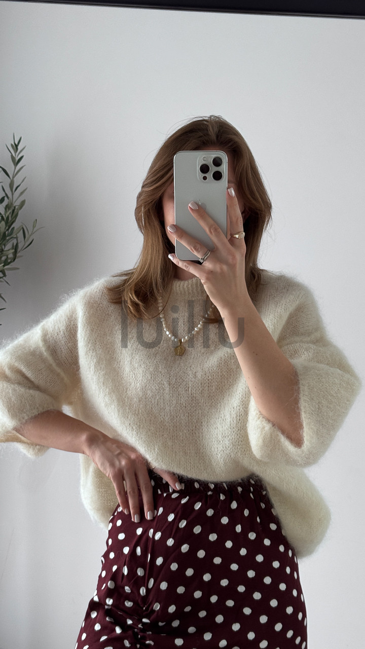 Ten śmietankowy sweter z wełną kid moher to kwintesencja subtelności i klasy.