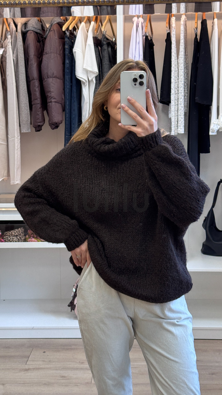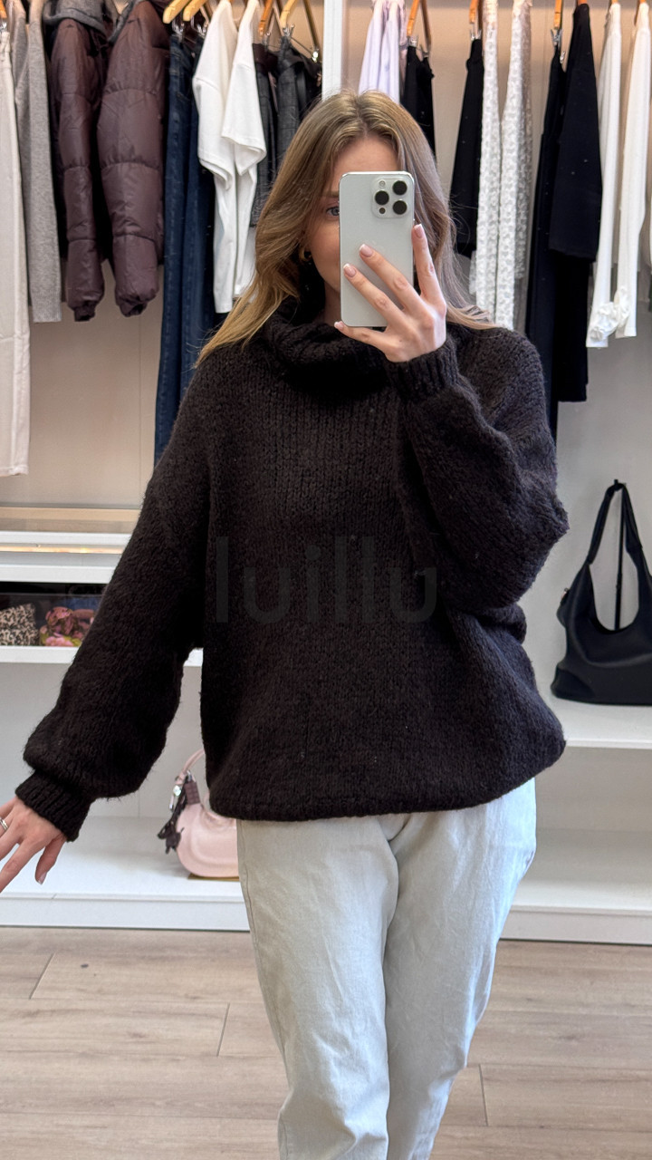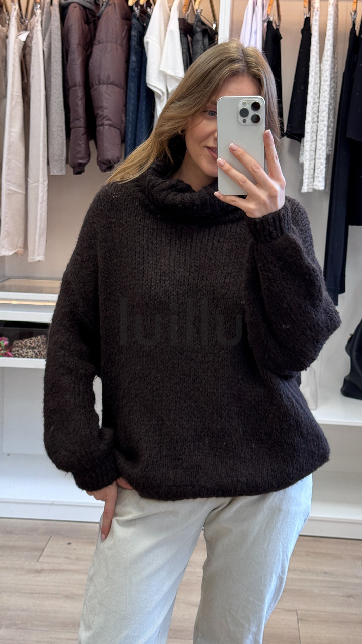 SWETER Z OBSZERNYM GOLFEM CZEKOLADOWY