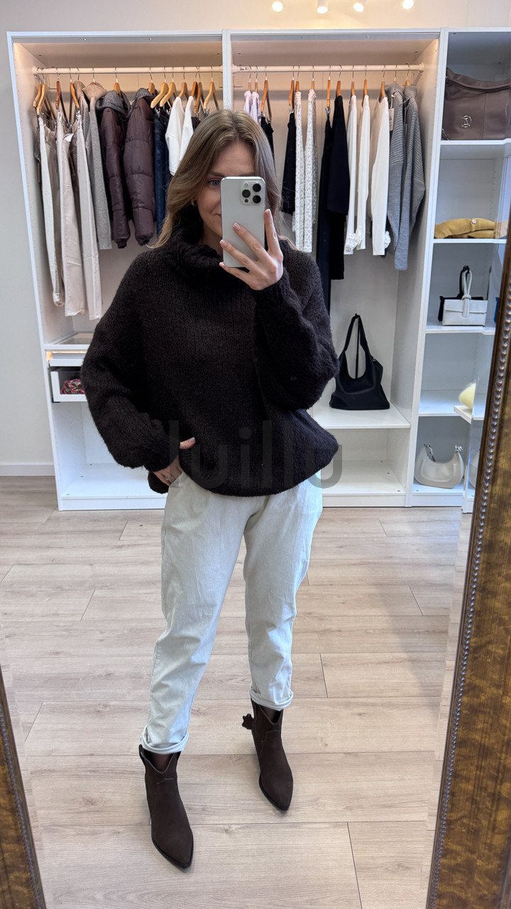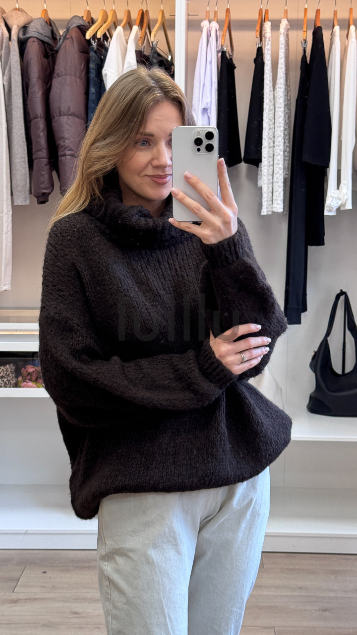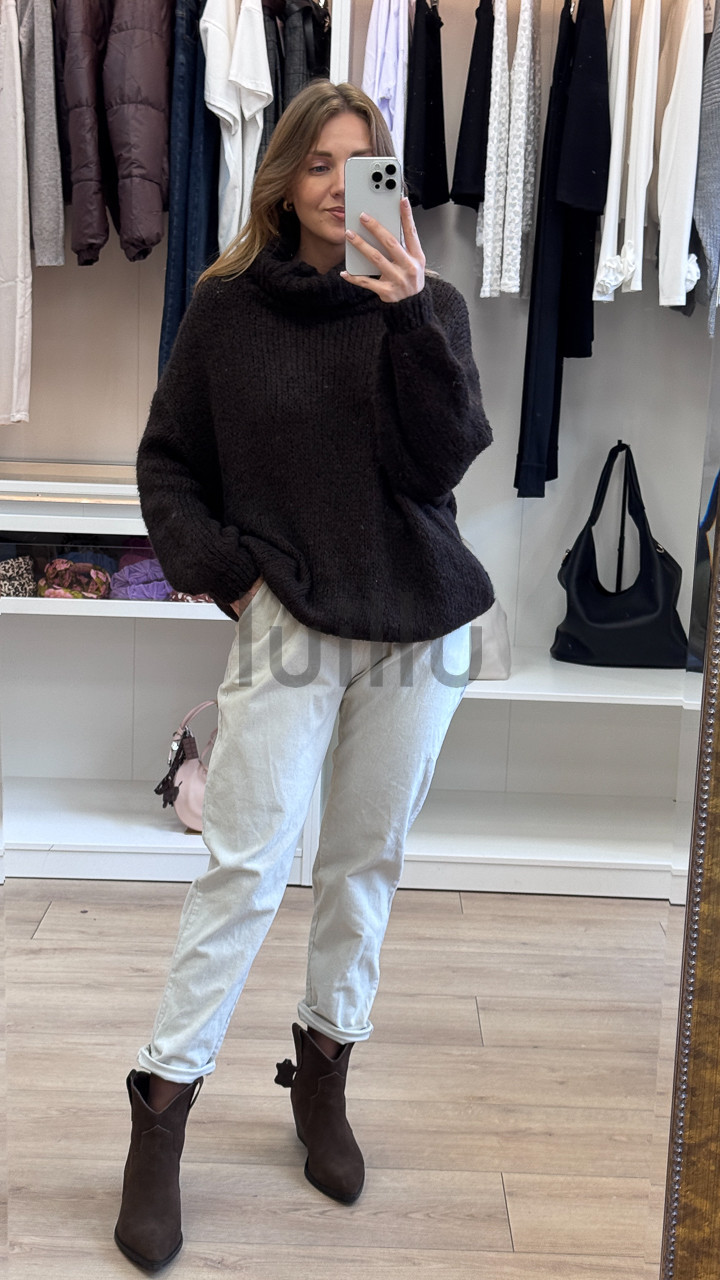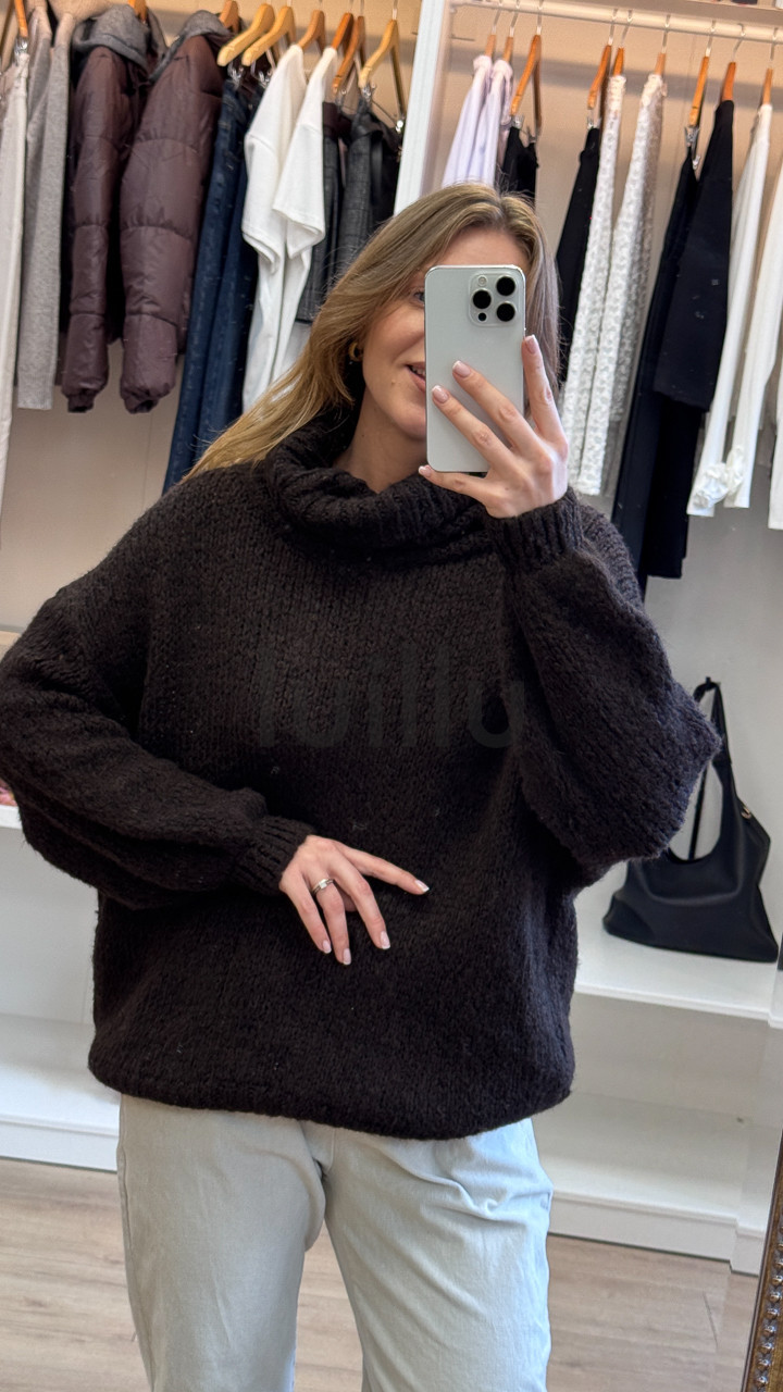 SWETER Z OBSZERNYM GOLFEM CZEKOLADOWY