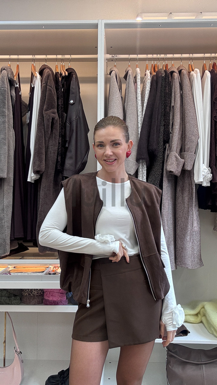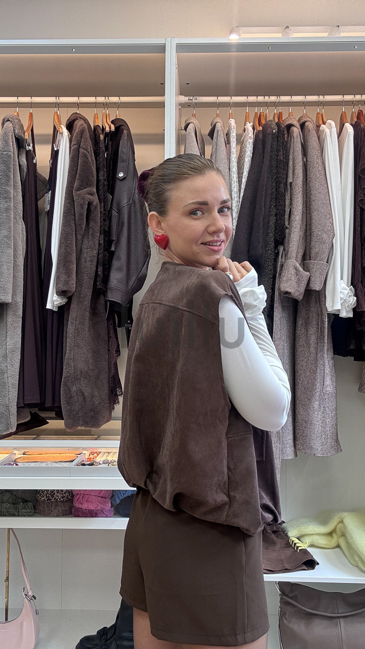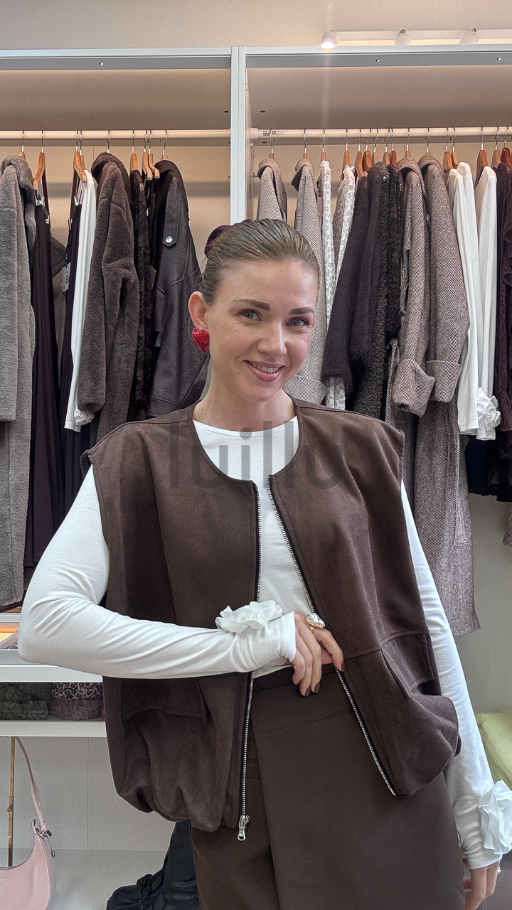 KAMIZELKA Z EKO ZAMSZU W KOLORZE CZEKOLADA