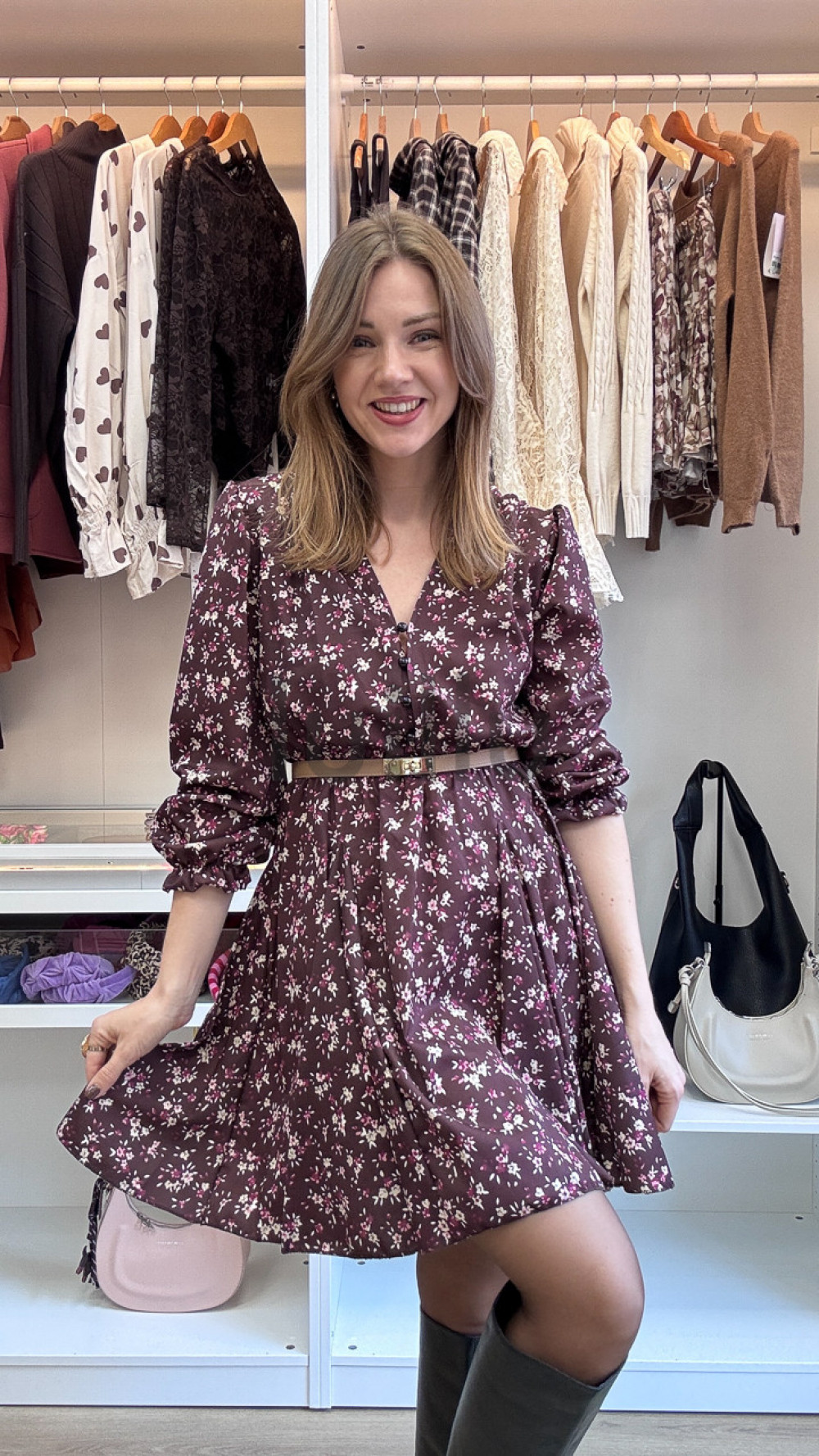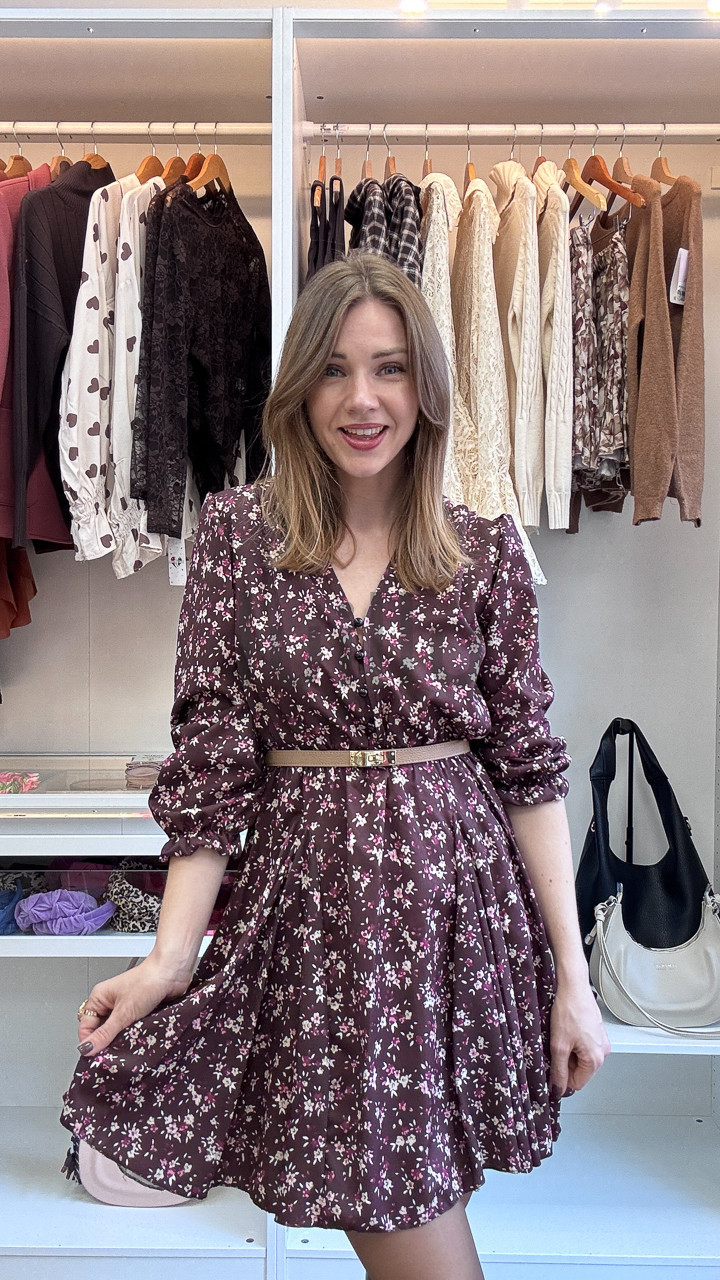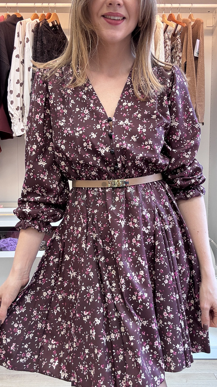 SUKIENKA W DROBNE KWIATKI BURGUNDOWA PRZED KOLANO LORIS