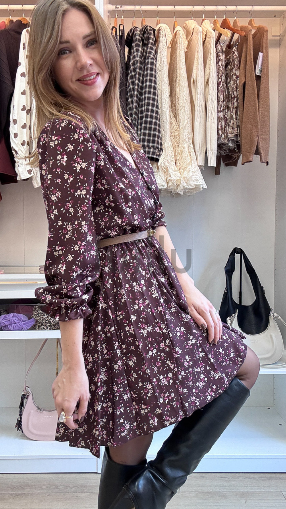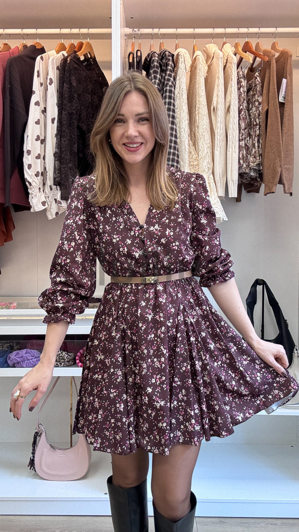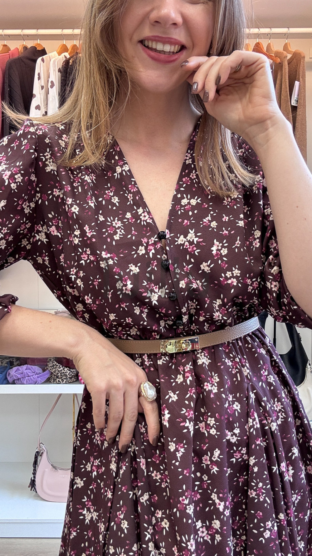 SUKIENKA W DROBNE KWIATKI BURGUNDOWA PRZED KOLANO LORIS