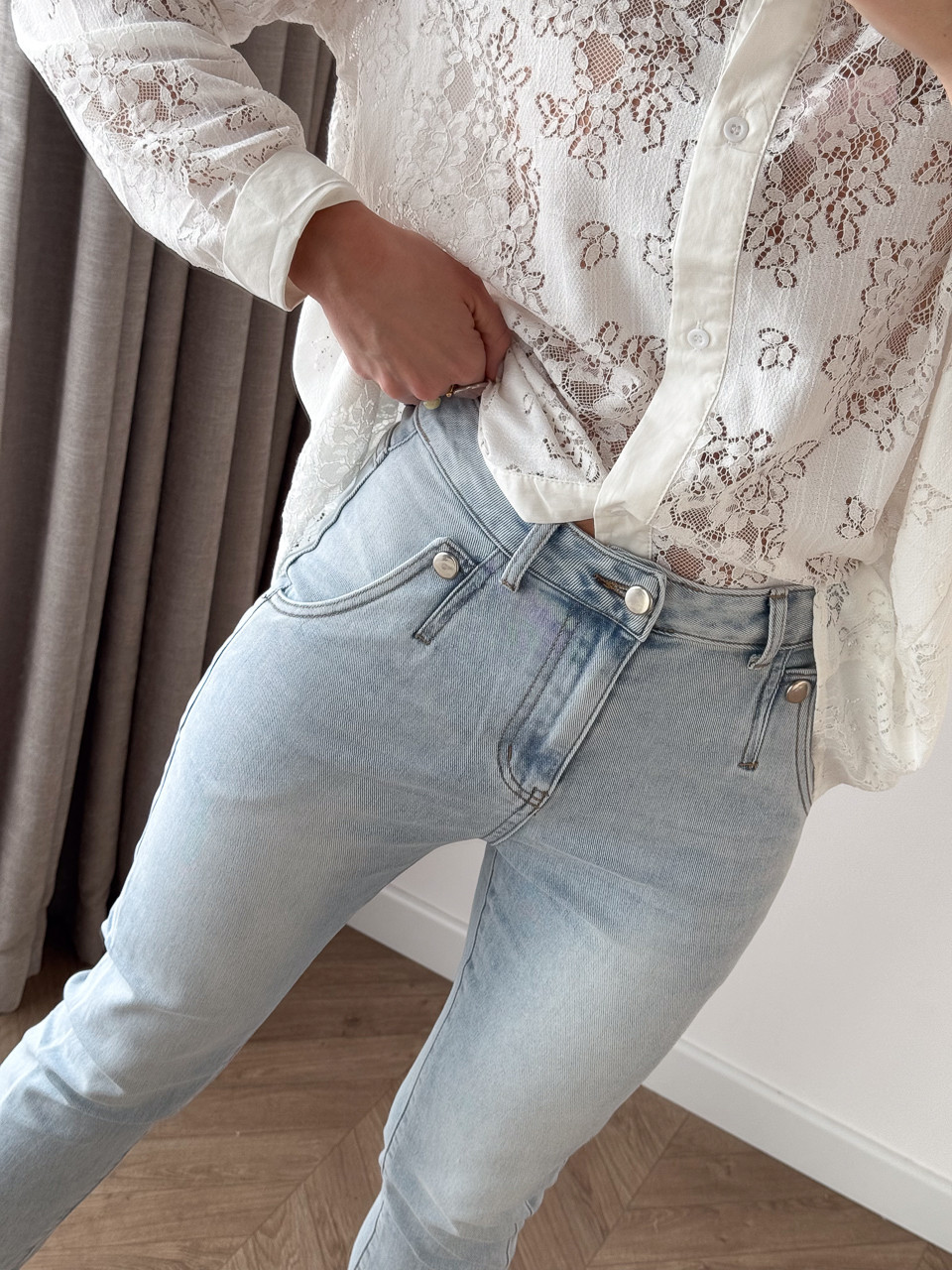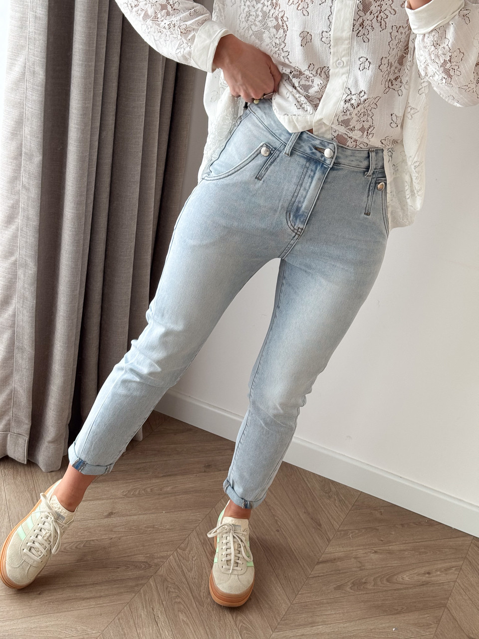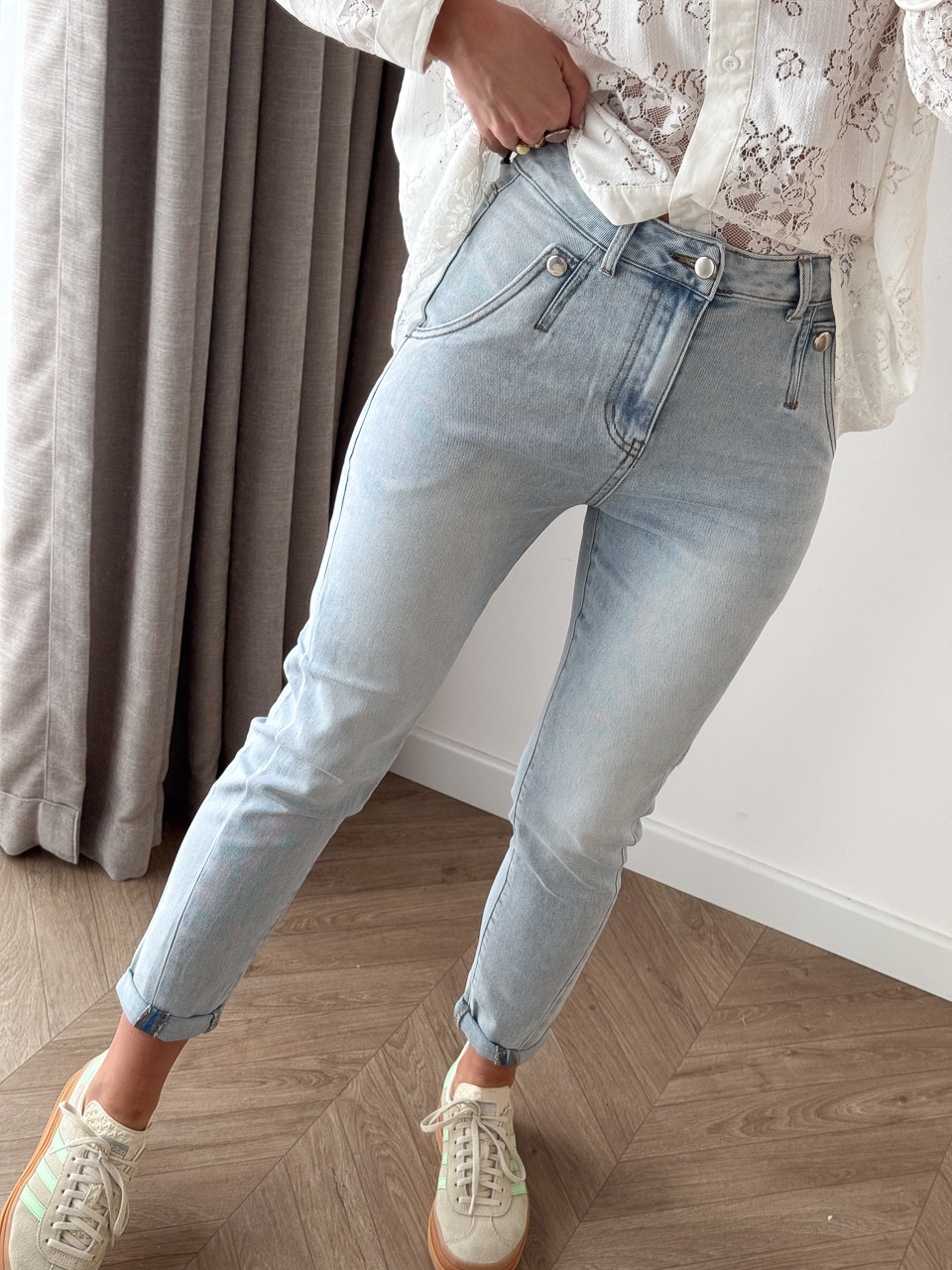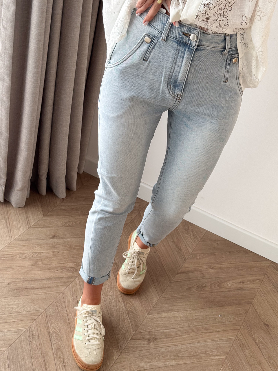 SPODNIE DŻINSOWE MOM FIT Z OZDOBNYM GUZIKIEM