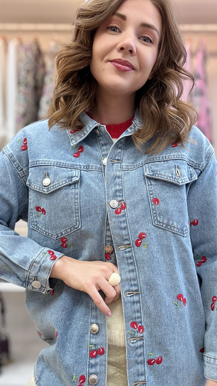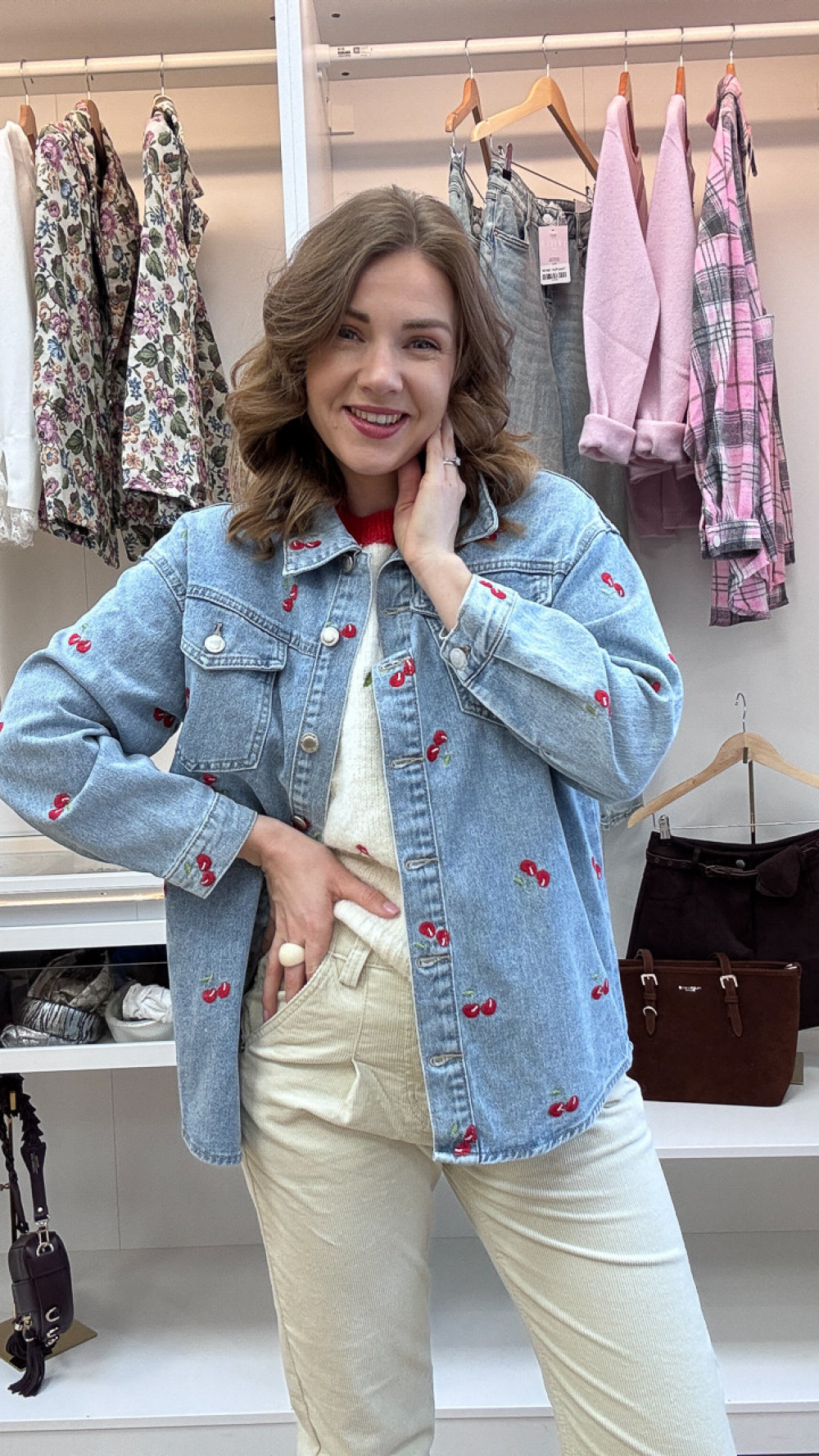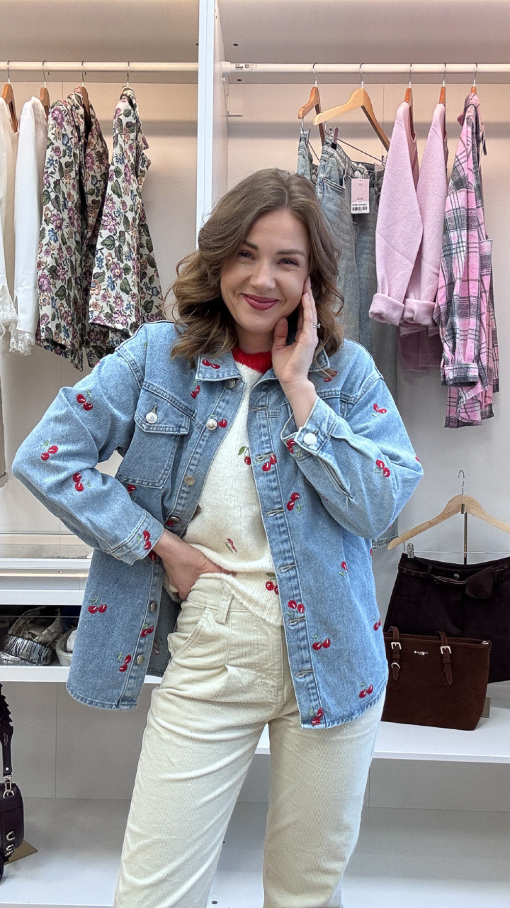 KURTKA NIEBIESKA DŻINSOWA W WISIENKI