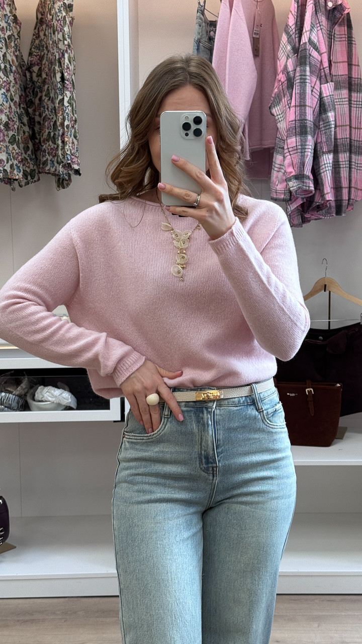 SWETER PUDROWY RÓŻ VERGINE WOOL