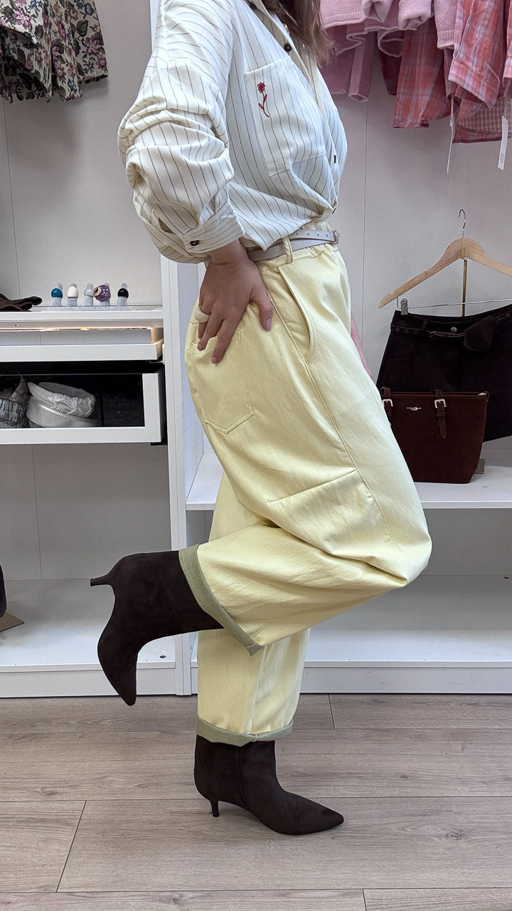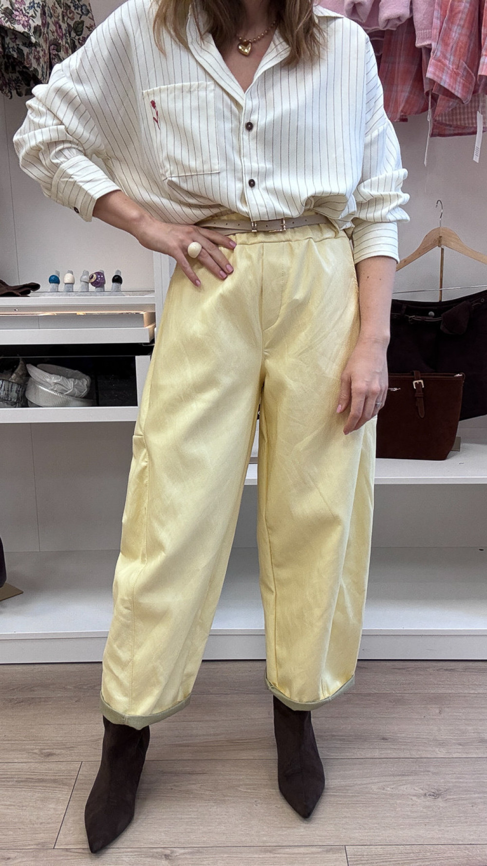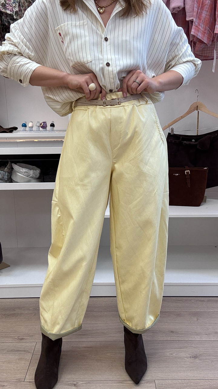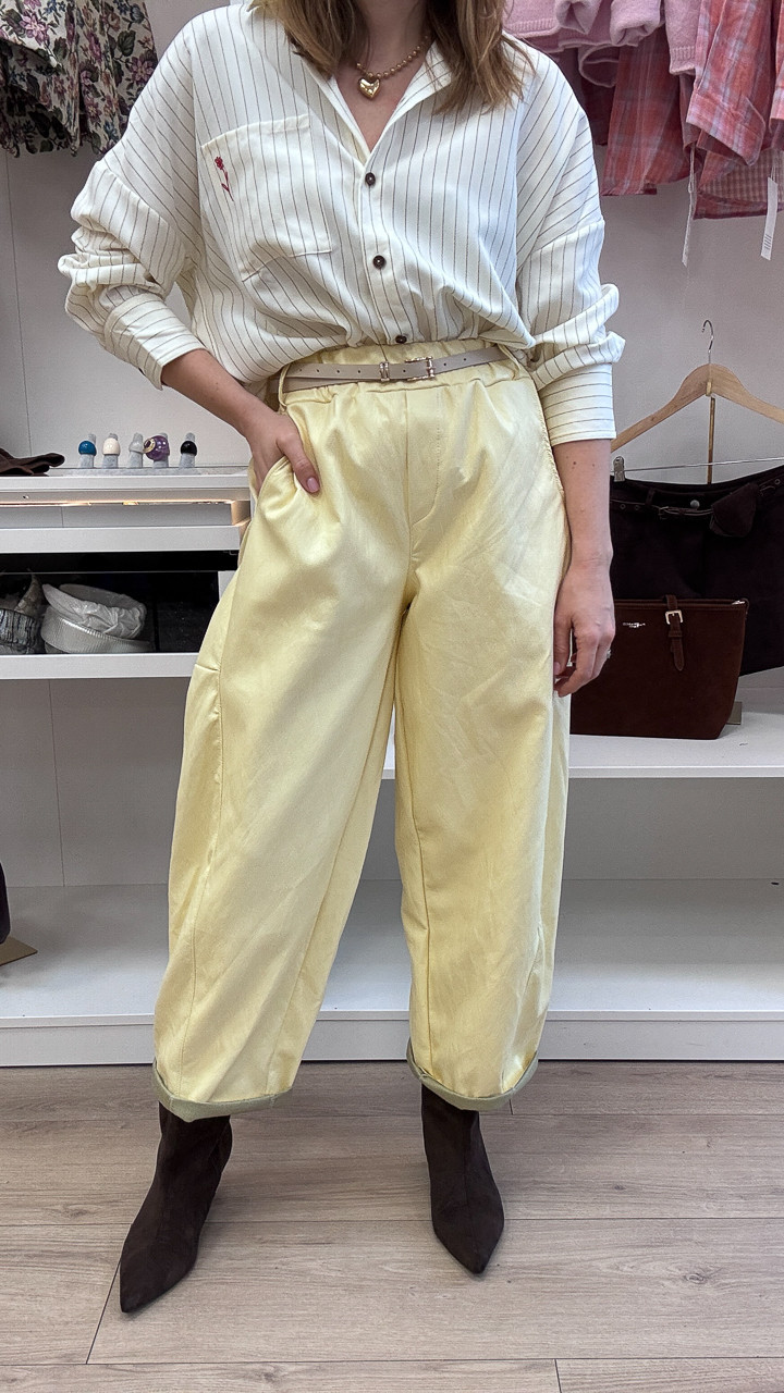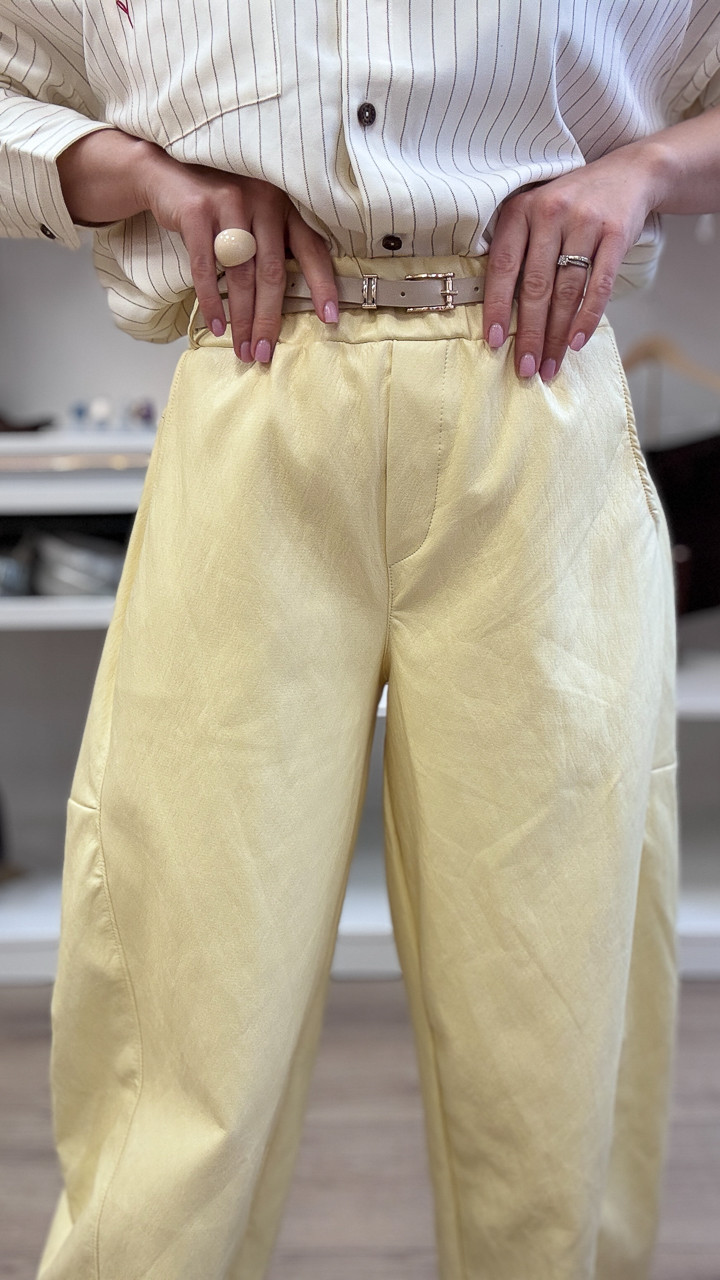SPODNIE BANANOWE Z EKO SKÓRY Z PASKIEM