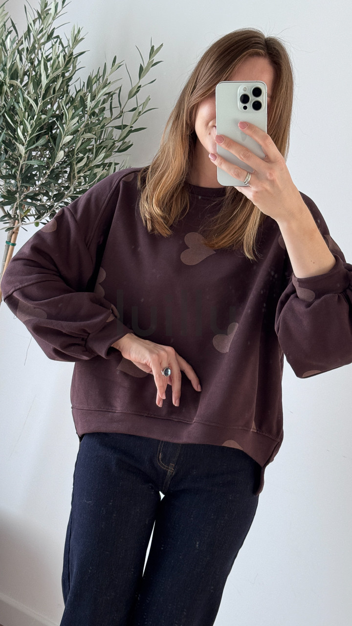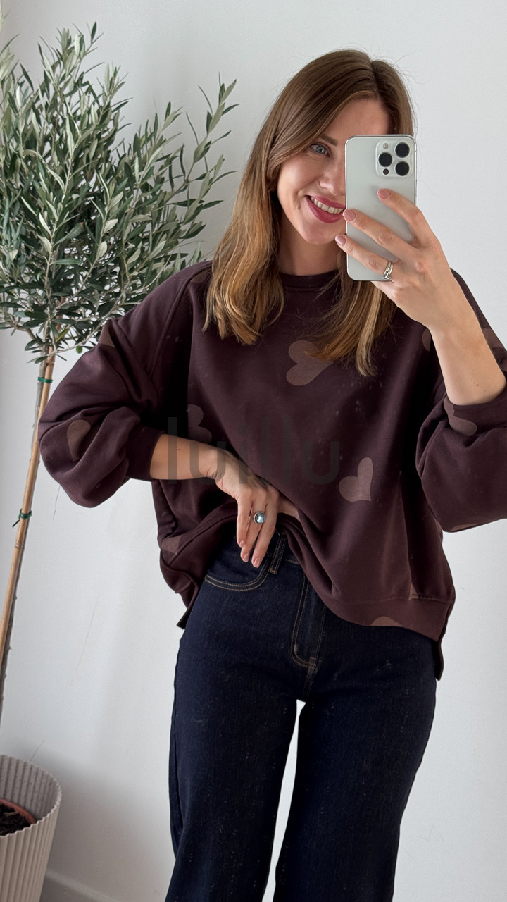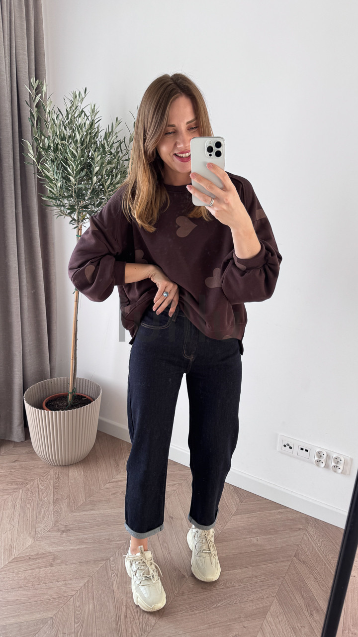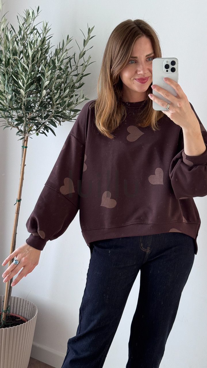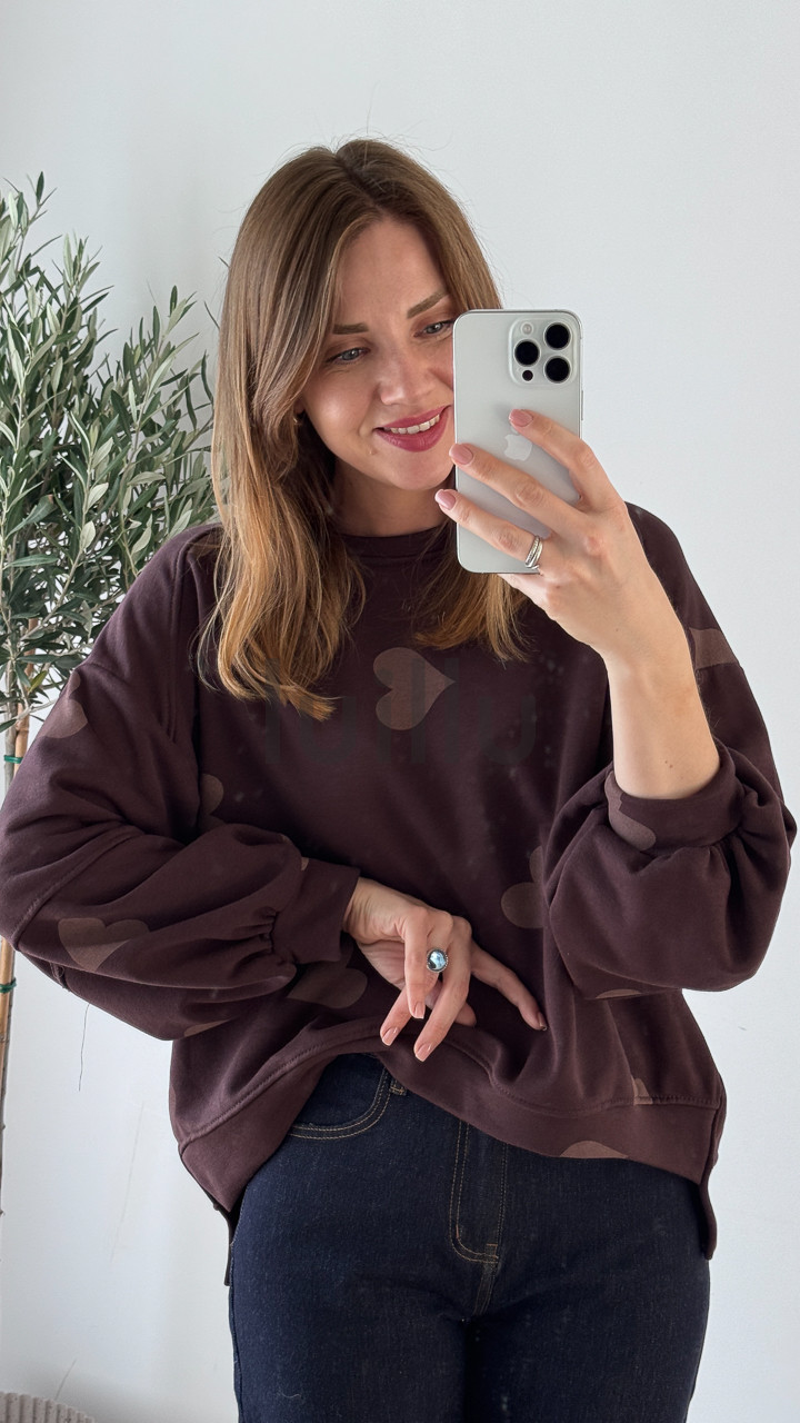 BLUZA CZEKOLADOWA Z MIĘSITEJ BAWEŁNY W SERDUSZKA