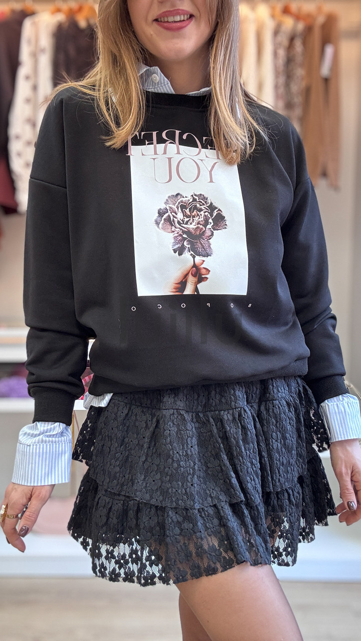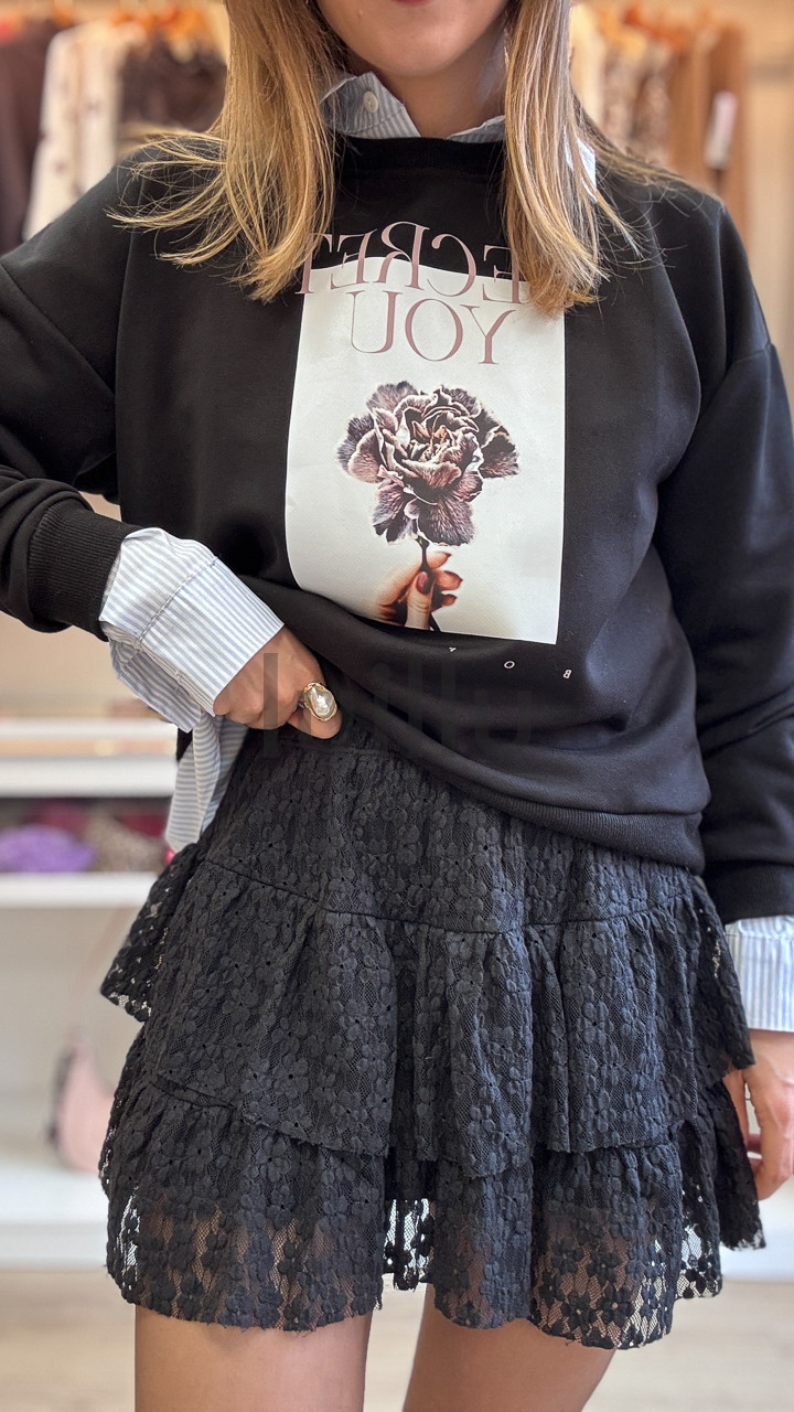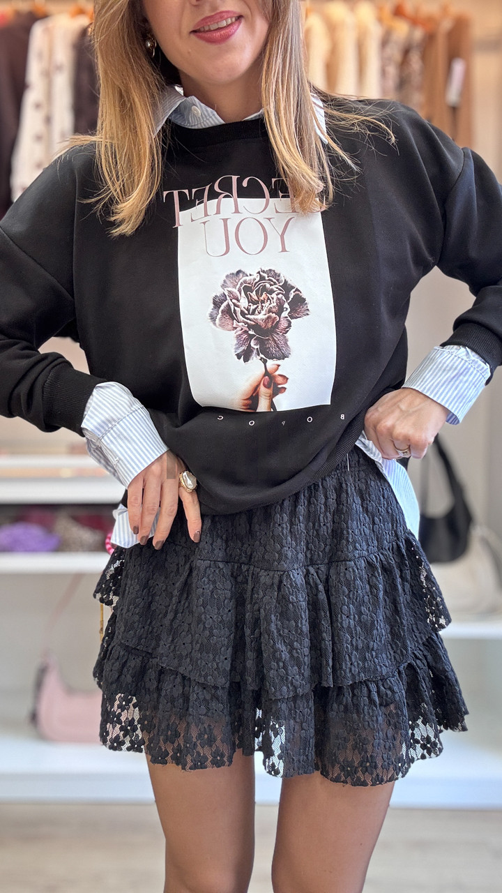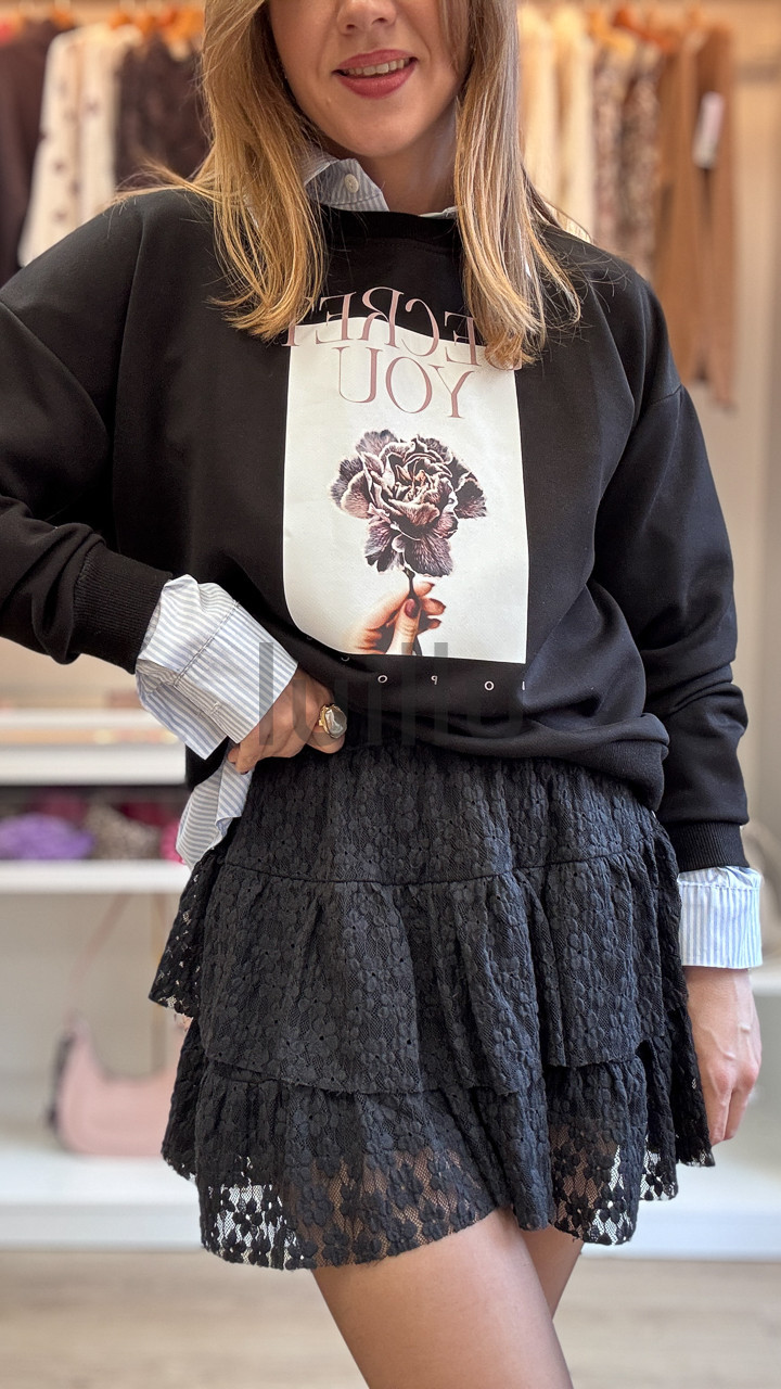 SPÓDNICZKA MINI Z BAWEŁNIANEJ KORONKI CZARNA SELENA