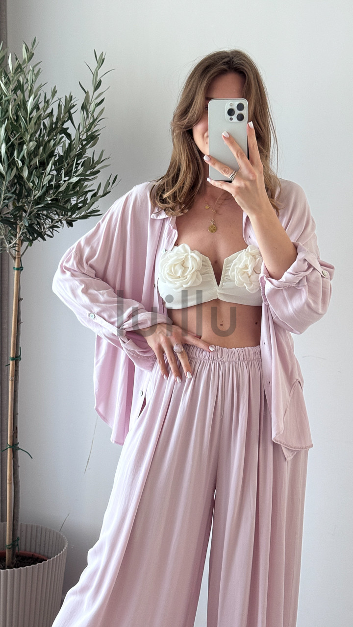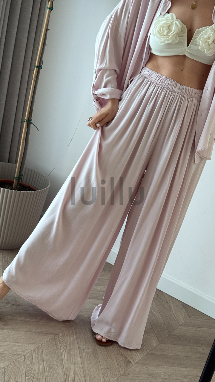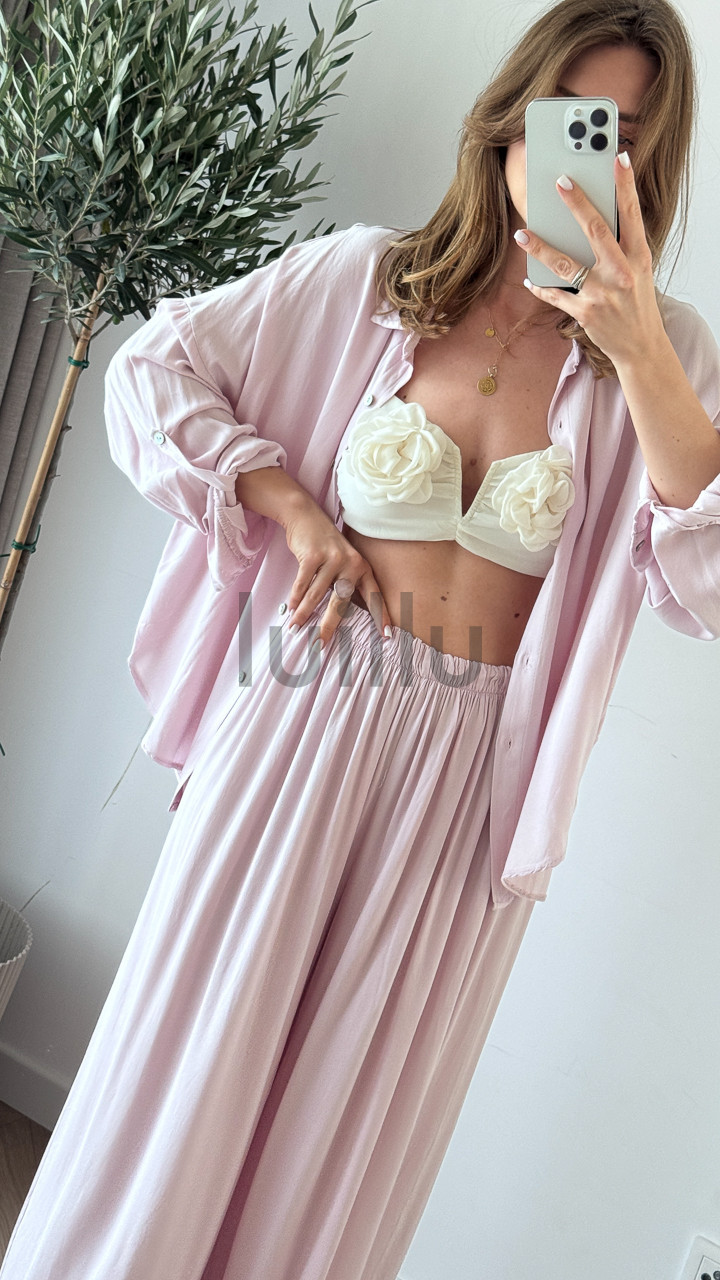 Słowa kluczowe: komplet wiskozowy damski, koszula i spodnie 100% wiskoza, letni komplet z wiskozy, elegancki komplet na lato, komplet z naturalnej tkaniny