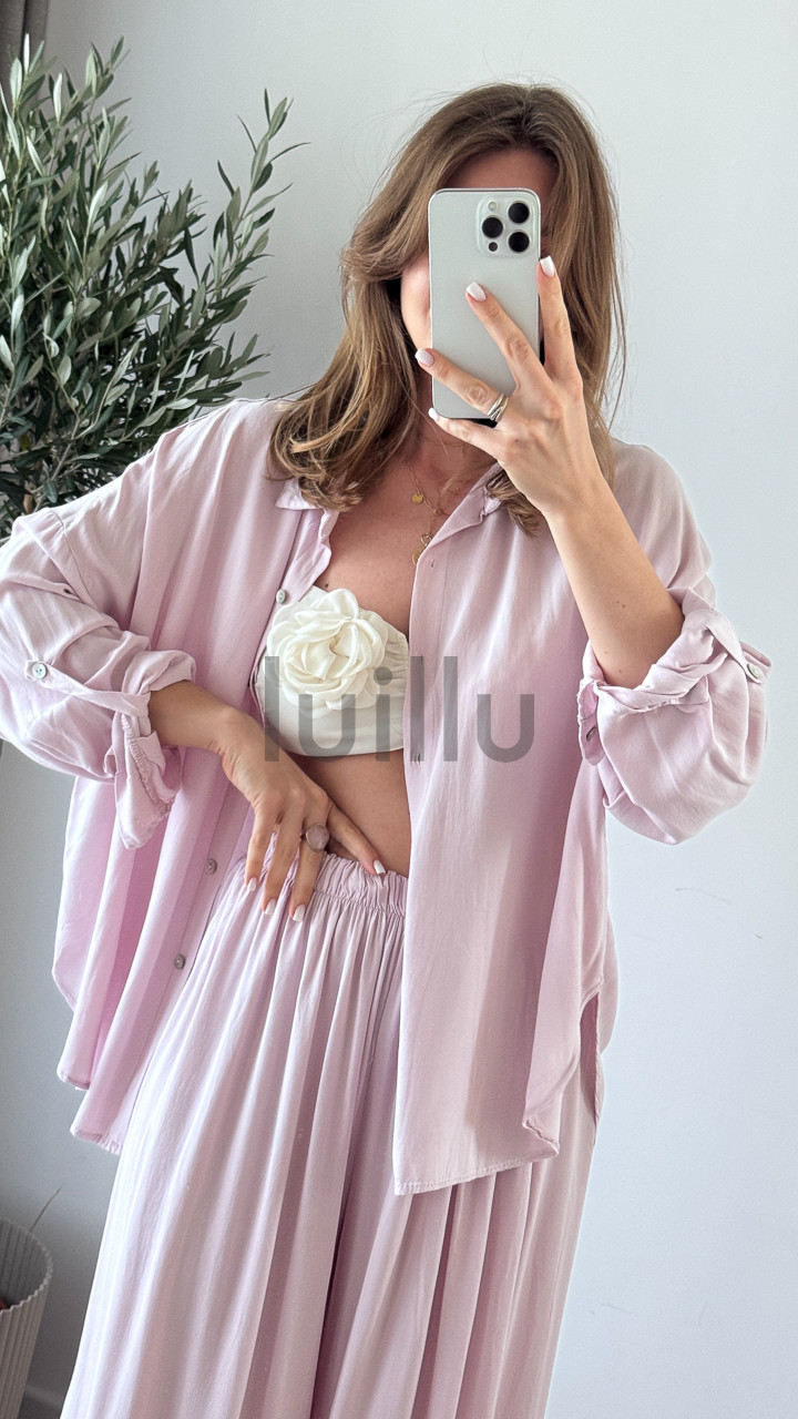 Koszula i spodnie tworzą harmonijny duet, który możesz nosić razem lub osobno, tworząc wiele stylizacji.