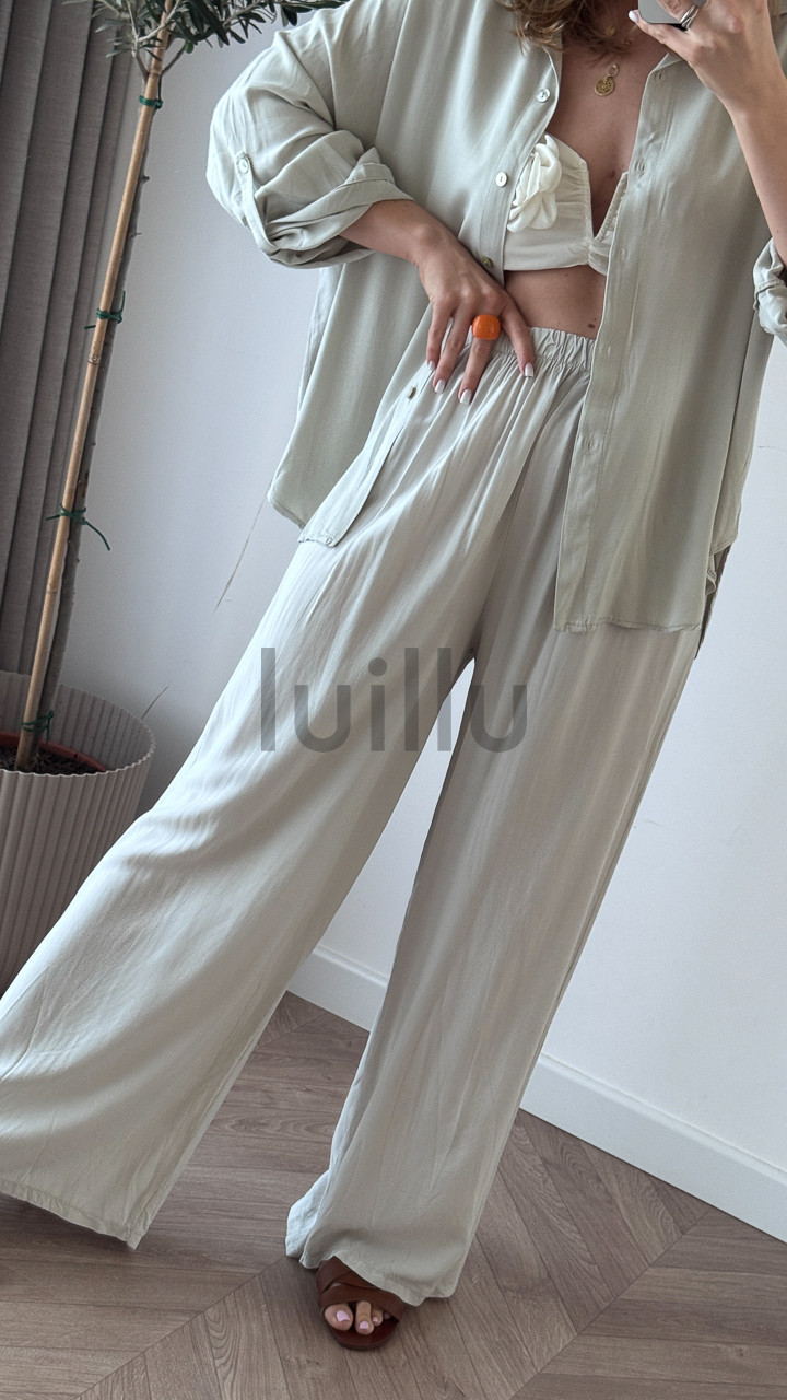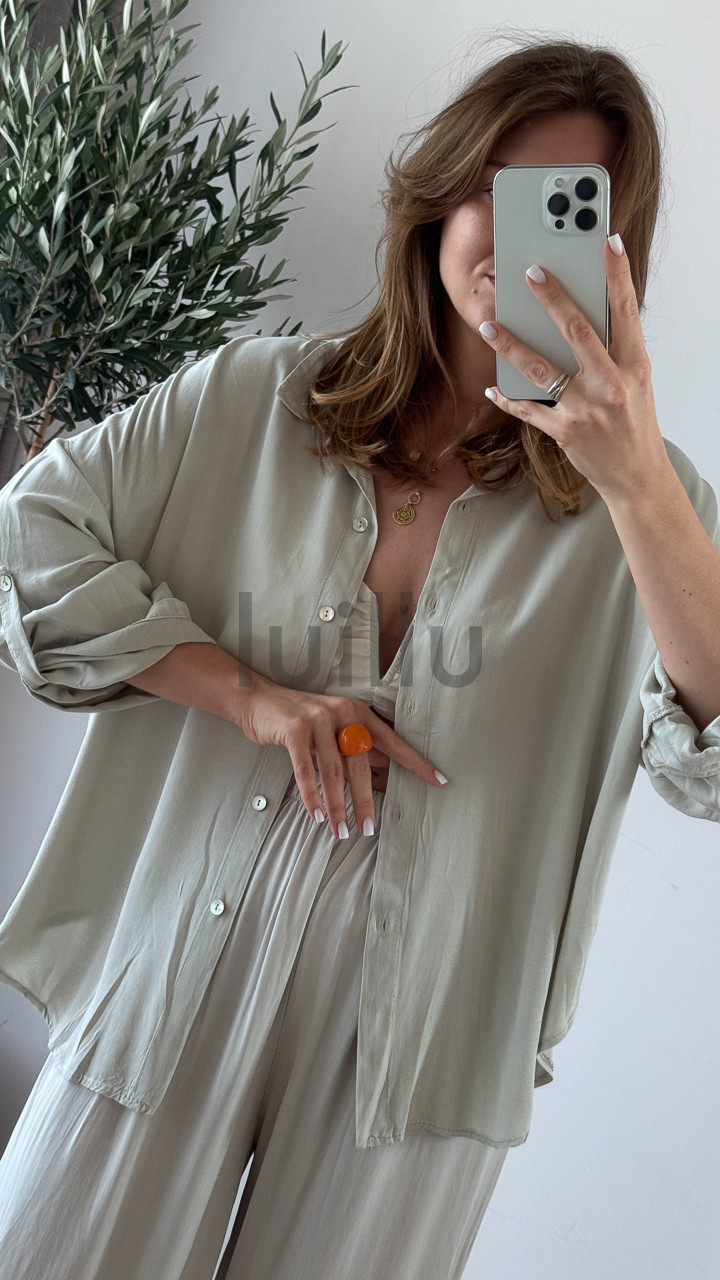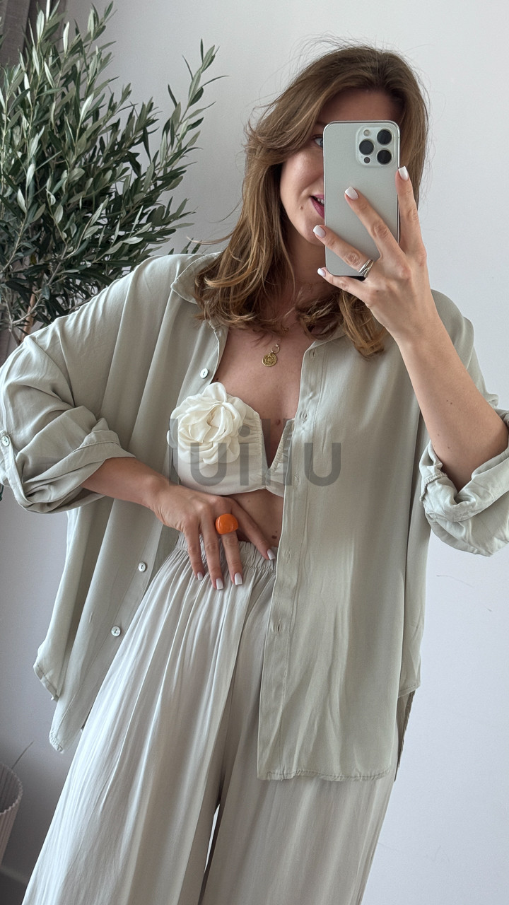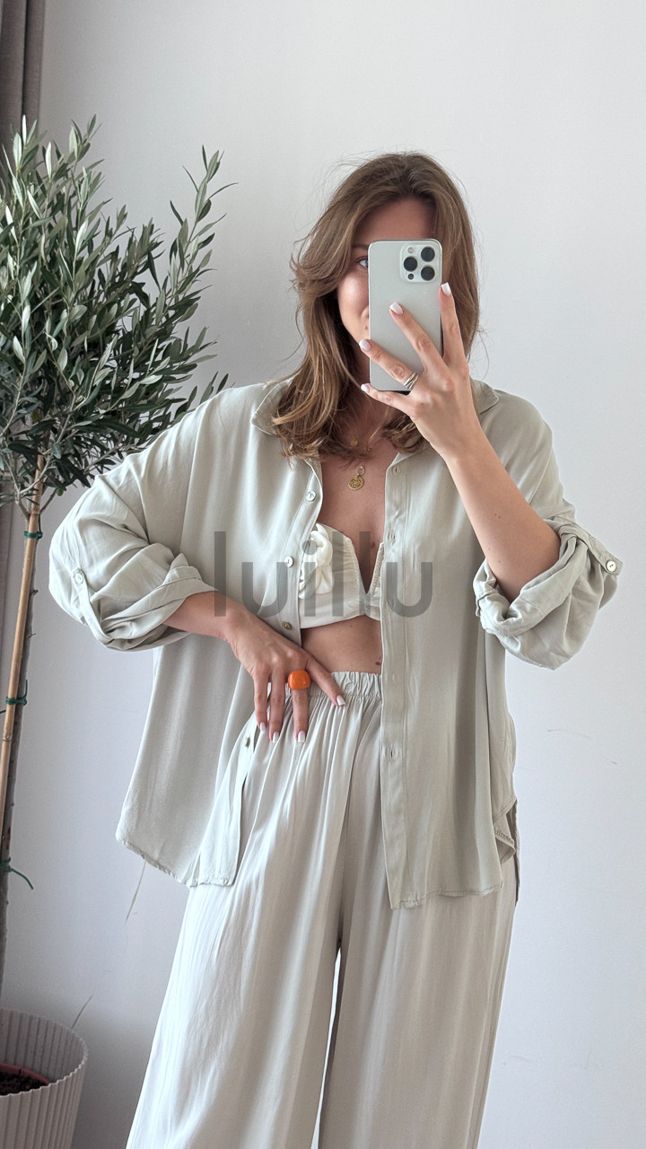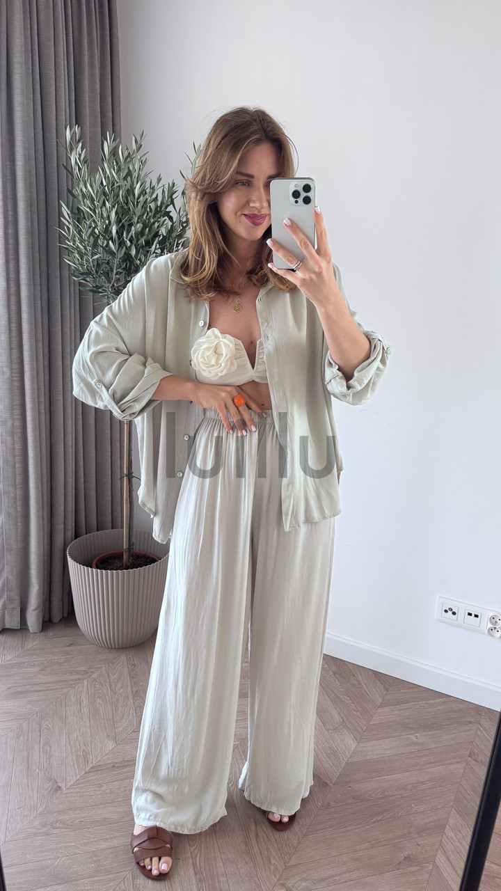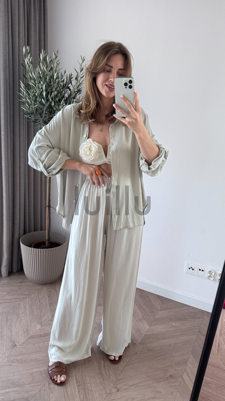 Koszula i spodnie tworzą harmonijny duet, który możesz nosić razem lub osobno, tworząc wiele stylizacji.