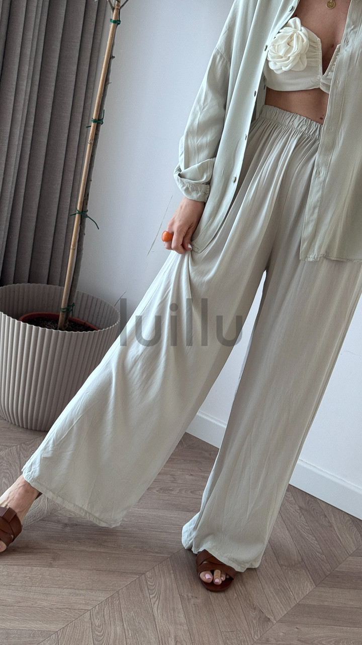 Słowa kluczowe: komplet wiskozowy damski, koszula i spodnie 100% wiskoza, letni komplet z wiskozy, elegancki komplet na lato, komplet z naturalnej tkaniny
