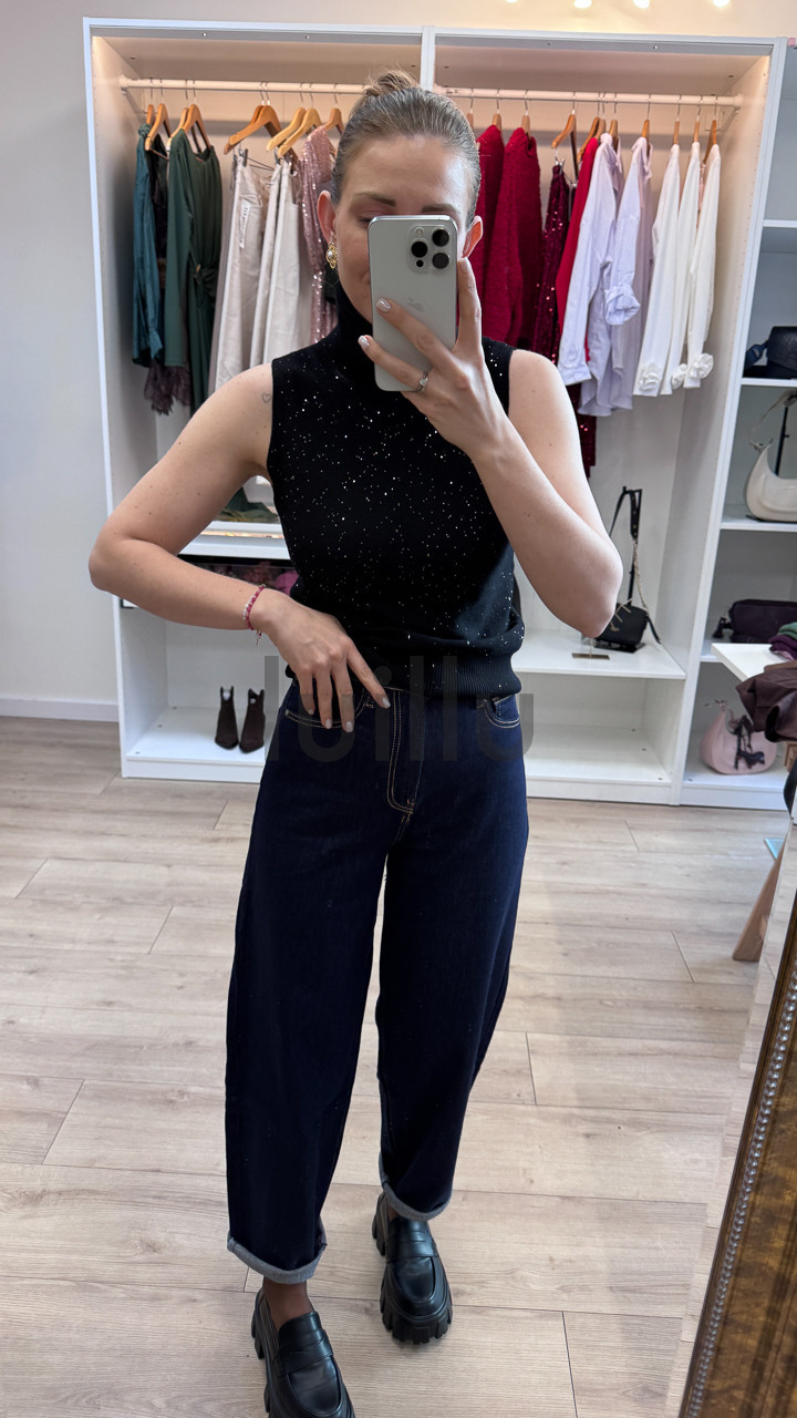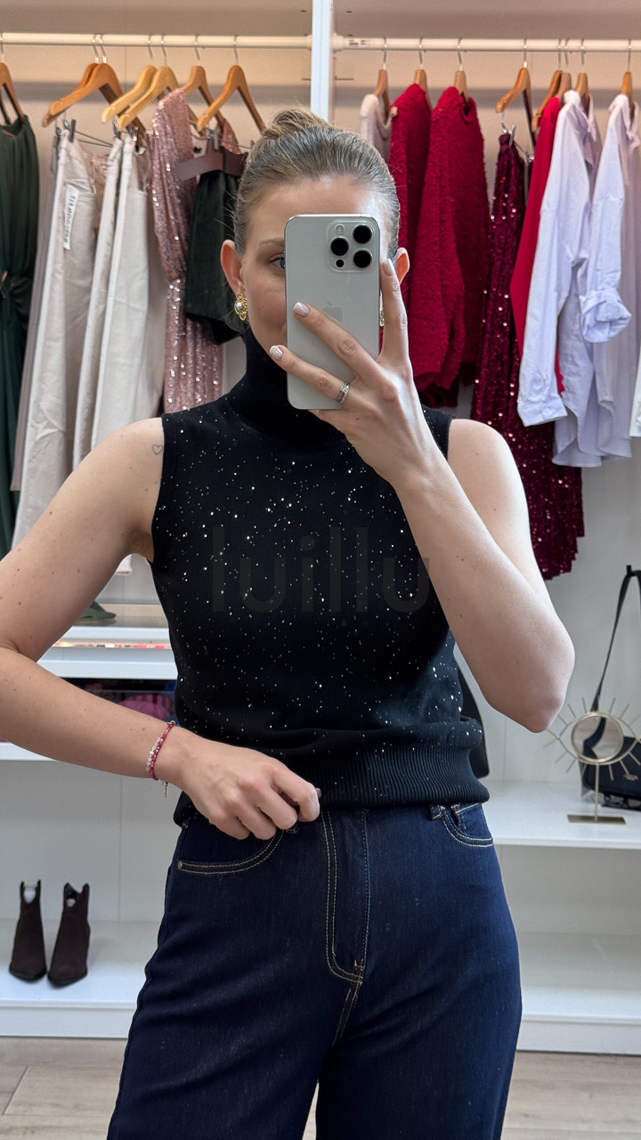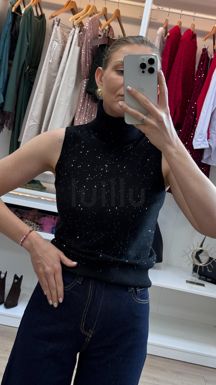 SWETER BEZRĘKAWNIK CZARNY Z DŻETAMI