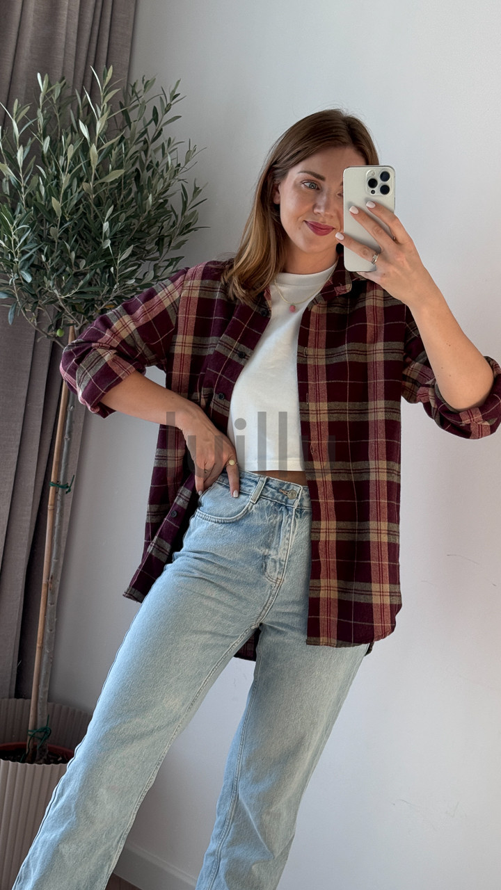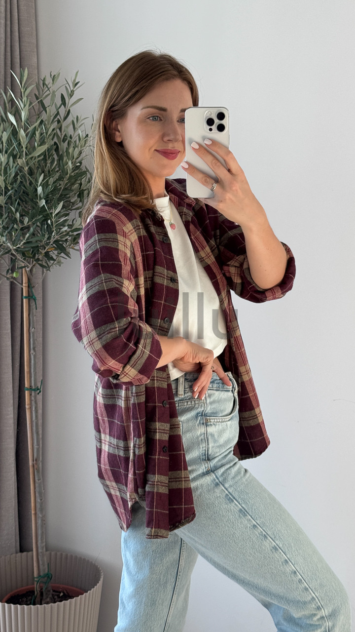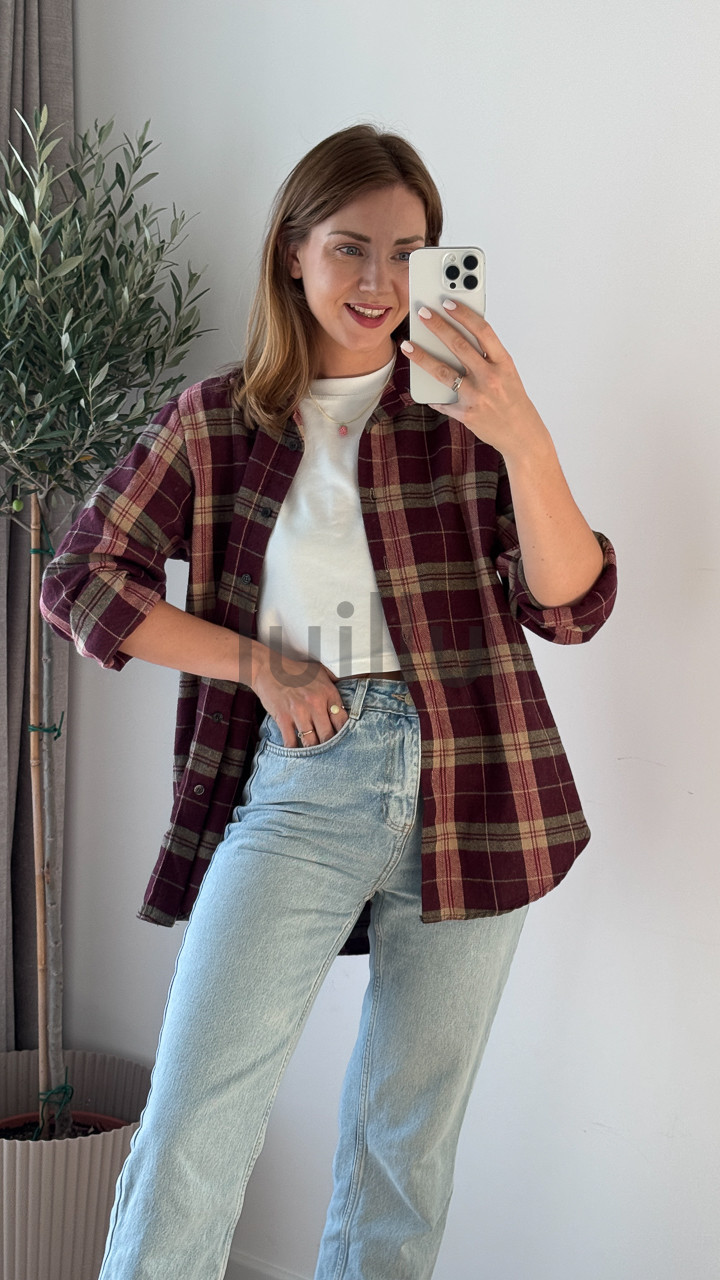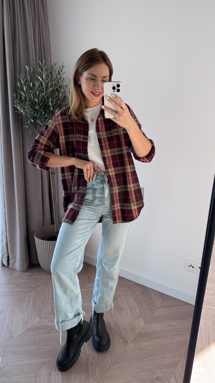 Koszula w kratę bordo to idealne połączenie luzu i stylu w klimacie cozy autumn.