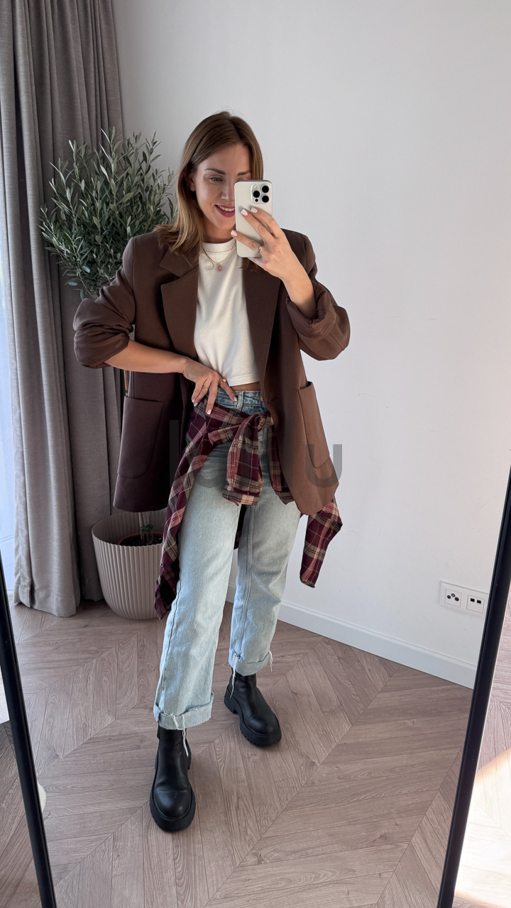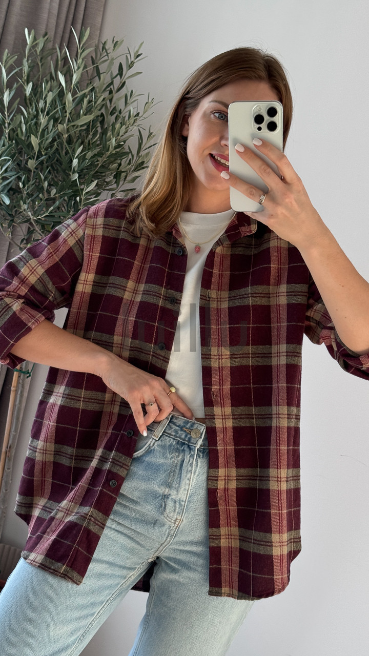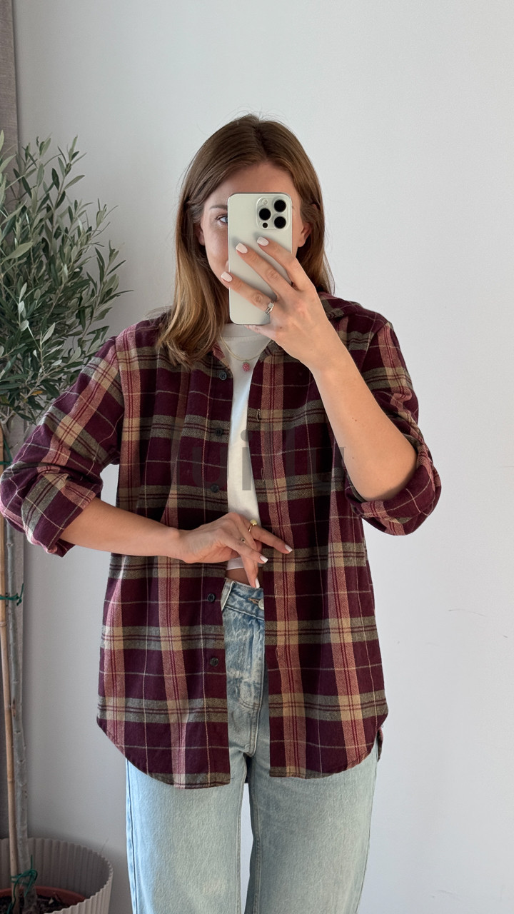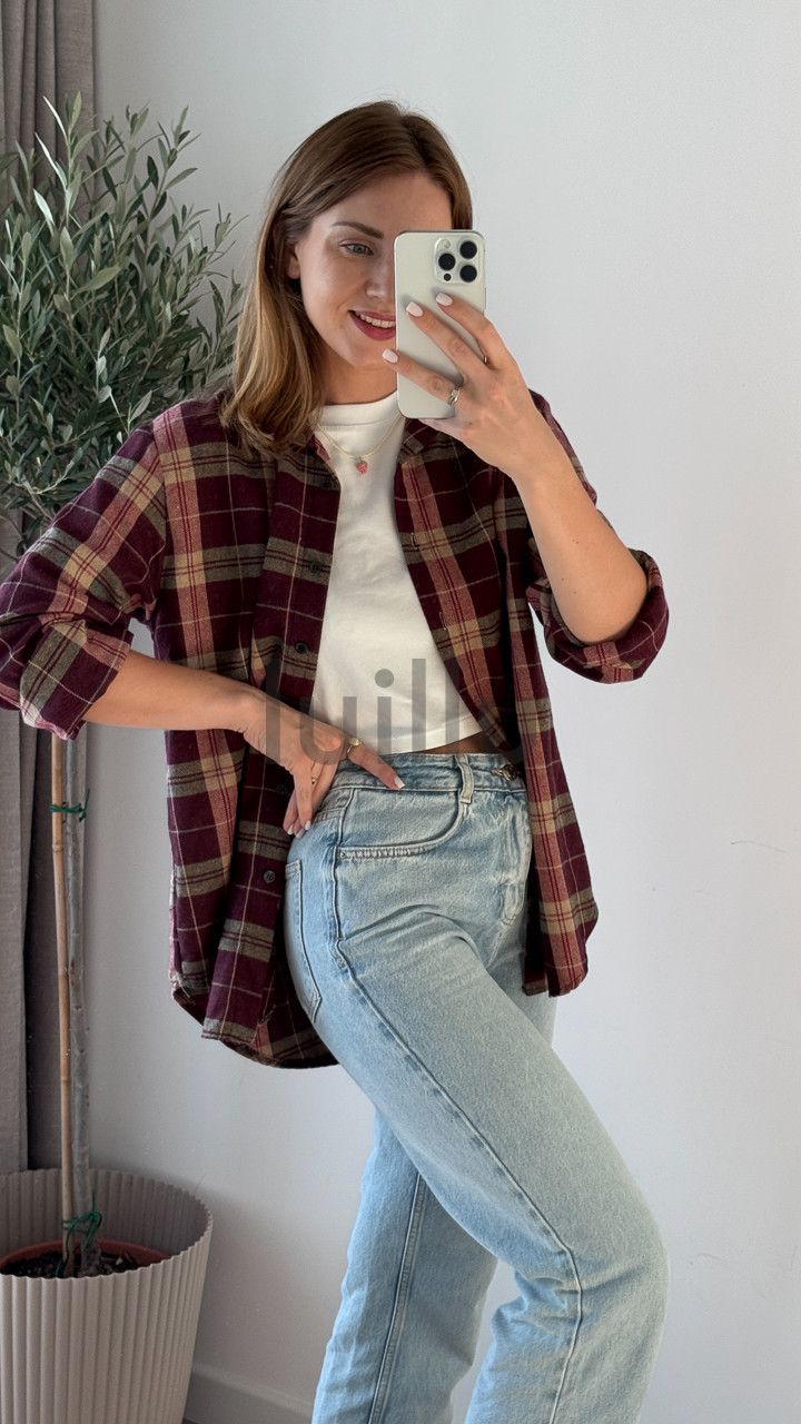 Koszula w kratę bordo to idealne połączenie luzu i stylu w klimacie cozy autumn.