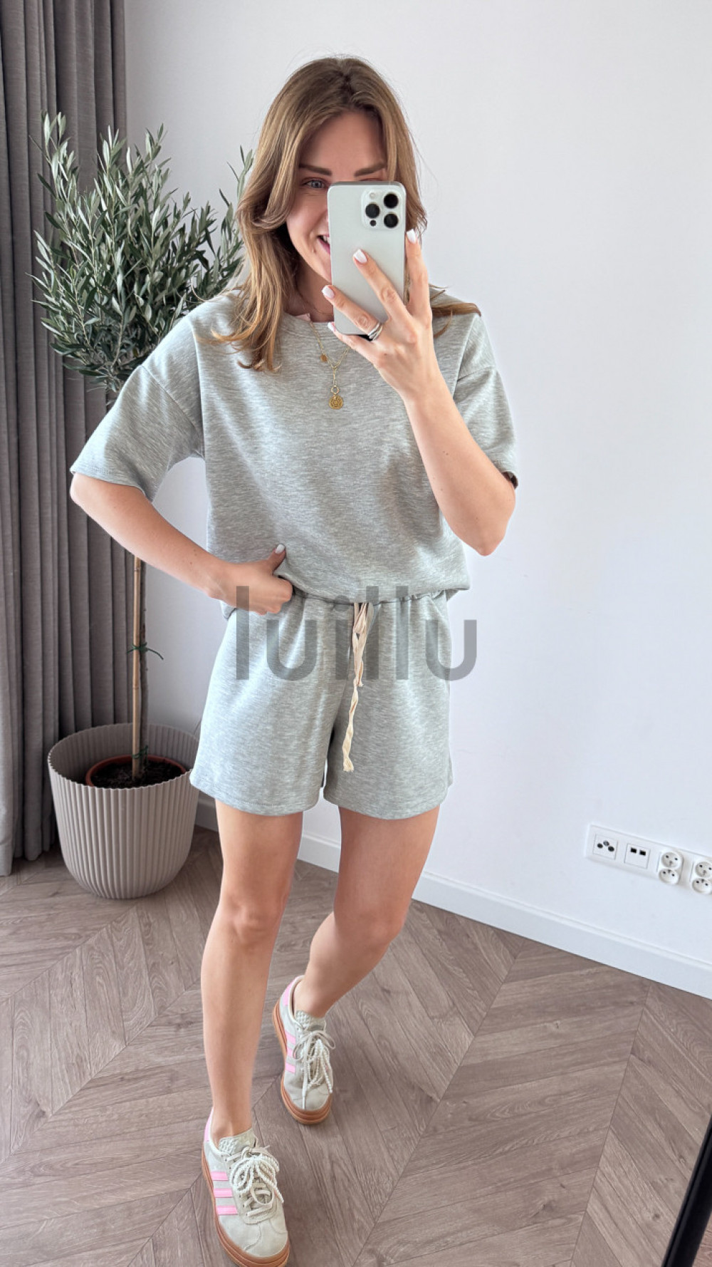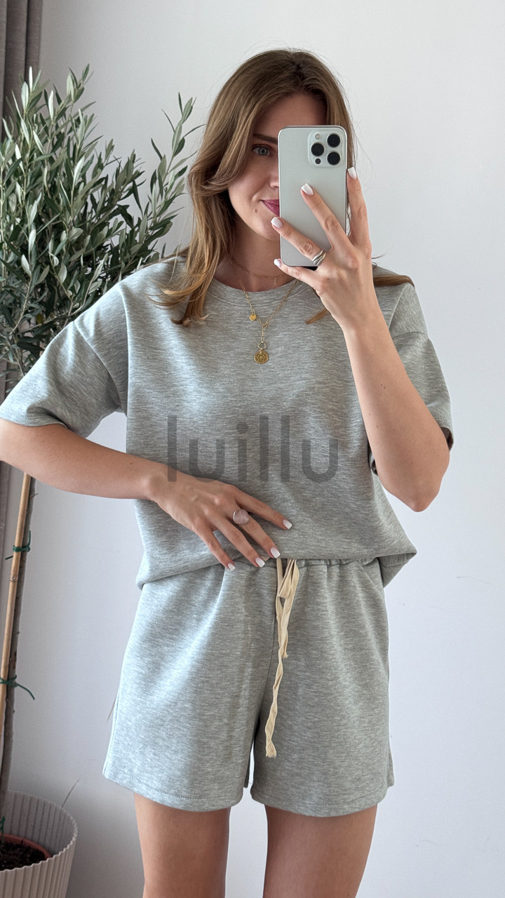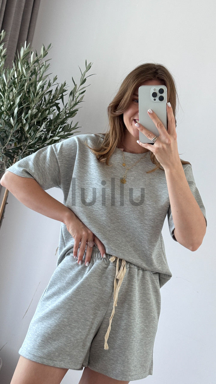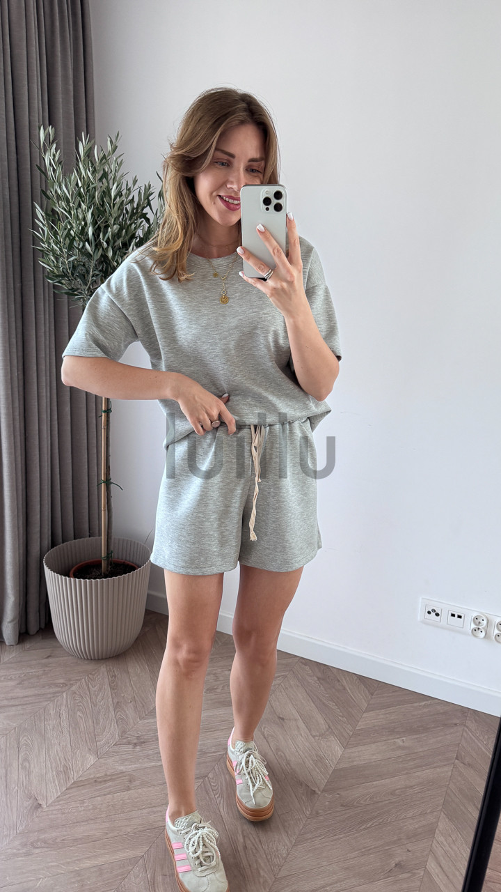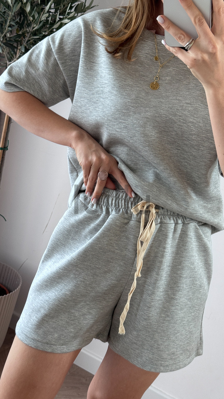 • Oversize’owa koszulka i szorty z gumką w pasie tworzą stylowy, a zarazem totalnie wygodny look.