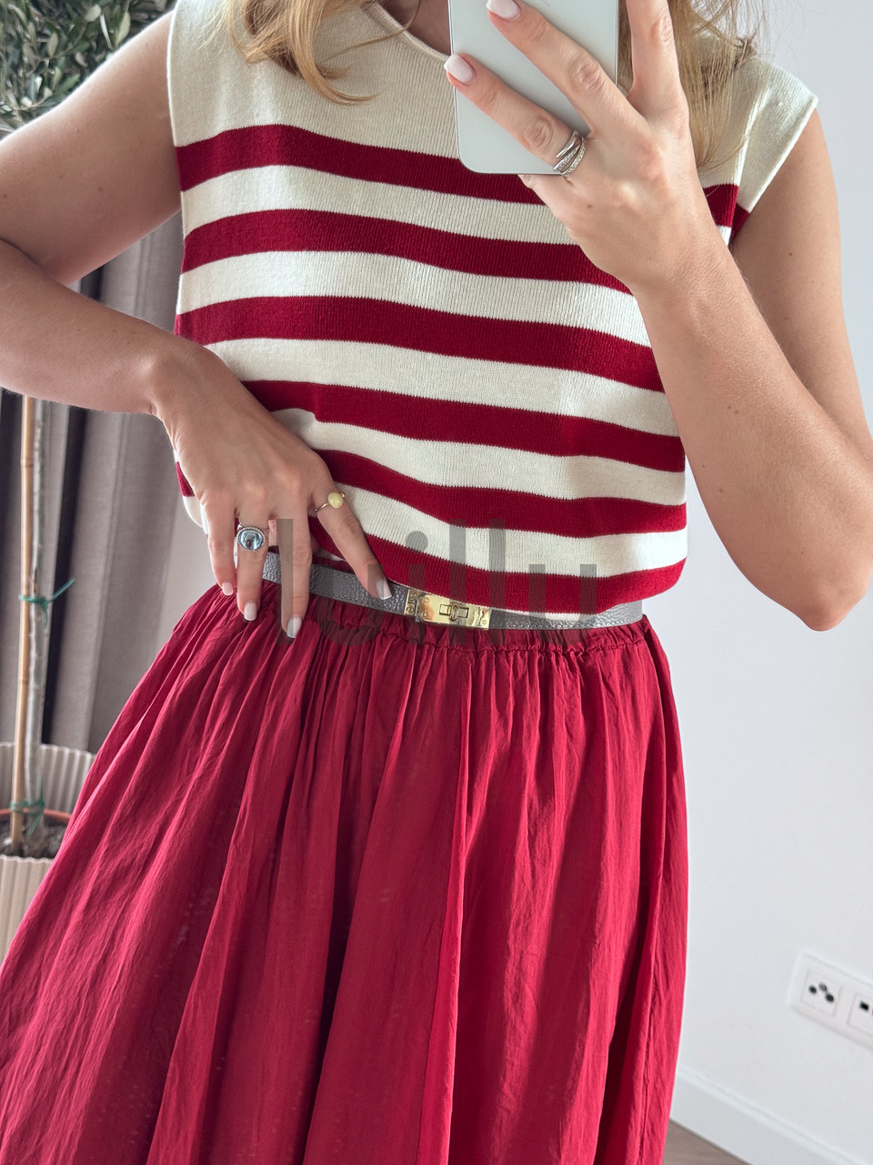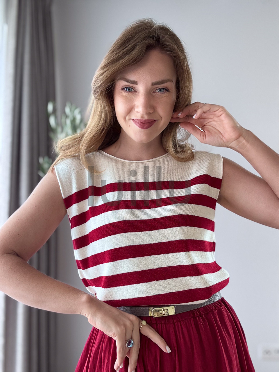 BLUZKA Z DZIANINY PREMIUM W BORDOWE PASY LORA