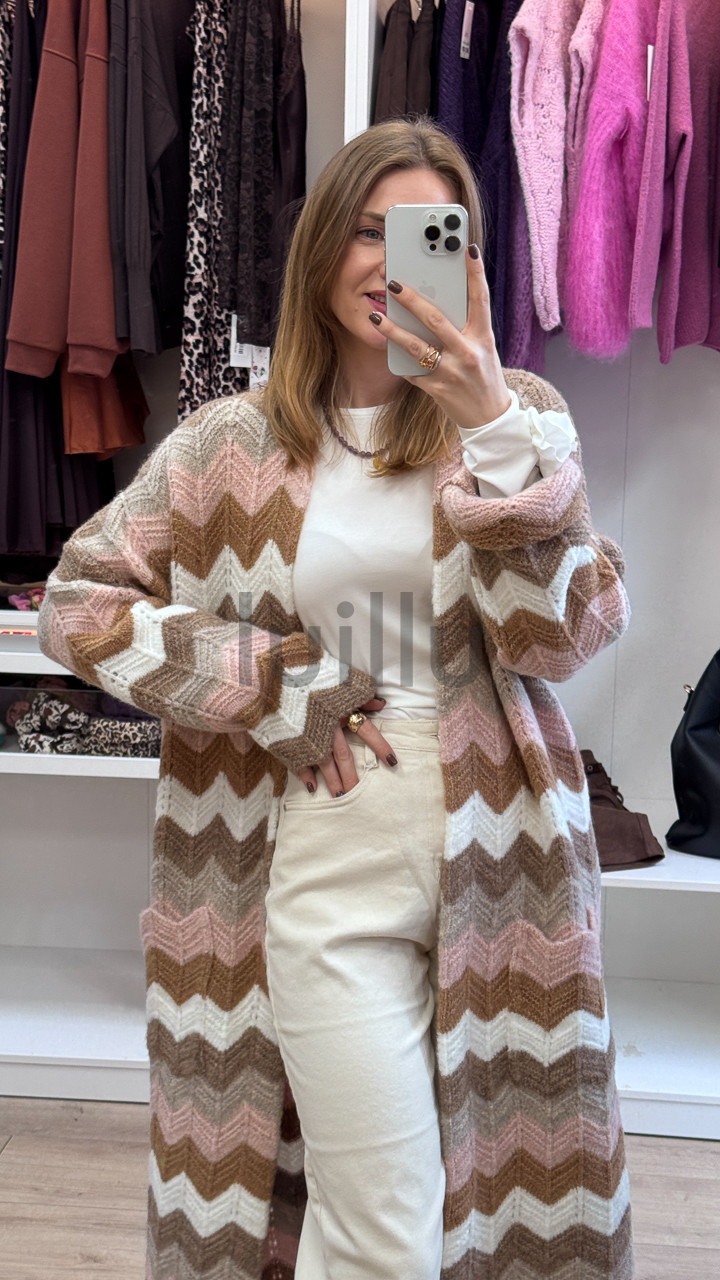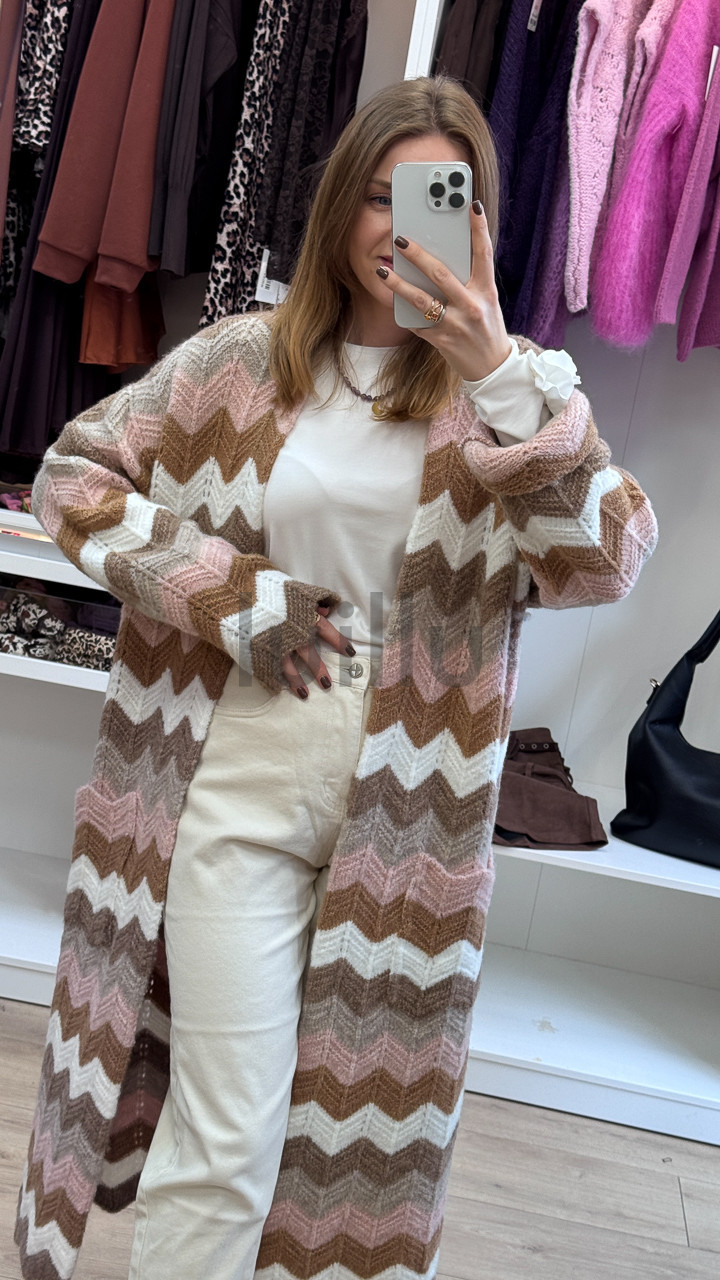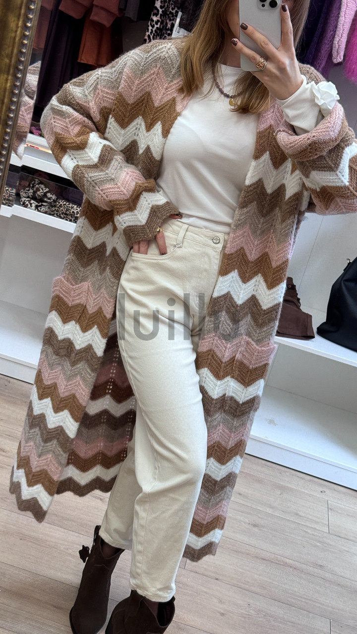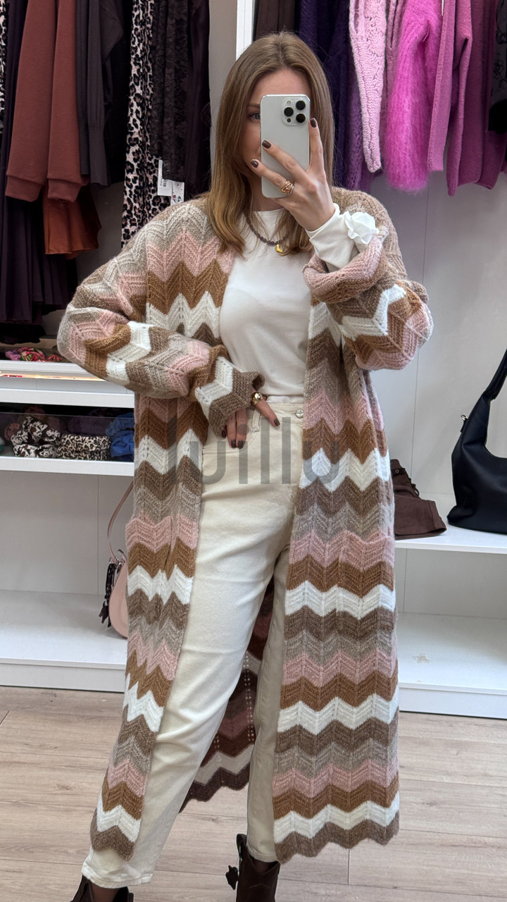 DŁUGI KARDIGAN Z KIESZENIAMI W KOLORACH KAKAO ECRU