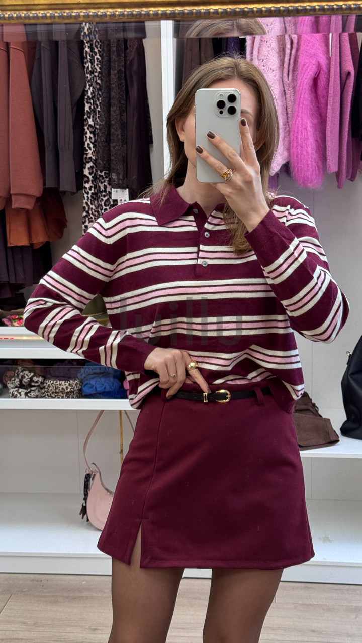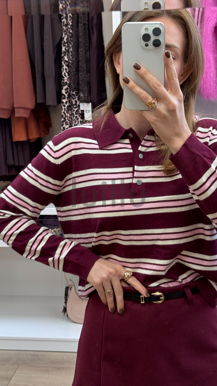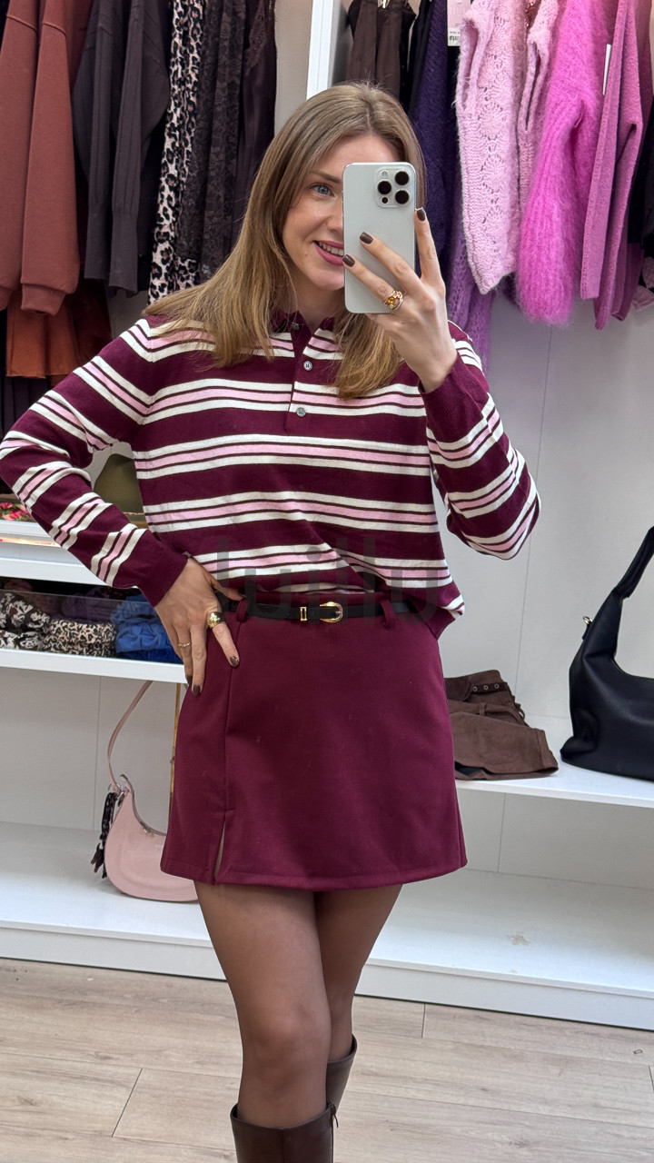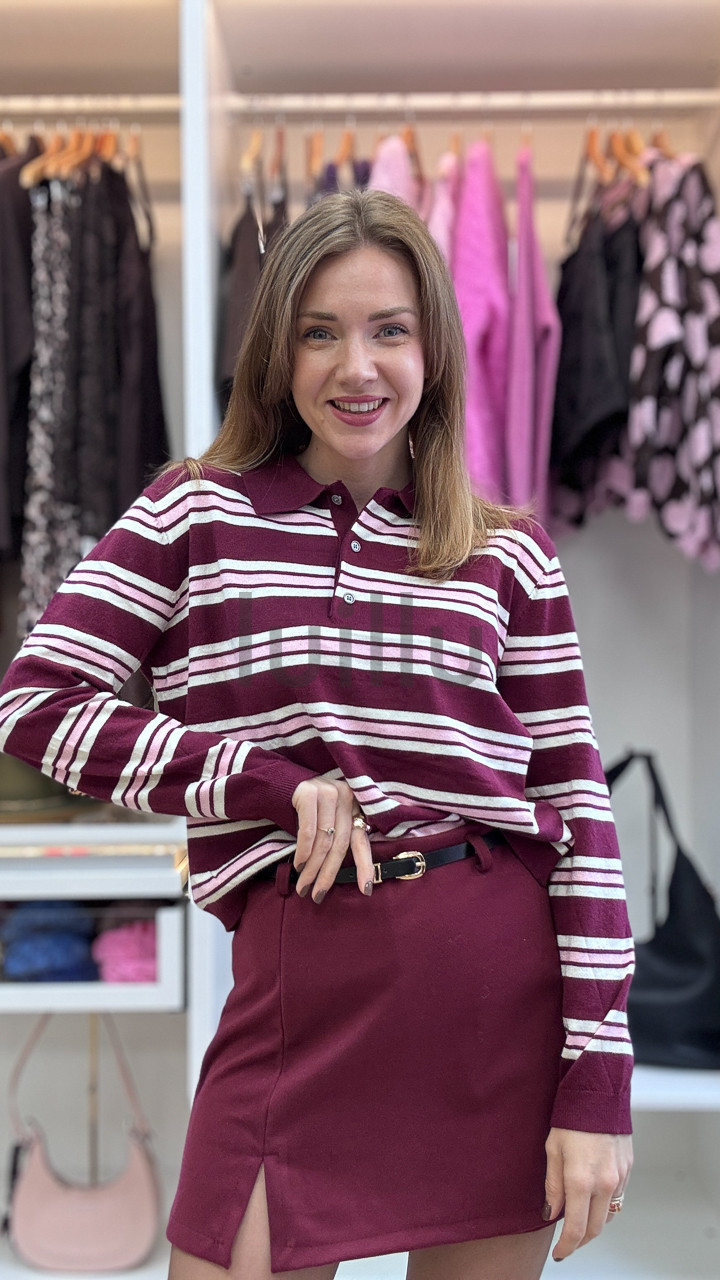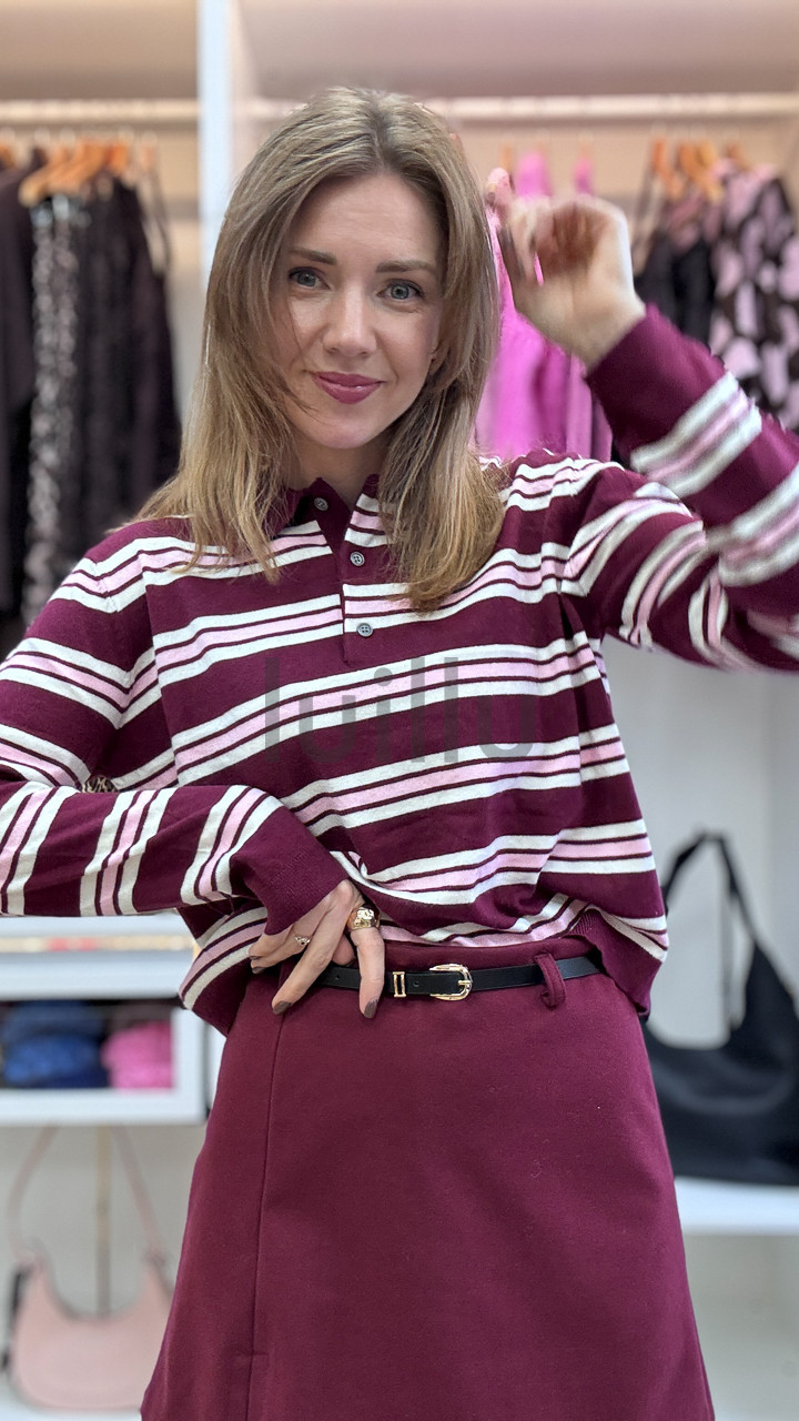 SWETER Z WEŁNĄ W BURGUNDOWE PASKI