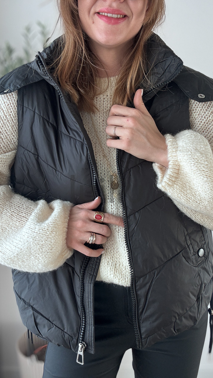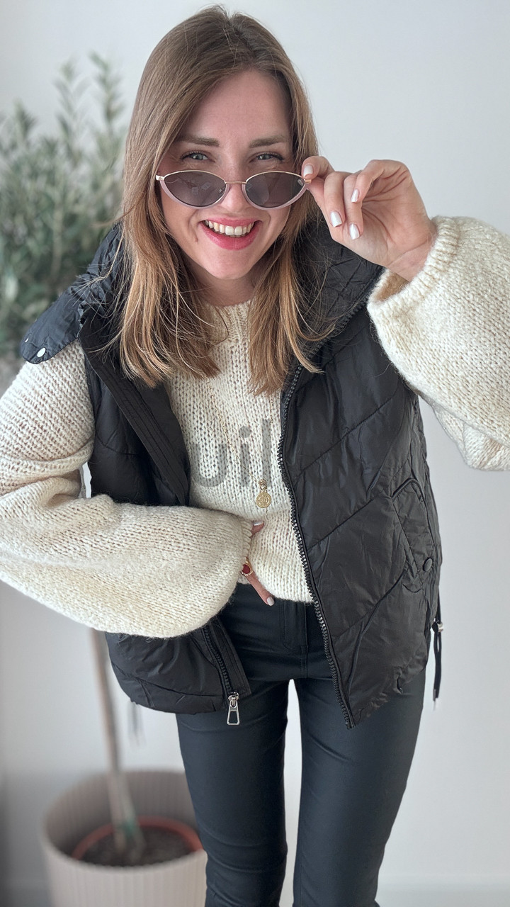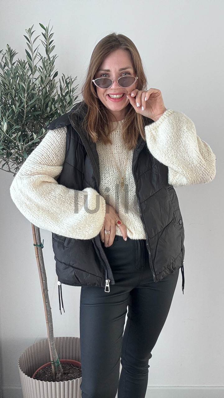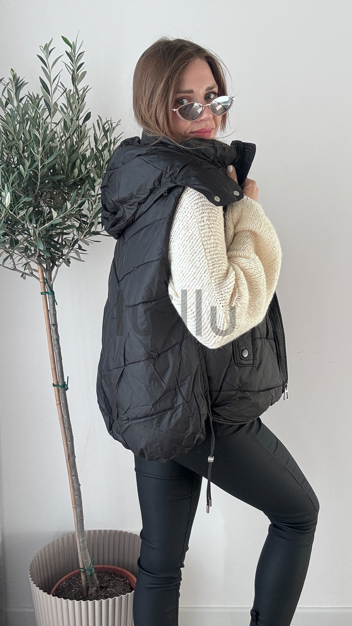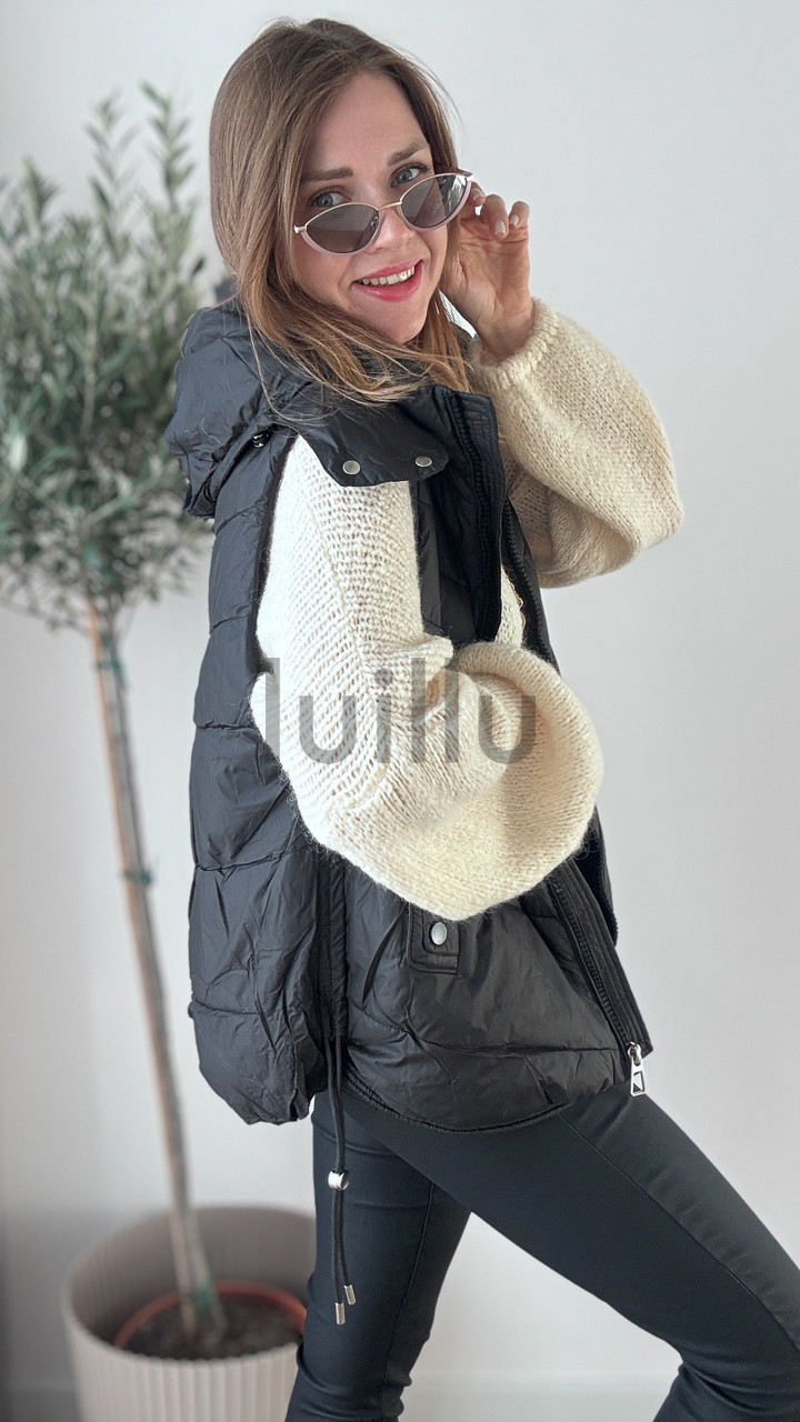 KAMIZELKA Z ODPINANYM KAPTUREM CZARNA GIRL