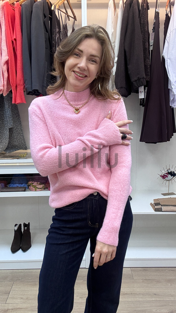 SWETER Z WEŁNĄ Z ALPAKI JASNY CUKIERKOWY RÓŻ