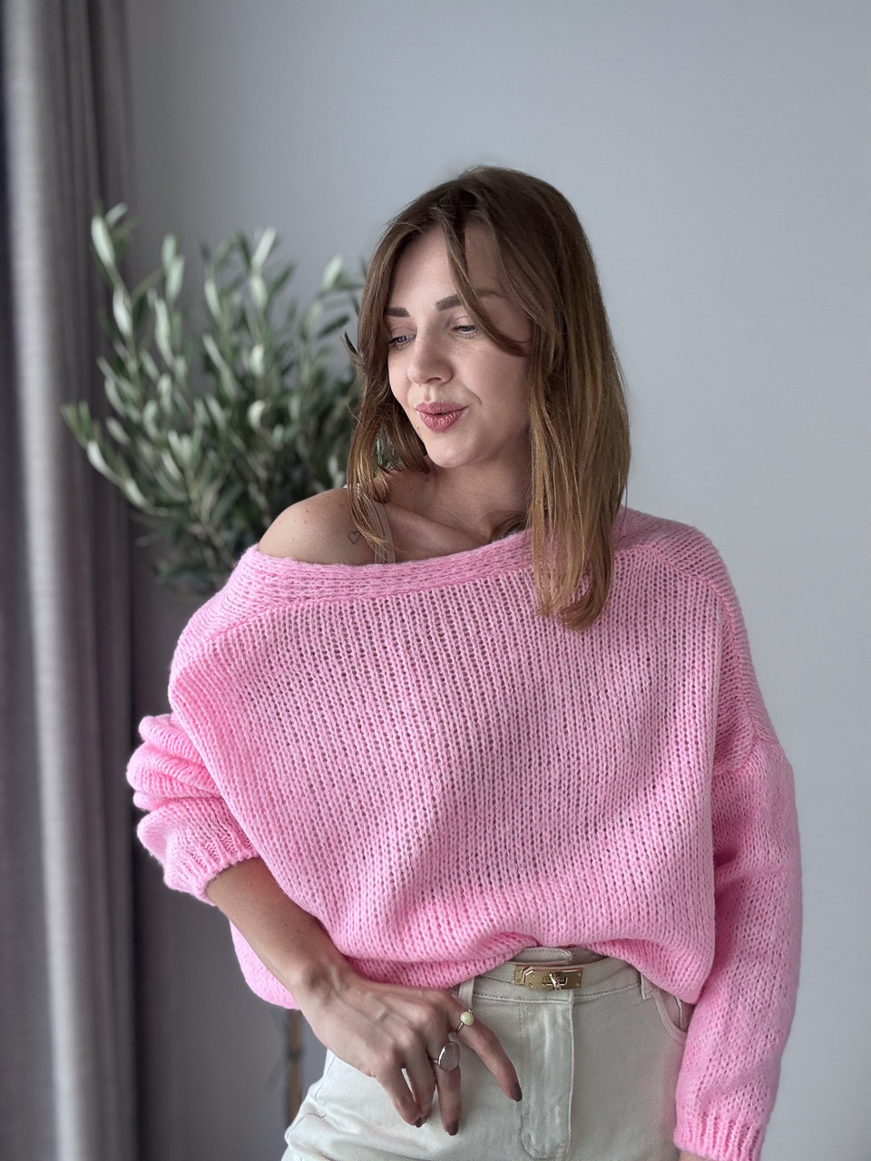 Ten sweter ma luźny, oversizowy fason, co oznacza, że jest nieco większy niż standardowe swetry.